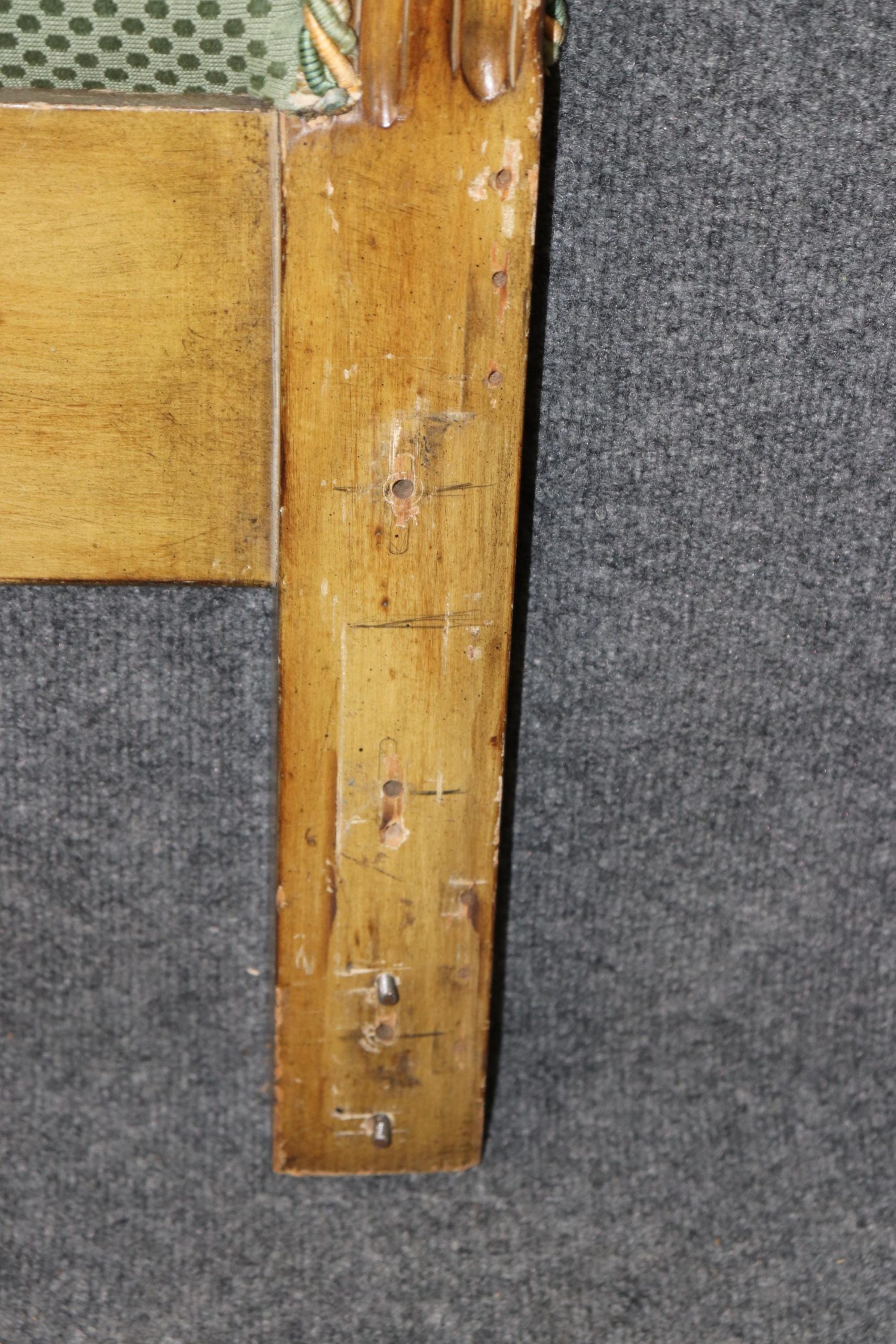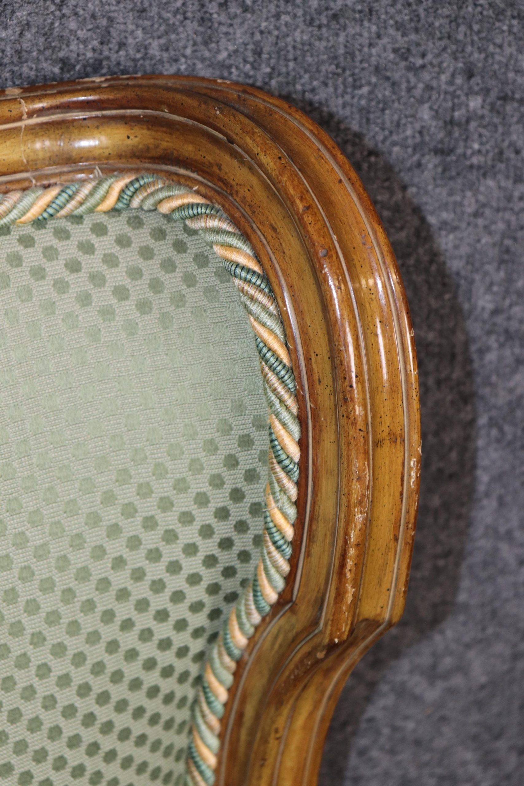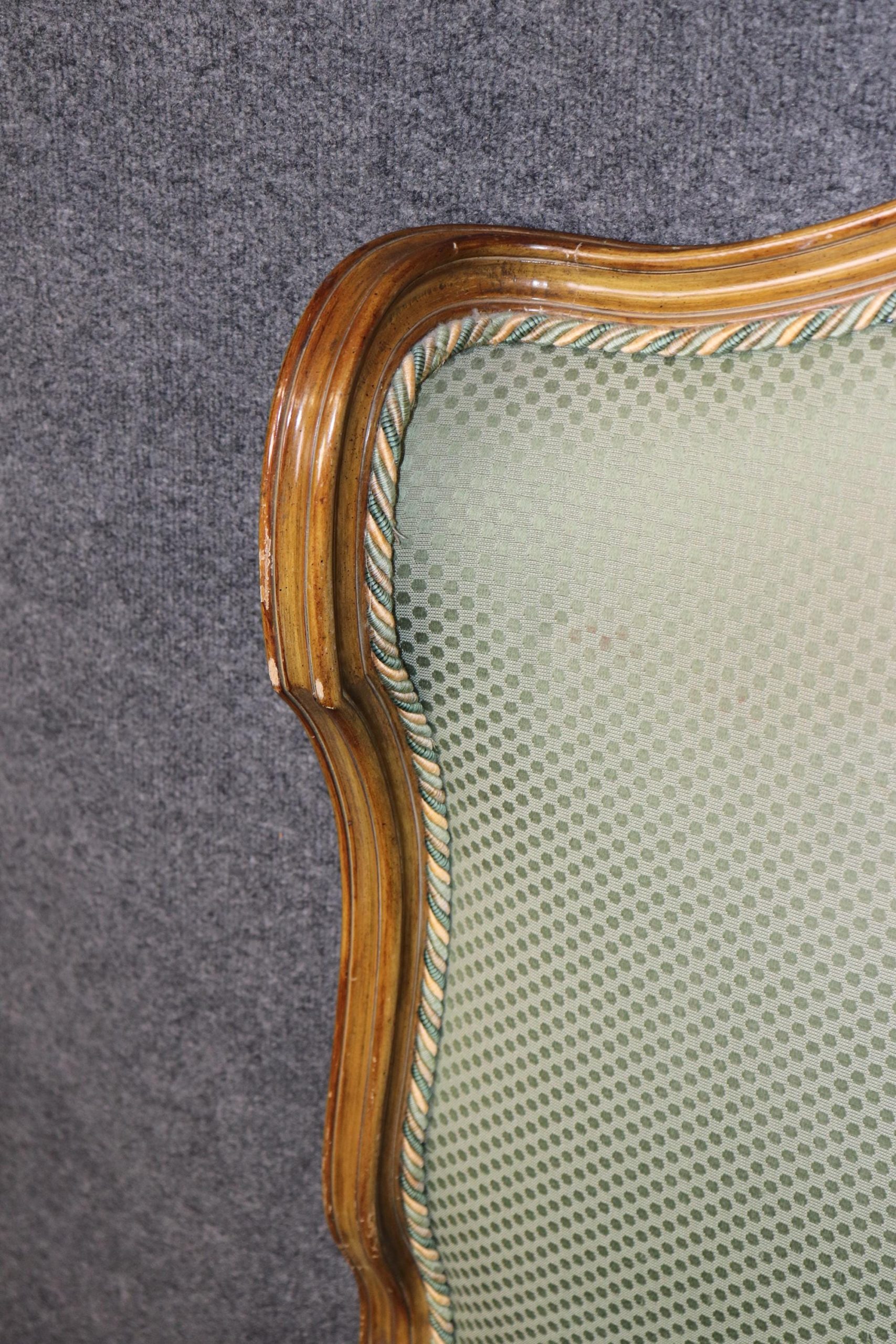 This vintage Country French Provincial style king size upholstered headboard is made of the highest quality! If you look at the photos provided you can see the sophisticated upholstery. This piece is perfect for any bedroom as it can go with a variety of styles! This piece is will add a sense of luxury into your home and will definitely be a conversation starter! Antique furniture and vintage pieces have stood the test of time and this headboard is no exception! With its quality materials and great craftsmanship this piece is bound to last you and your family for many years to come. The headboard is in good vintage condition with the exception of some light surface scratches and minor imperfections including some staining to the upholstered panels as to be expected with vintage or antique items.