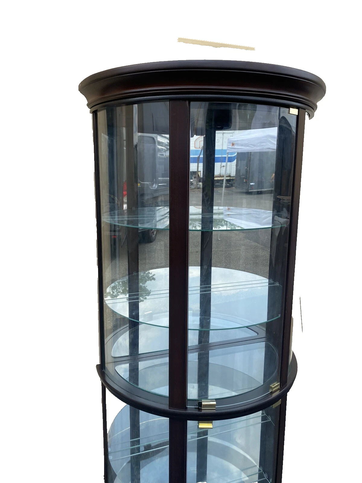 This exquisite Pulaski bow glass curio cabinet embodies the charm of mid-century design with its gracefully curved glass front, allowing your cherished collectibles to take center stage. Handmade in the United States, it showcases impeccable craftsmanship with two doors and five spacious shelves, providing both functionality and elegance. Its sturdy construction ensures that it will remain a beloved feature in your home for years to come, while the clean lines and modern aesthetic make it a versatile addition to any décor.