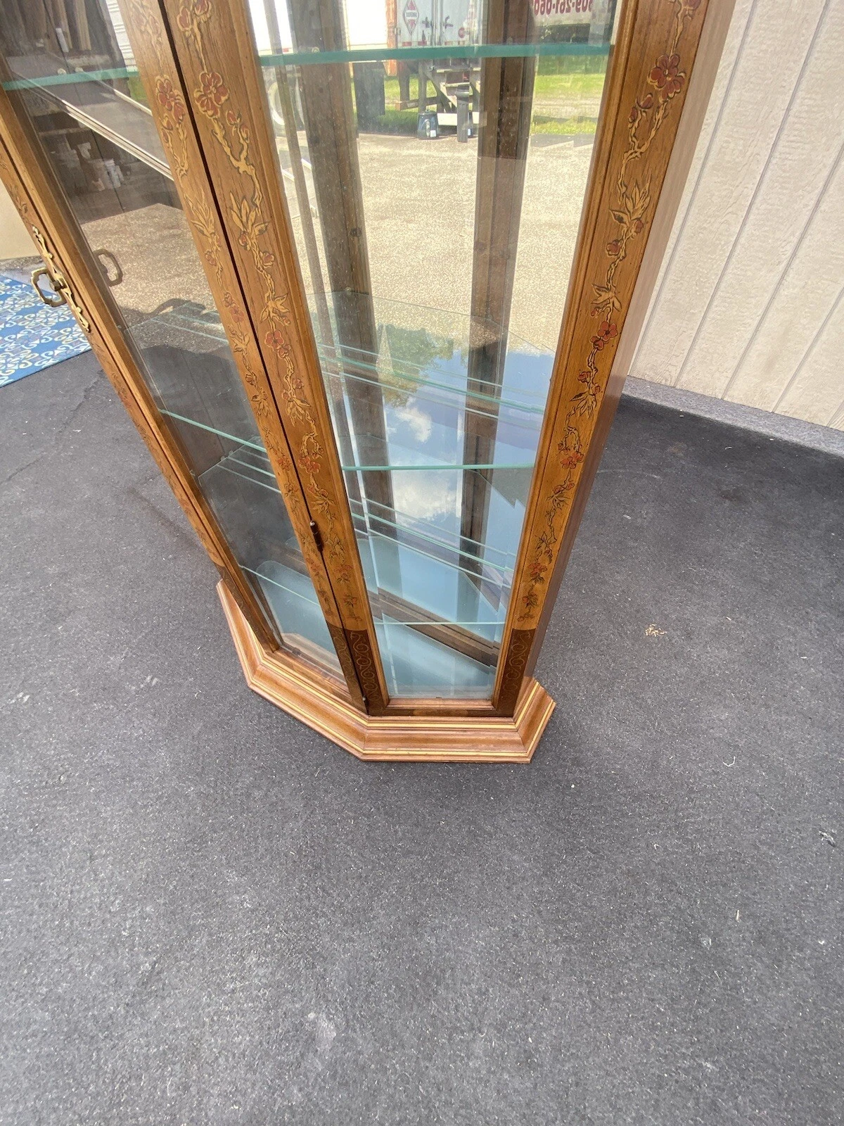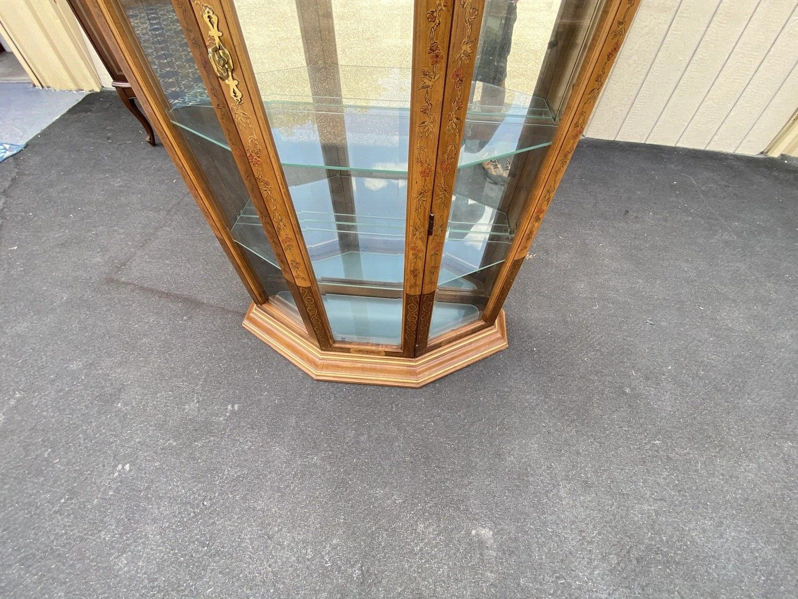 This charming Pulaski stenciled lighted curio cabinet brings a touch of traditional elegance to any room. Handcrafted in the United States, it features exquisite decorative stenciling and four plate glass shelves that beautifully showcase your cherished collectibles. The mirrored back enhances the lighting, creating a warm ambiance that highlights the unique character of each item within. A perfect blend of functionality and artistry, this cabinet not only offers practical display space but also serves as a timeless conversation piece.