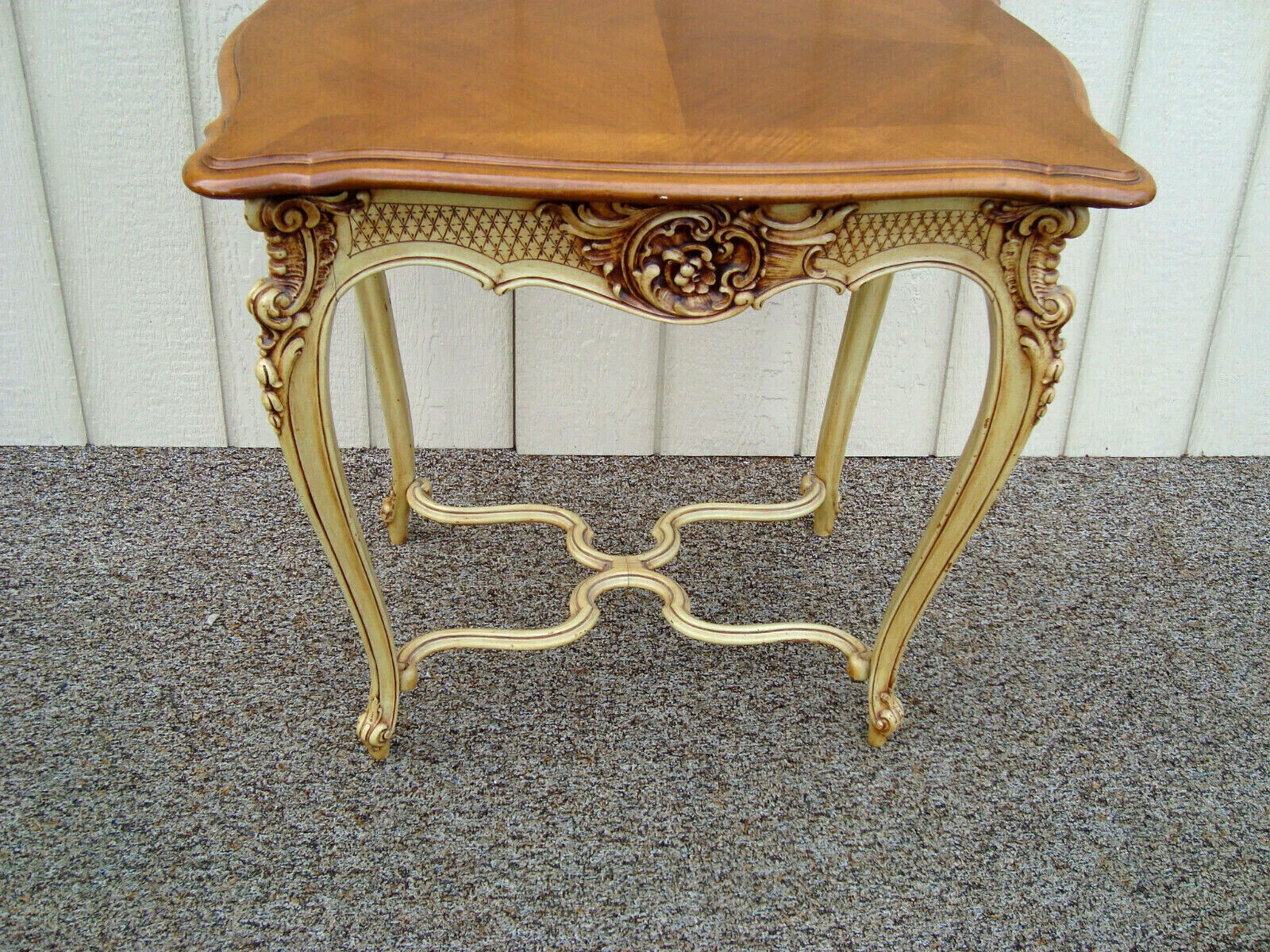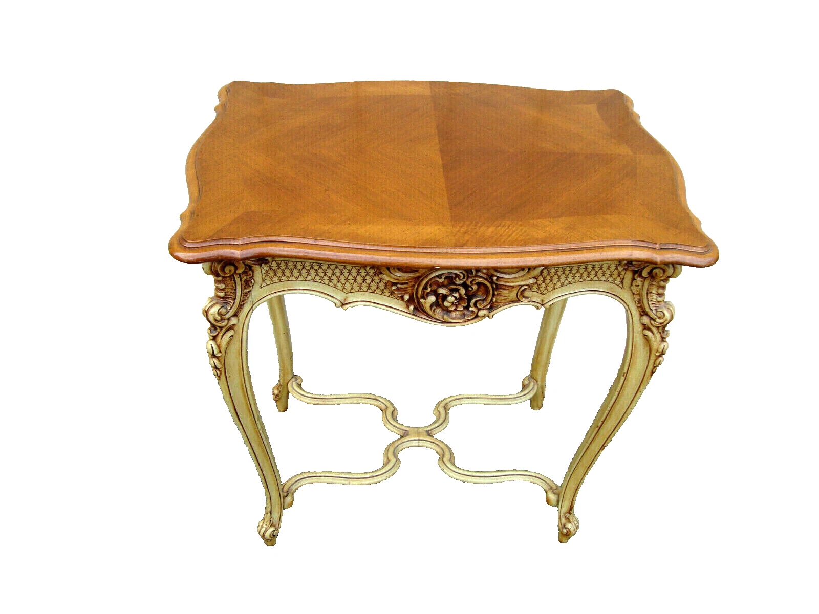 This exquisite satinwood lamp table stand, crafted in the United States between 1900 and 1950, showcases a charming blend of romantic and shabby Louis XV style. Its original factory-painted base adds a delightful touch of character, while the smooth, warm tones of the satinwood bring a sense of elegance to any room. Each handmade detail reflects the skilled craftsmanship of its era, making it not just a functional accent piece, but also a beautiful conversation starter steeped in history. Perfectly sturdy and ready to enhance your home, this table invites warmth and timeless style into your space.