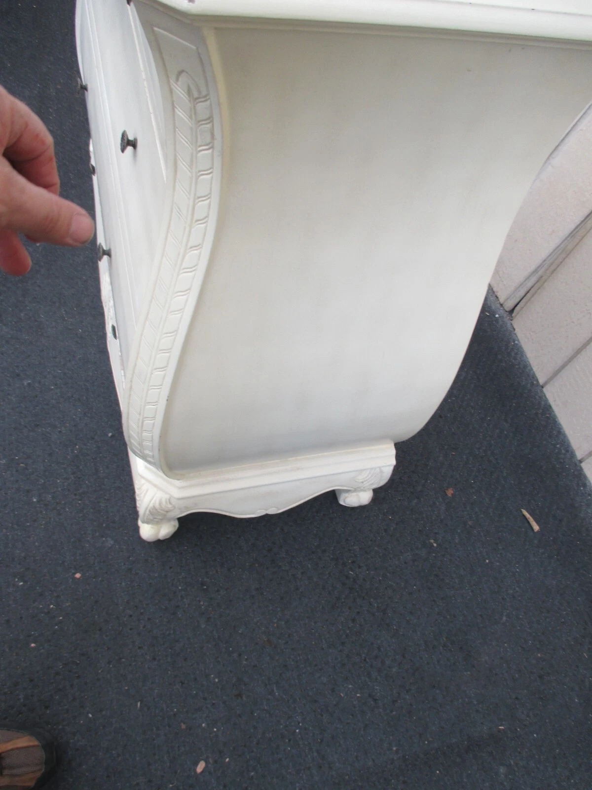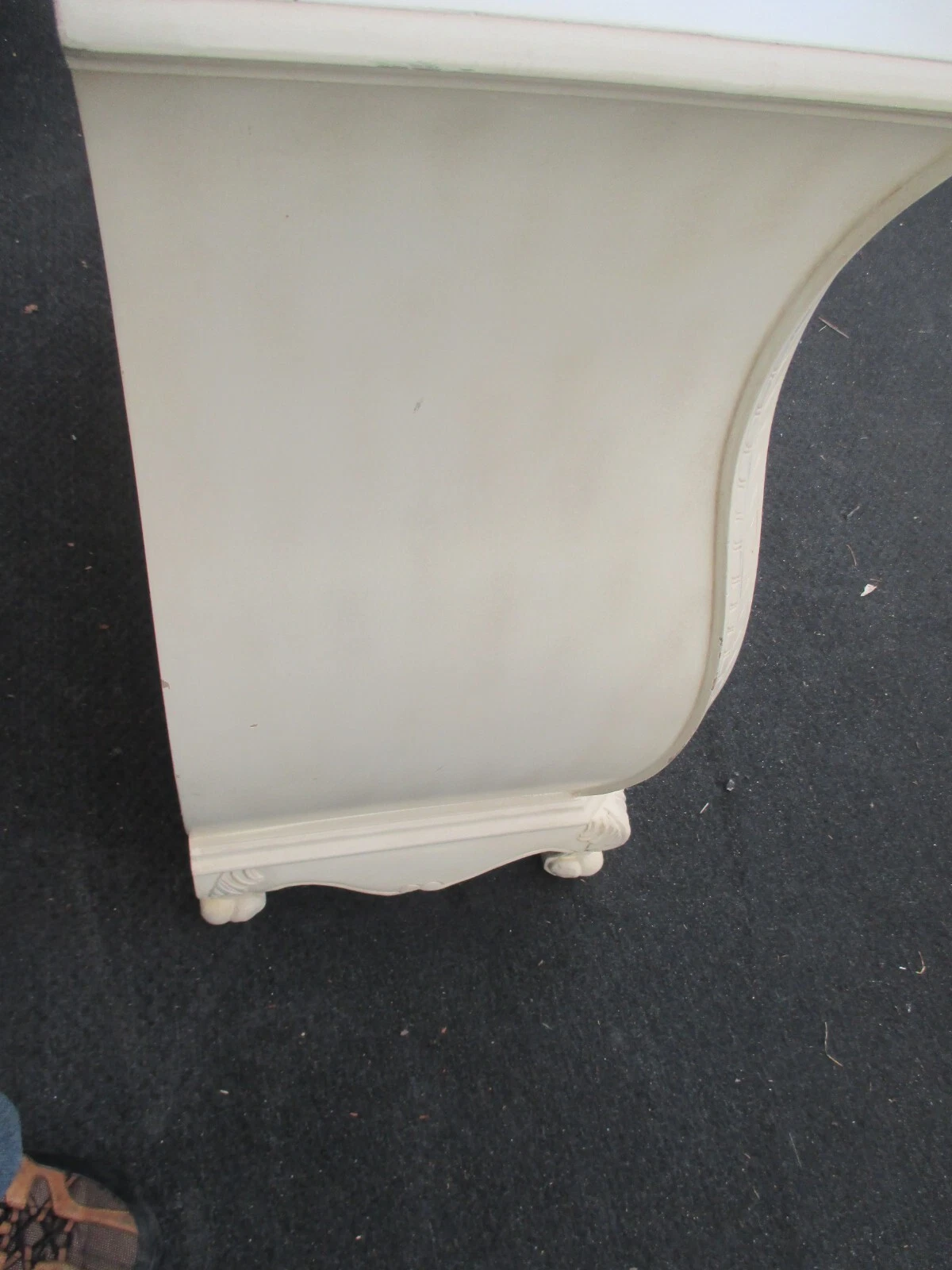 This charming high chest dresser showcases the enchanting allure of shabby chic design, featuring a soft ivory white finish that beautifully complements its vintage character. With four spacious drawers, it offers both style and practicality, making it a delightful addition to any bedroom or living space. The original factory-painted surface adds a touch of authenticity, while subtle signs of wear tell the story of its journey through time. Sturdy and well-crafted, this piece captures the essence of a bygone era, inviting warmth and nostalgia into your home.