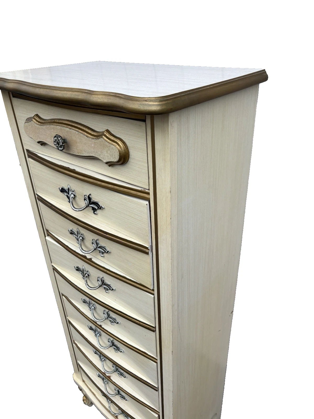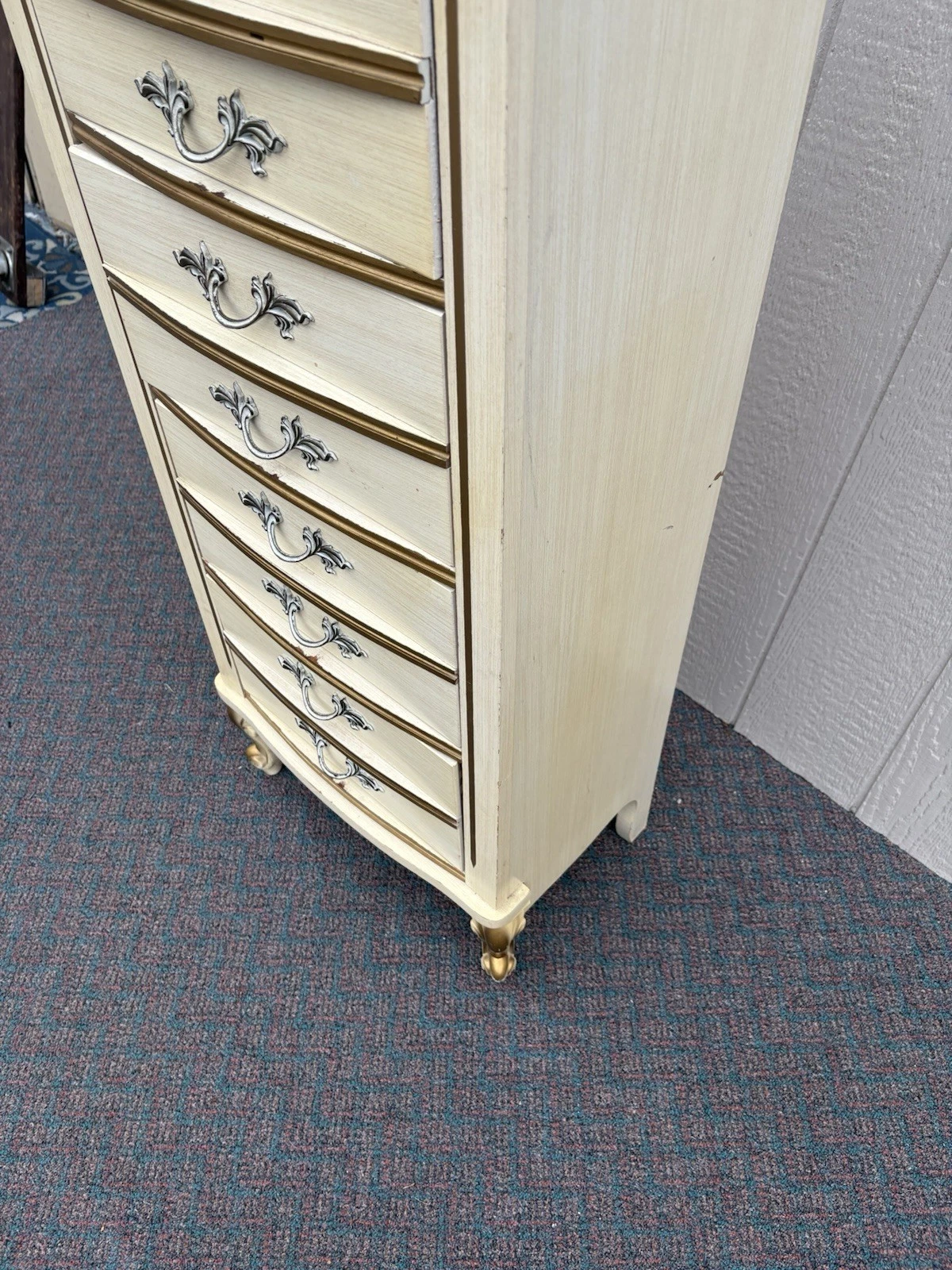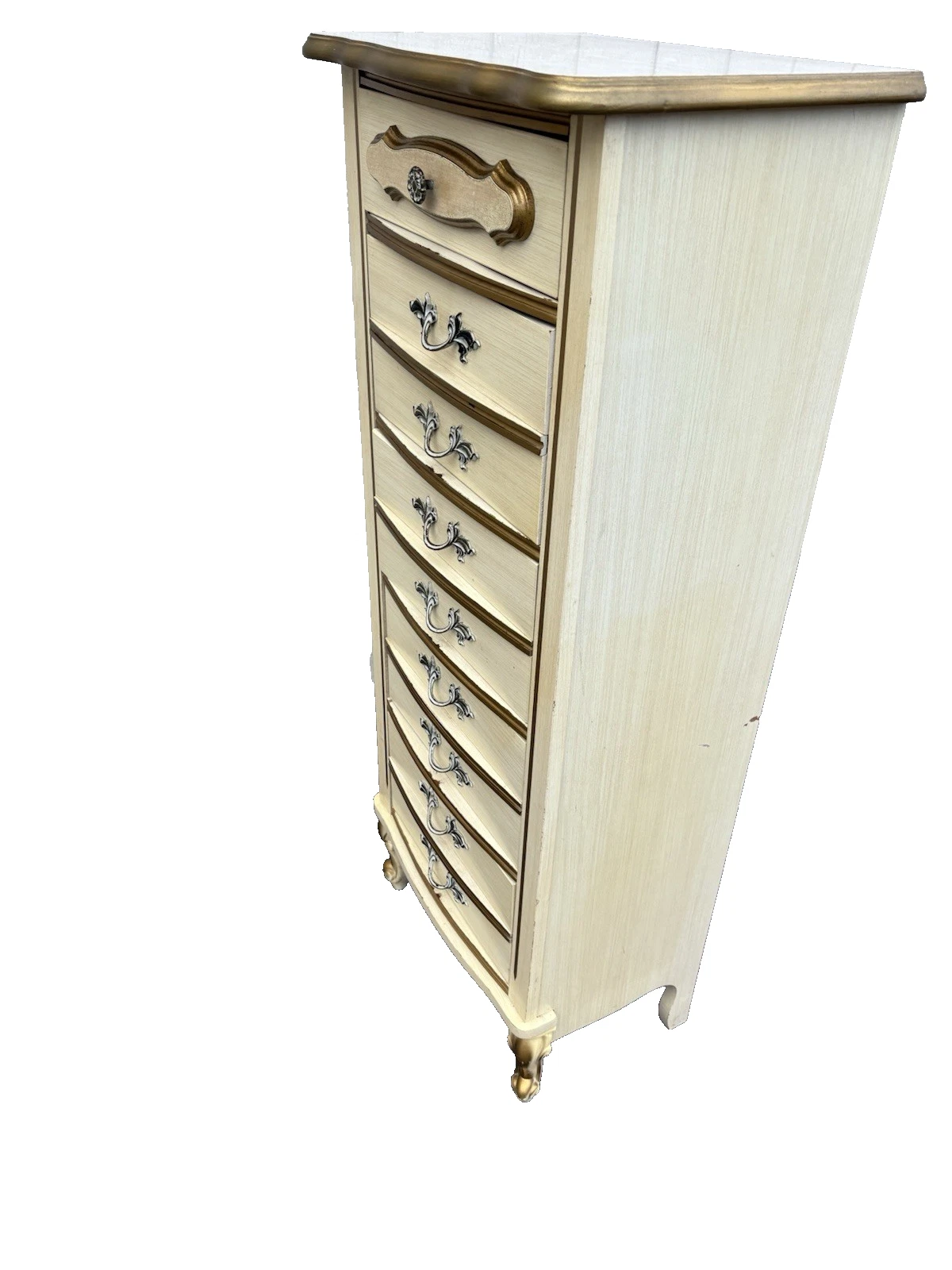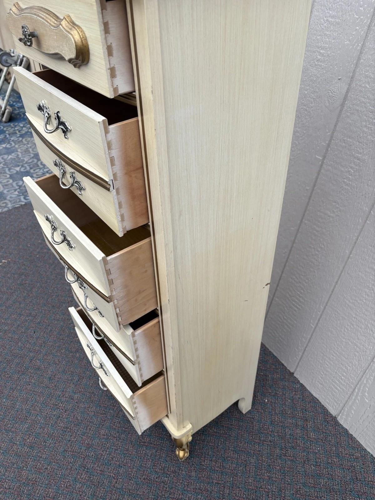 This charming lingerie chest embodies the romantic allure of shabby chic style, with its beautifully painted multicolor finish and delicate lines that evoke a sense of nostalgia. Featuring five spacious drawers, it offers both functionality and a touch of whimsy, making it a perfect addition to any bedroom. The sturdy construction ensures it will stand the test of time, while the unique character of this piece invites warmth and personality into your home. Embrace its vintage charm and let it tell your story.