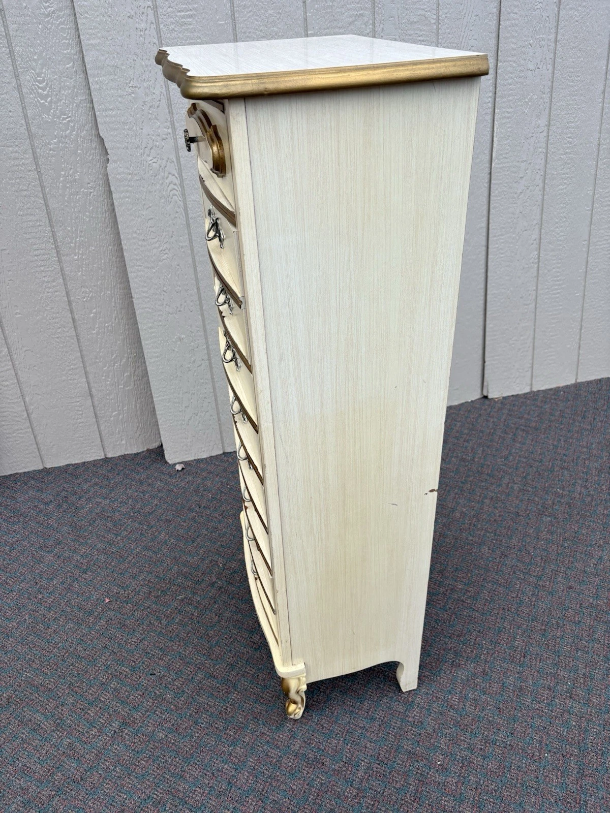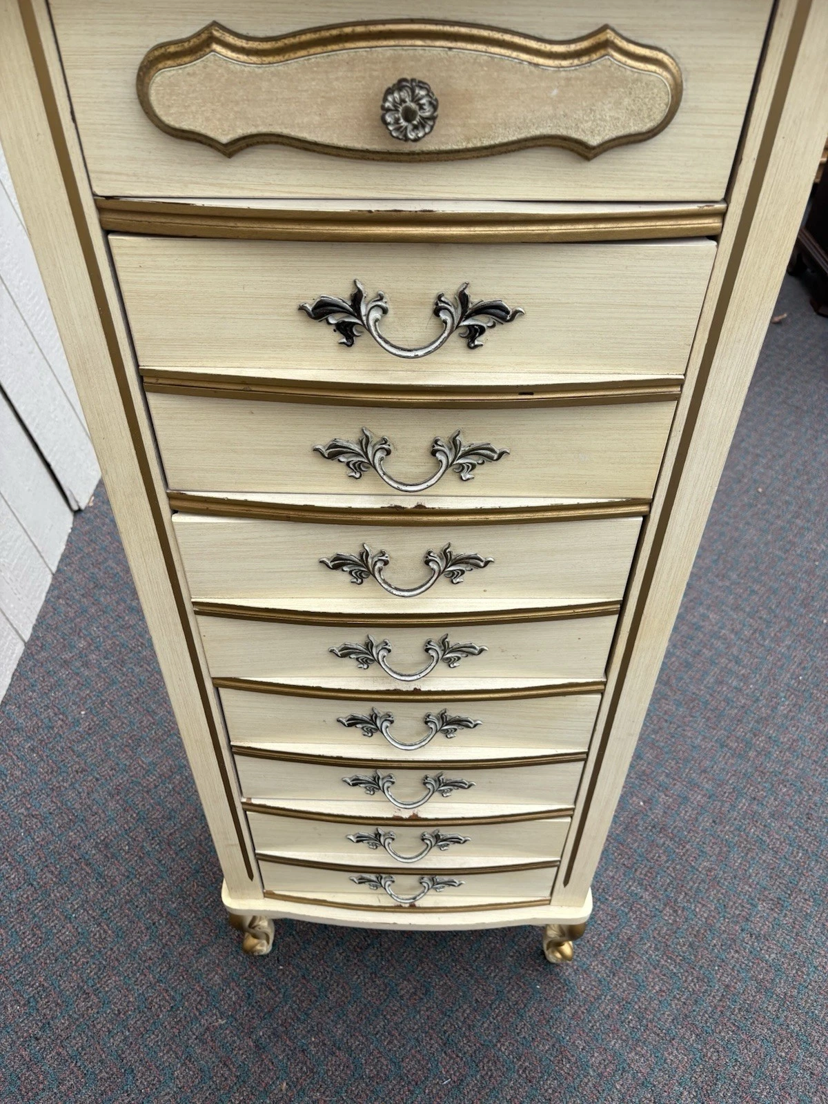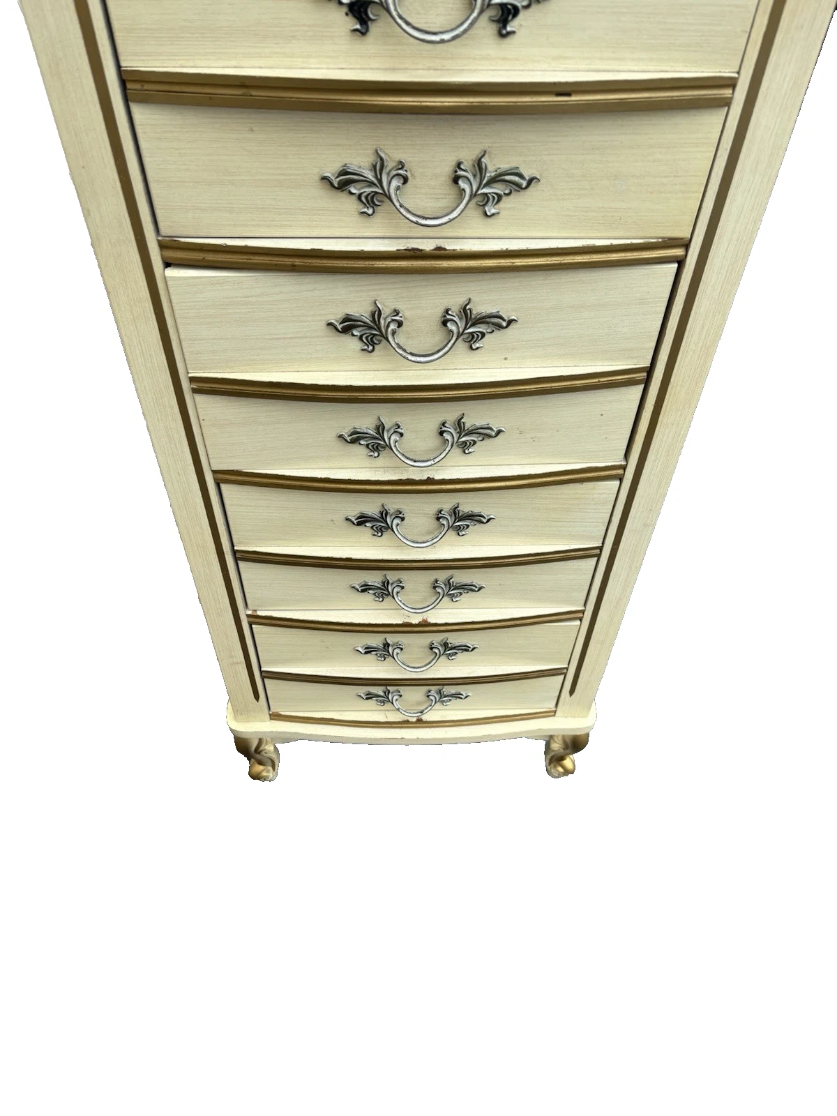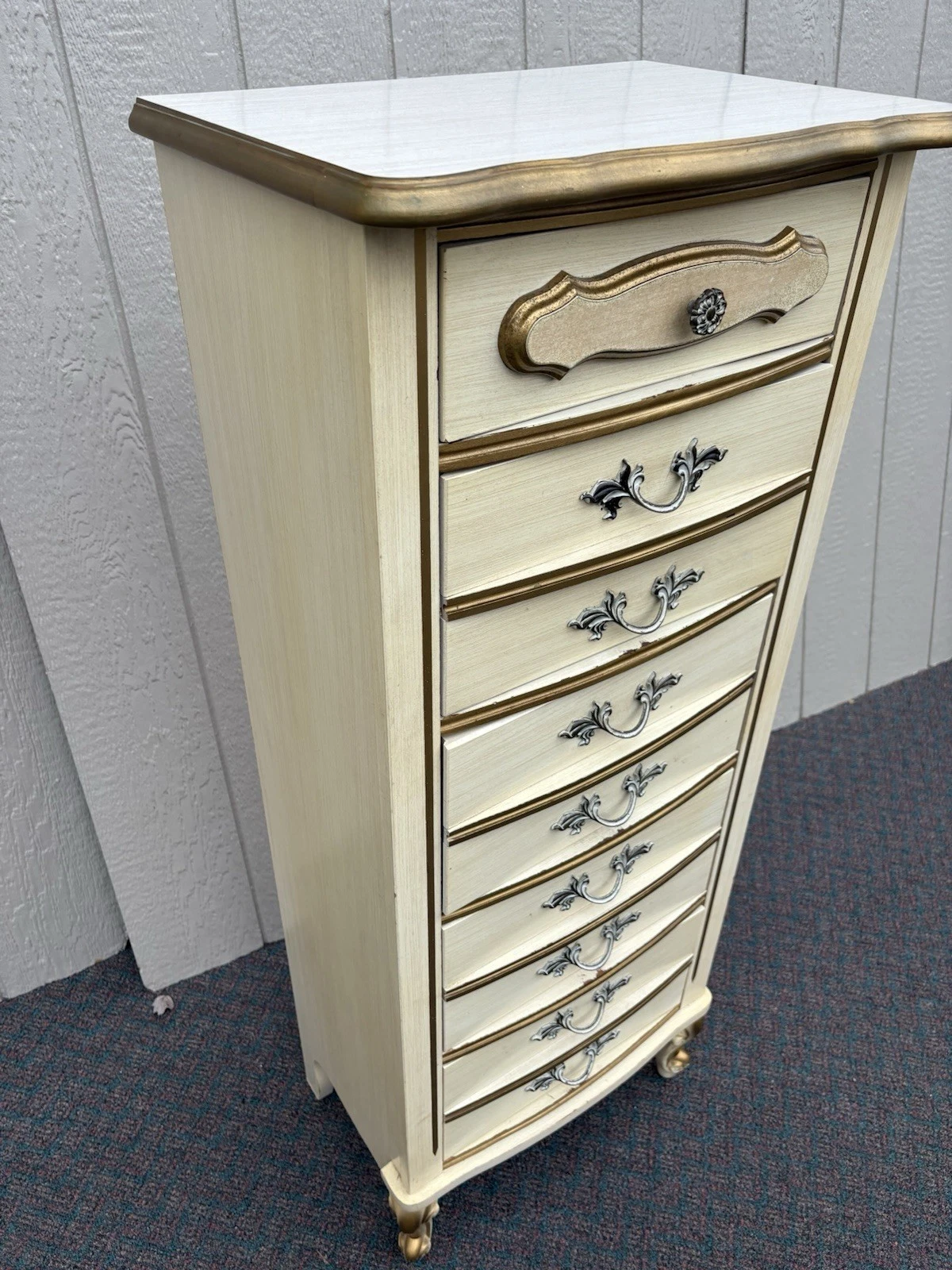 This charming lingerie chest embodies the romantic allure of shabby chic style, with its beautifully painted multicolor finish and delicate lines that evoke a sense of nostalgia. Featuring five spacious drawers, it offers both functionality and a touch of whimsy, making it a perfect addition to any bedroom. The sturdy construction ensures it will stand the test of time, while the unique character of this piece invites warmth and personality into your home. Embrace its vintage charm and let it tell your story.