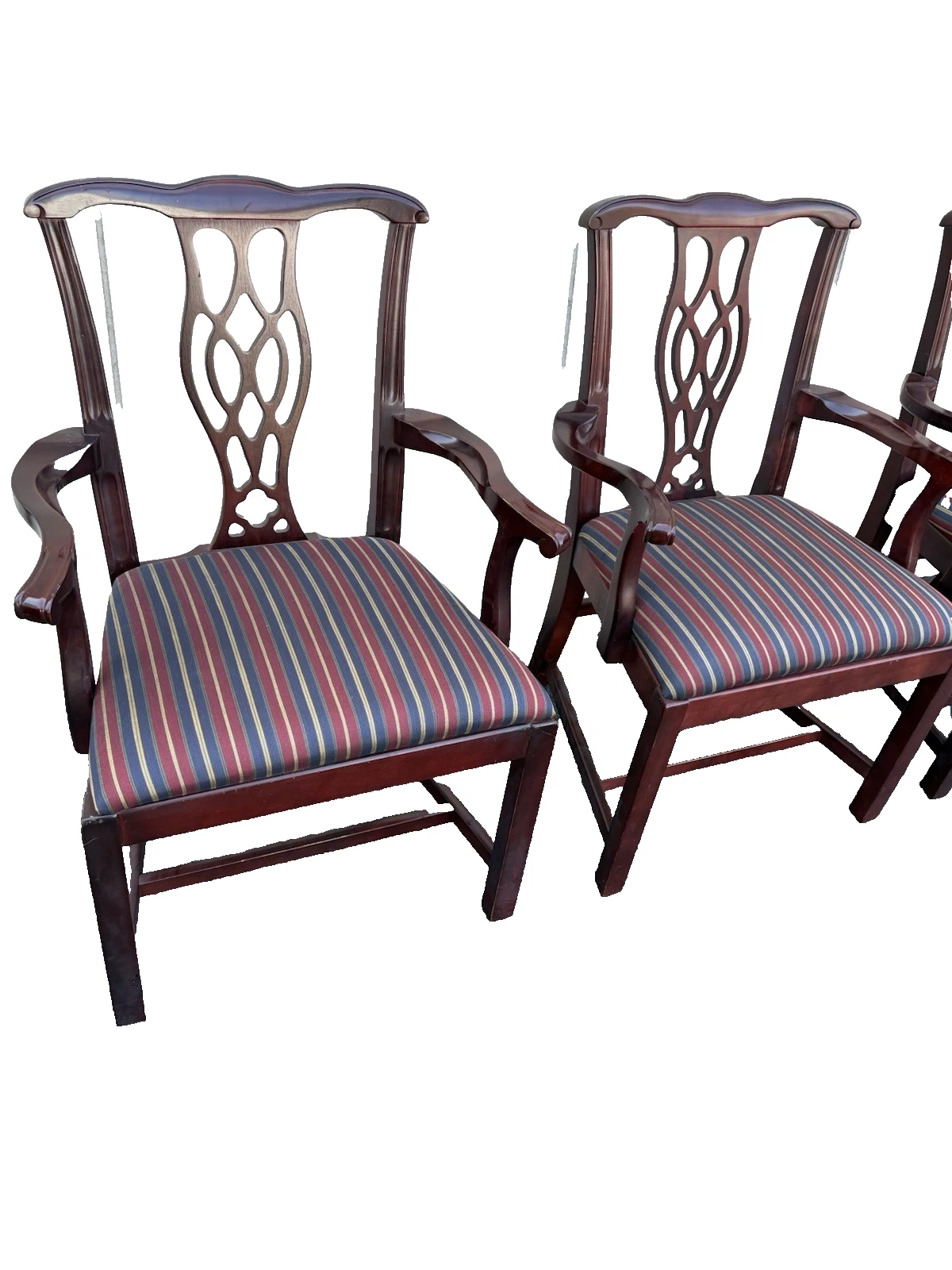 This set of four STEELCASE mahogany armchairs beautifully embodies the timeless elegance of Chippendale design, with their gracefully curved arms and rich, warm tones. Each chair showcases the meticulous craftsmanship that has made STEELCASE a respected name in furniture since its inception. Handcrafted from solid mahogany, these chairs are not only sturdy but also exude a sense of history and charm, making them perfect for any room where comfort meets classic style. Their versatile design ensures they can seamlessly complement both traditional and contemporary interiors, inviting you to gather and share moments with family and friends.