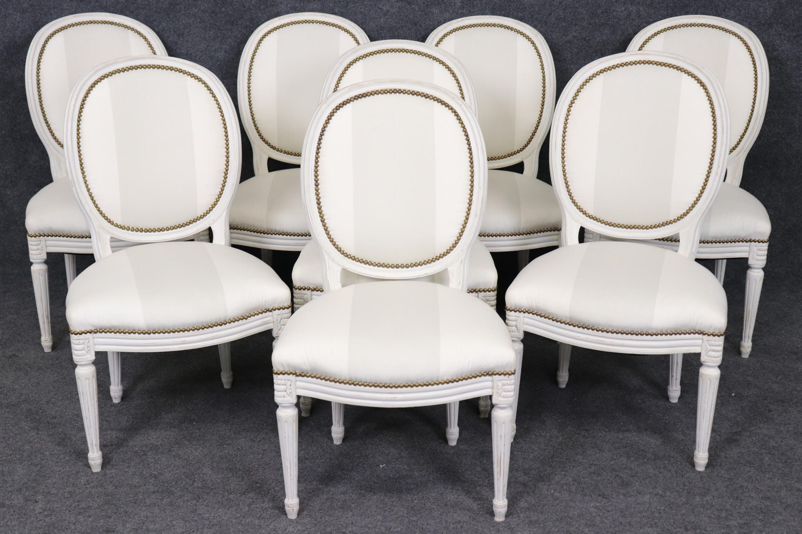 Set of 8 Louis XVI Style Dining Chairs: Painted Antique French Furniture