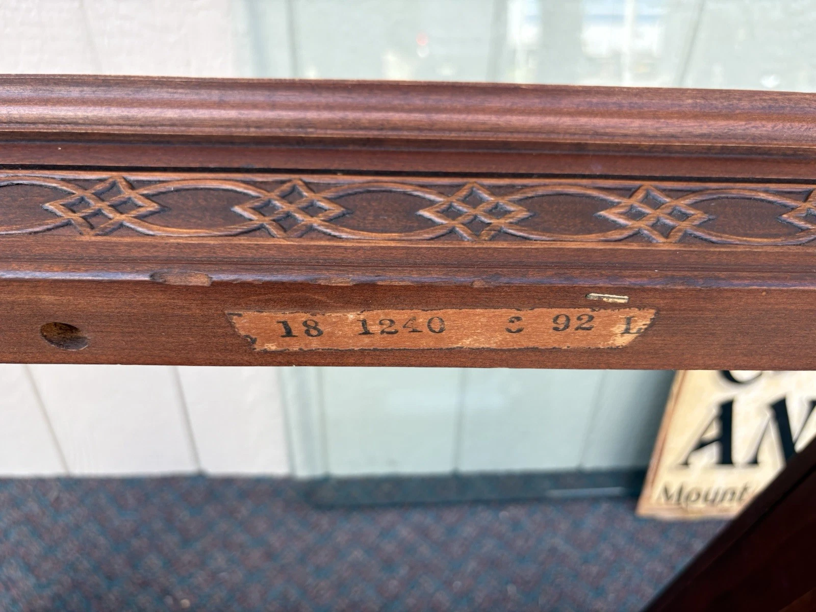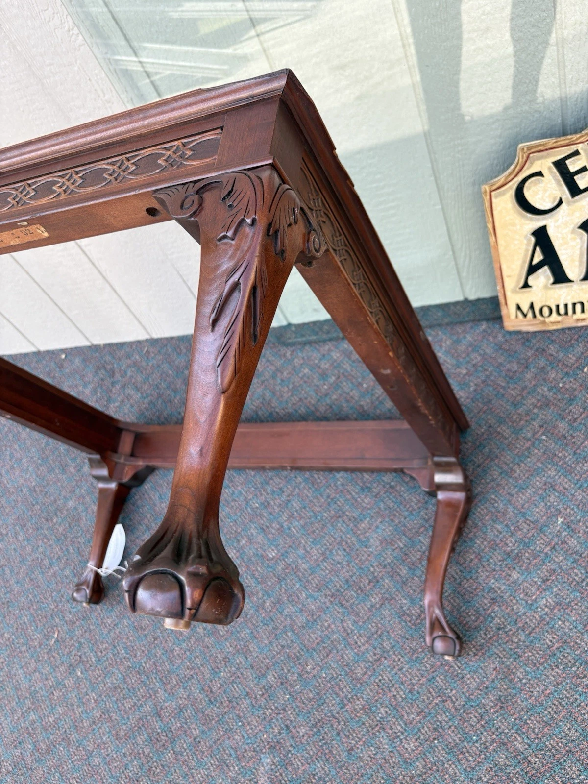 This charming Chippendale-style coffee table showcases the timeless elegance of solid mahogany, embodying both craftsmanship and character. Its gracefully designed legs and thick beveled glass top create a sophisticated focal point for any room, while the gentle patina and light scratches tell a story of cherished moments. With its sturdy construction, this piece is not just a table but a lasting companion for your living space, inviting warmth and style into your home.