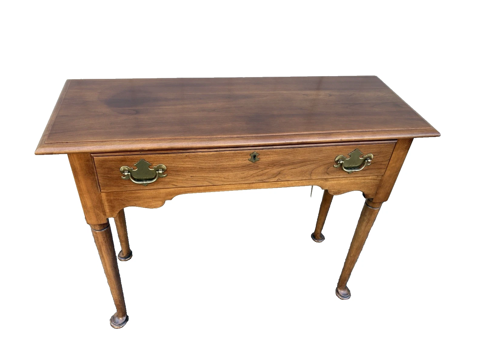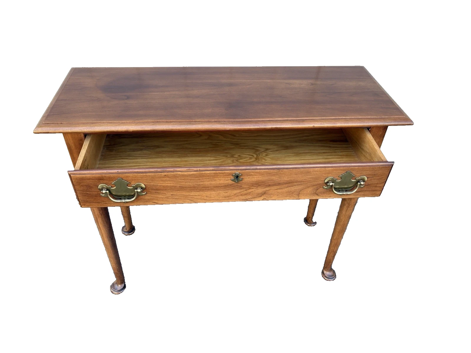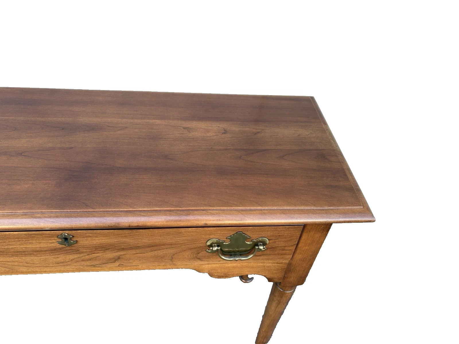 This charming Statton solid cherry console table embodies the timeless elegance of Queen Anne style, making it a versatile addition to any room in your home. Crafted with meticulous attention to detail, its rich cherry wood finish showcases the natural grain, while a single drawer offers both functionality and a touch of vintage allure. This sturdy piece, dating back to the 1980s, reflects the quality craftsmanship that Statton is known for, ensuring it will be a cherished staple in your home for years to come.