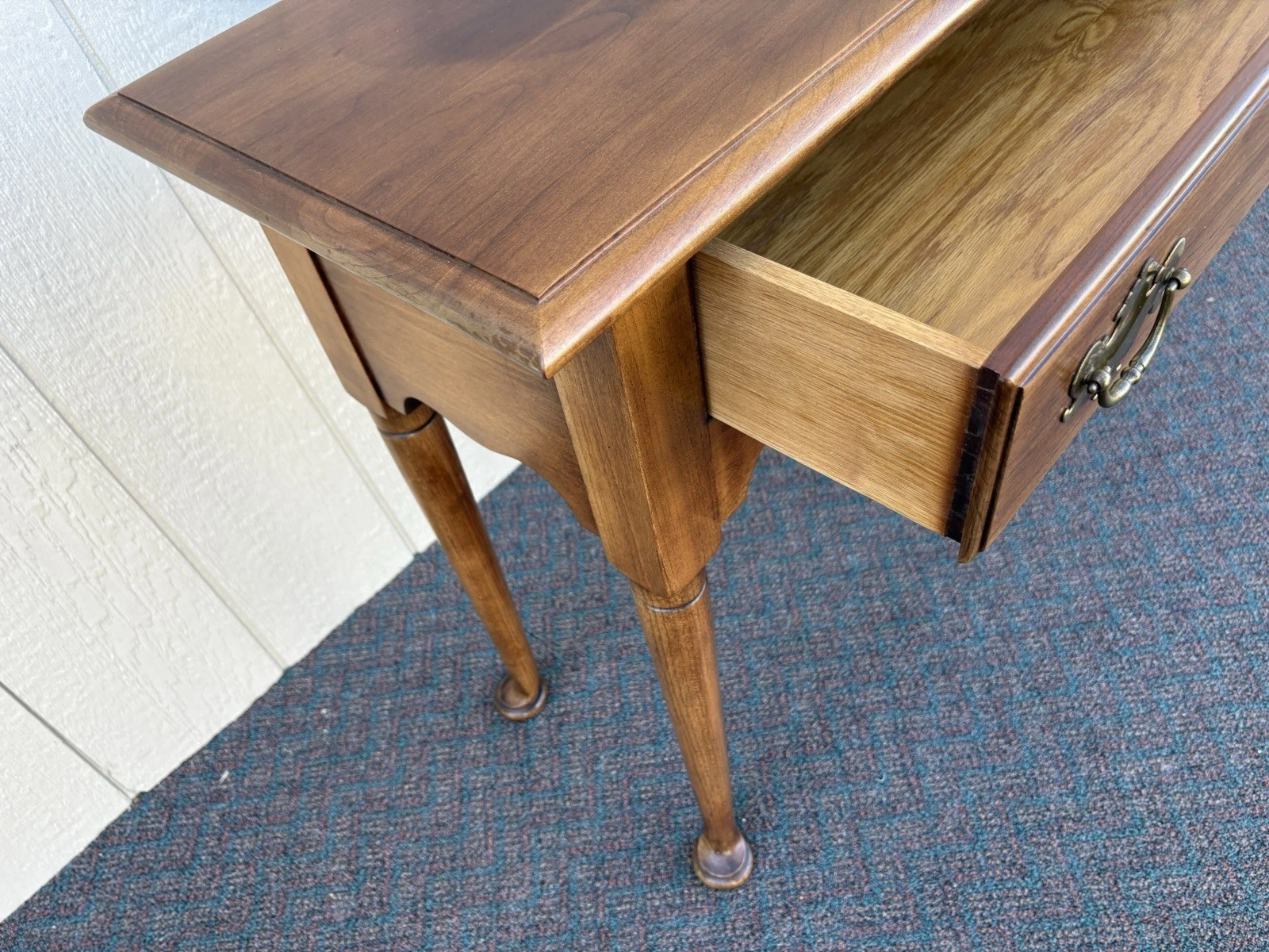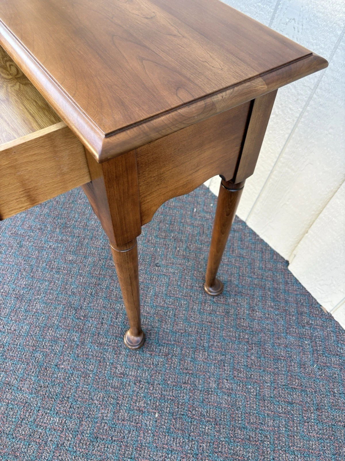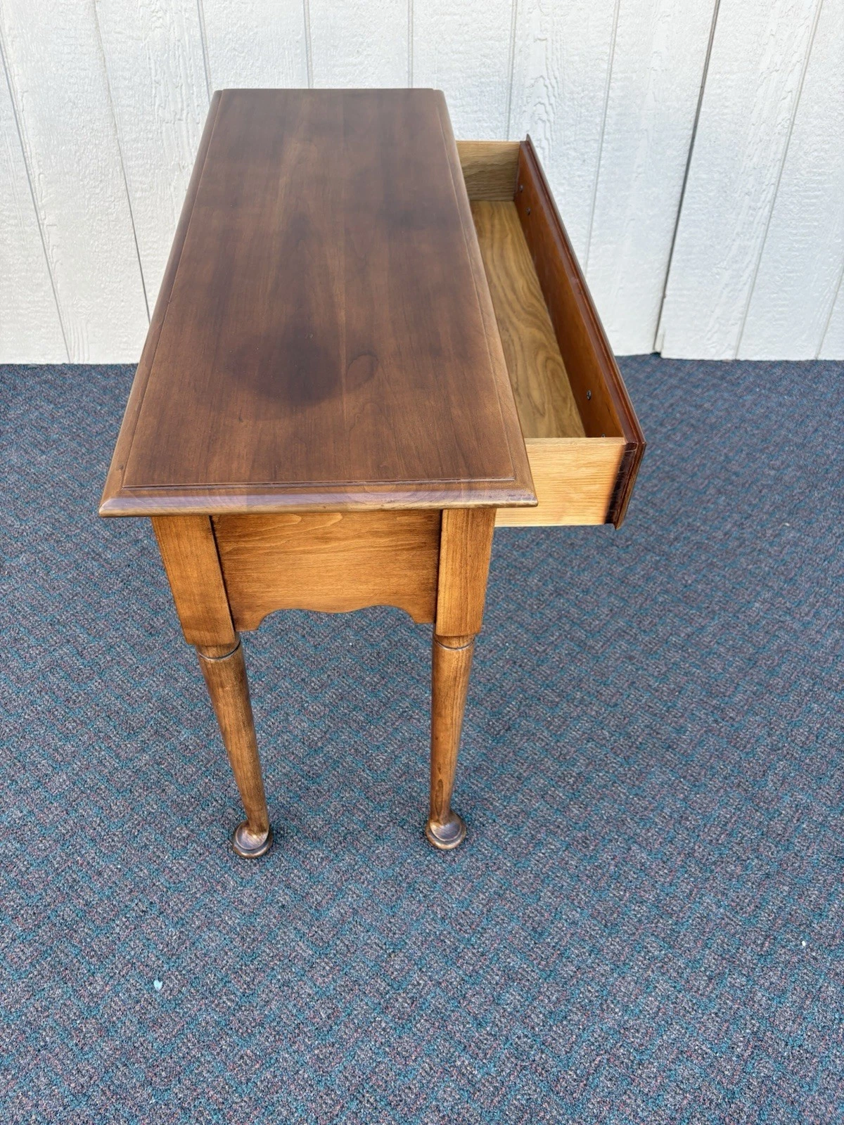 This charming Statton solid cherry console table embodies the timeless elegance of Queen Anne style, making it a versatile addition to any room in your home. Crafted with meticulous attention to detail, its rich cherry wood finish showcases the natural grain, while a single drawer offers both functionality and a touch of vintage allure. This sturdy piece, dating back to the 1980s, reflects the quality craftsmanship that Statton is known for, ensuring it will be a cherished staple in your home for years to come.
