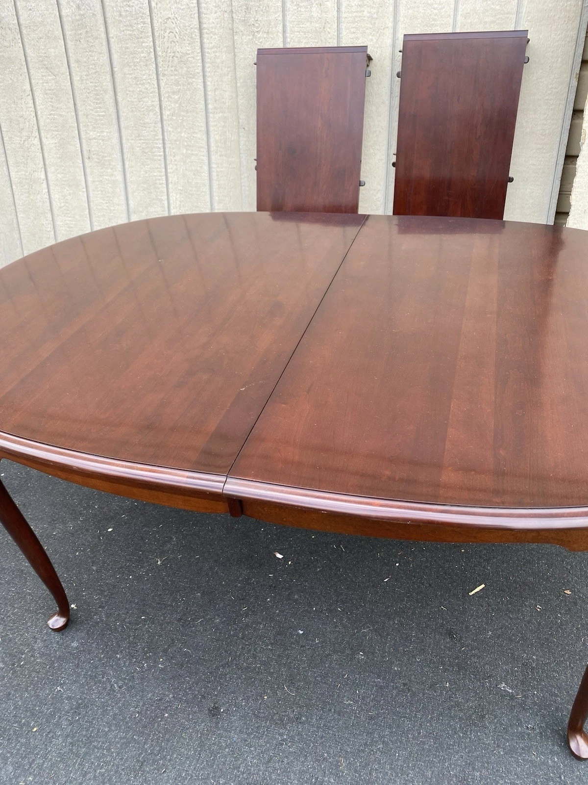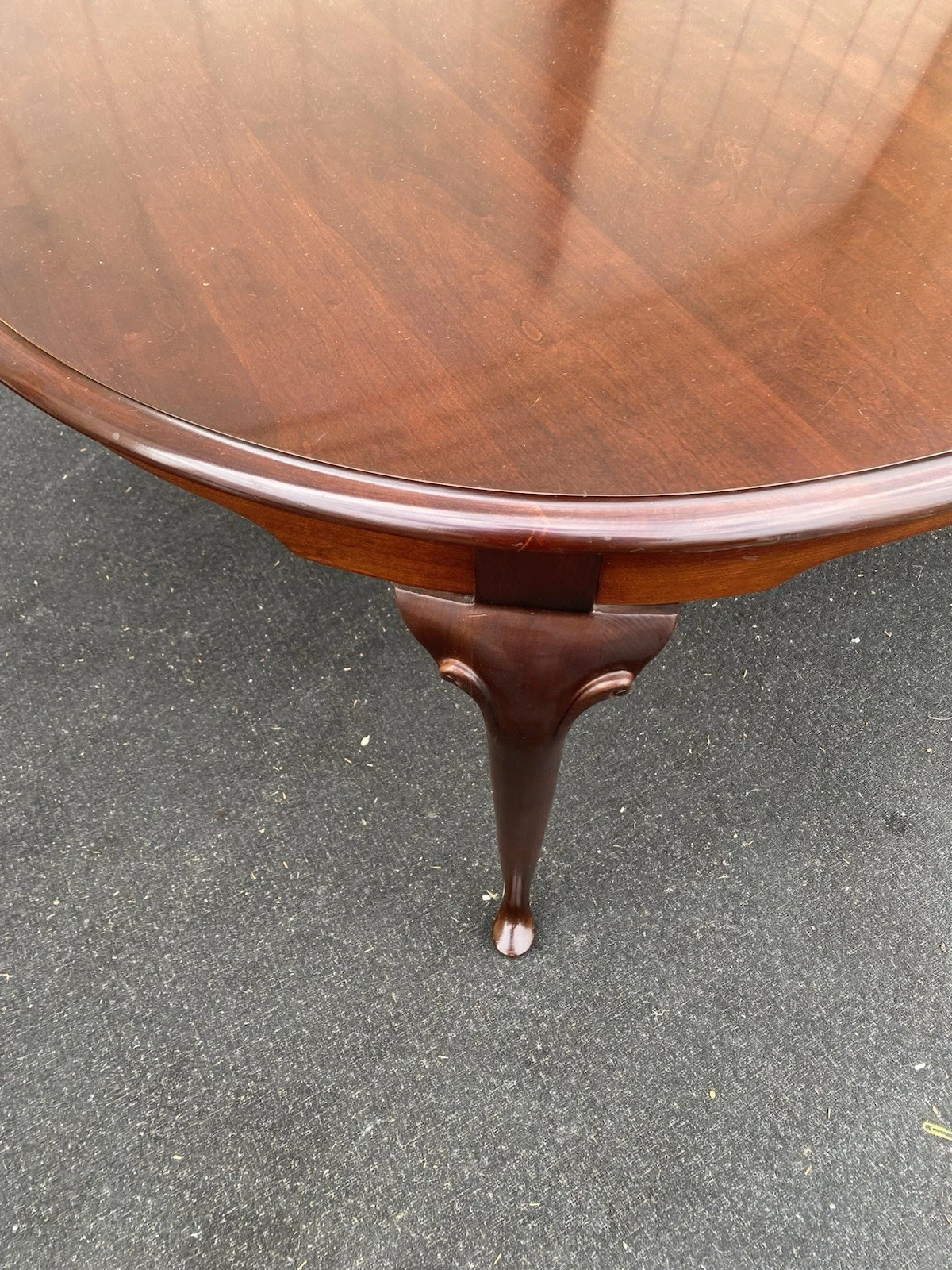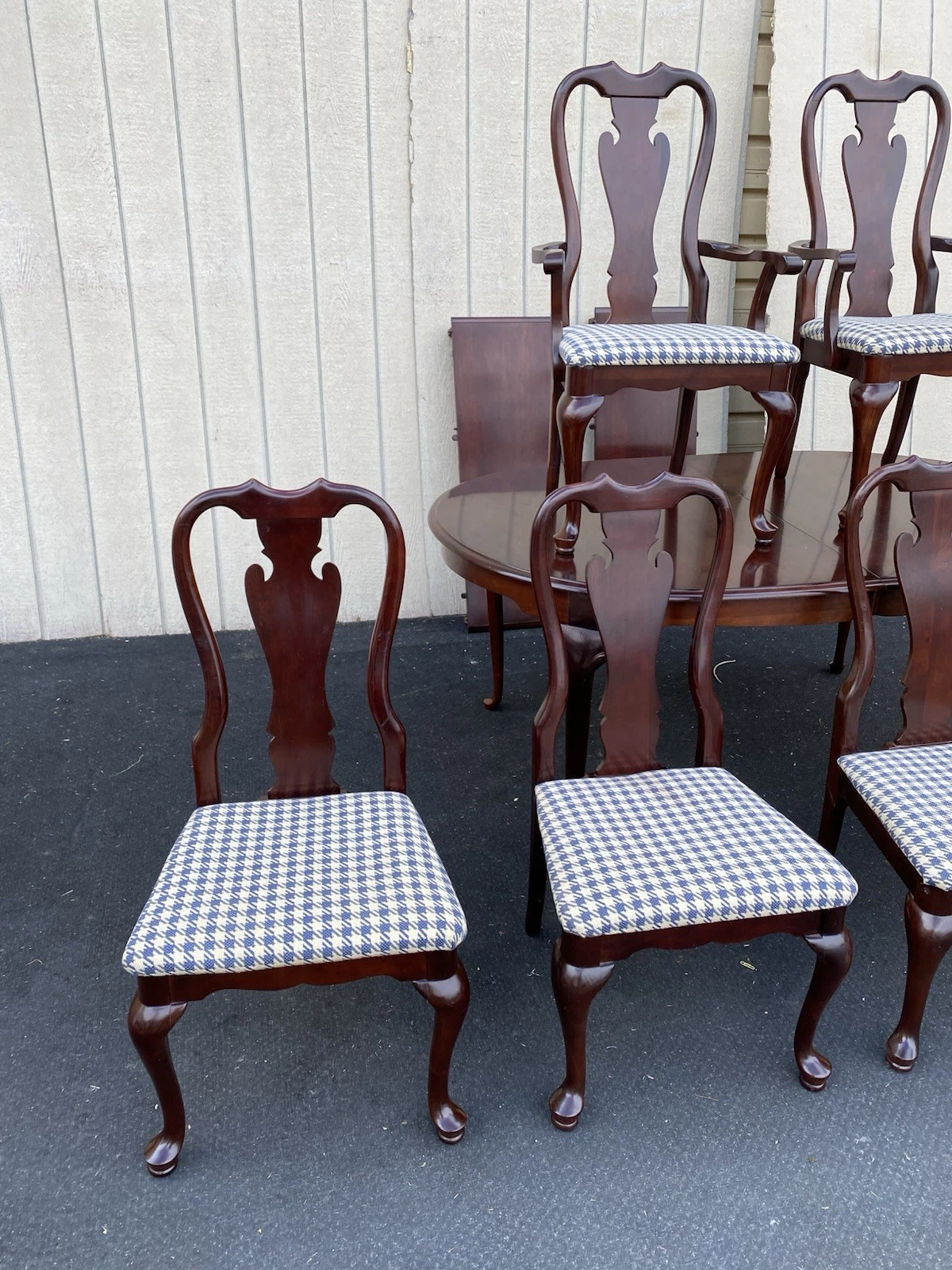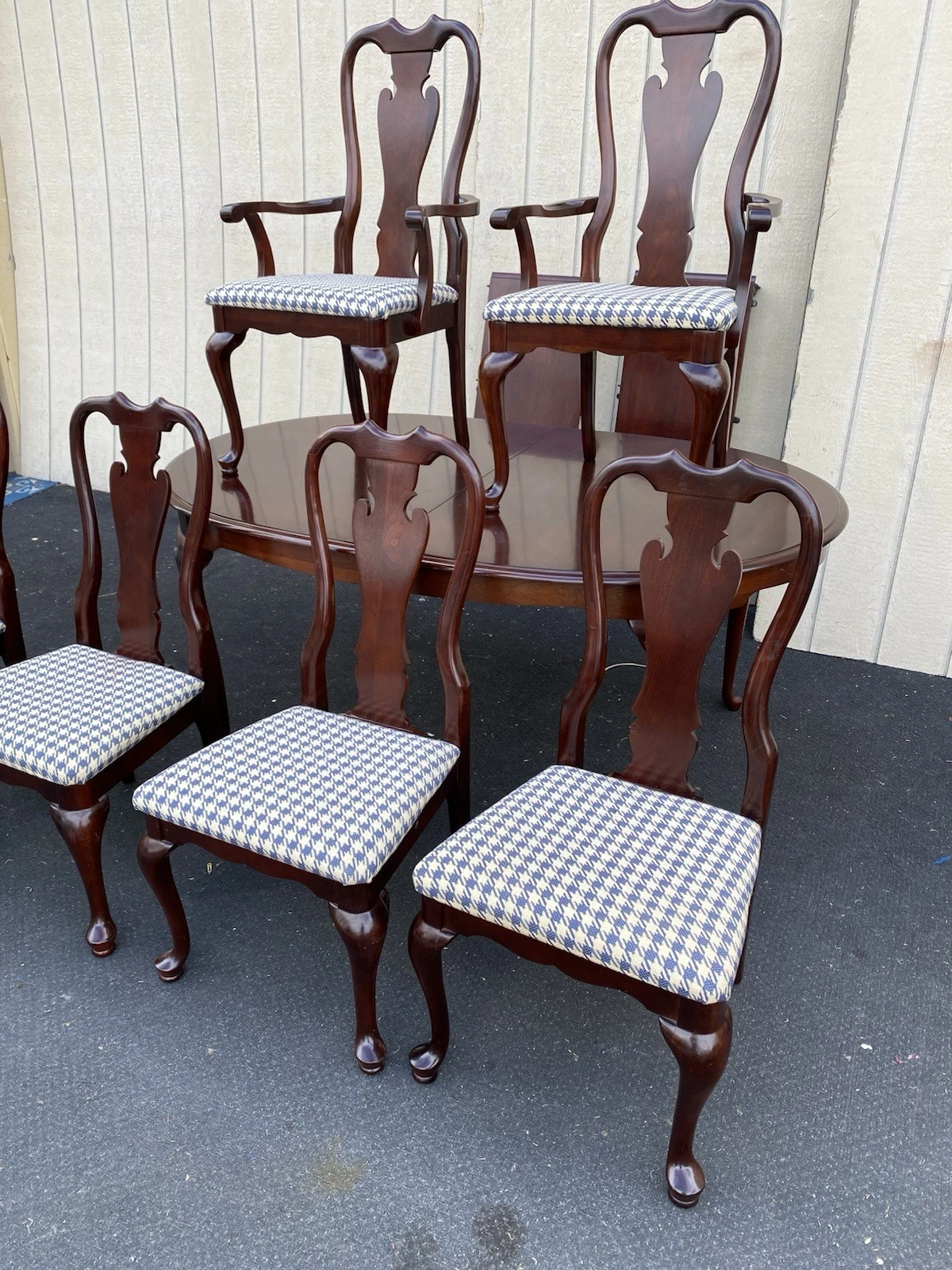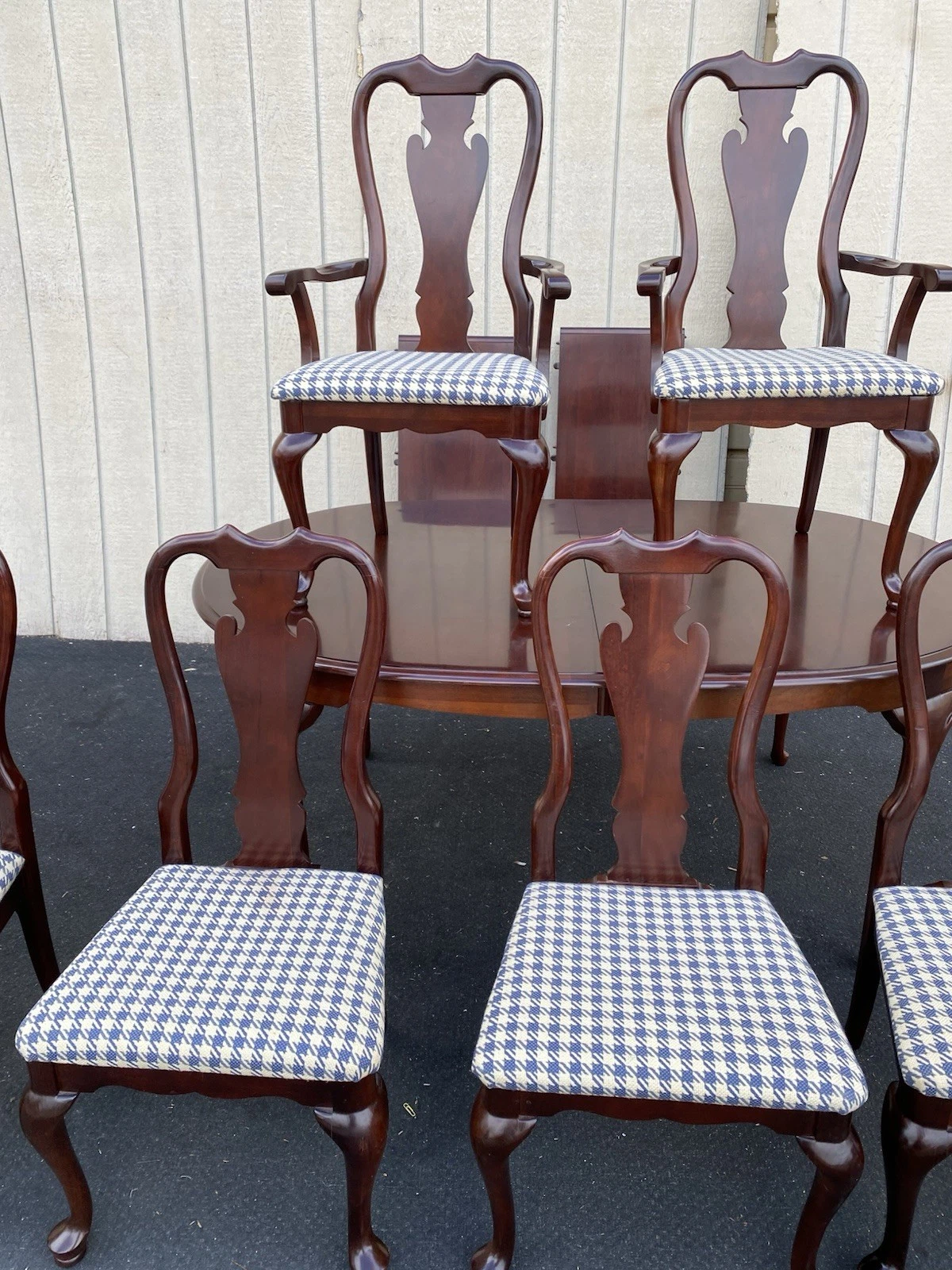 Crafted from rich cherry wood, this elegant Queen Anne-style dining table from SUMTER Furniture exudes timeless charm and durability. With two leafs that extend its length for larger gatherings, it invites family and friends to share meals and create lasting memories. Accompanied by six matching chairs, each piece is a testament to meticulous craftsmanship, showcasing graceful lines and sturdy construction. This dining set, with its warm hues and inviting presence, is perfect for both intimate dinners and festive celebrations, making it a cherished addition to any home.