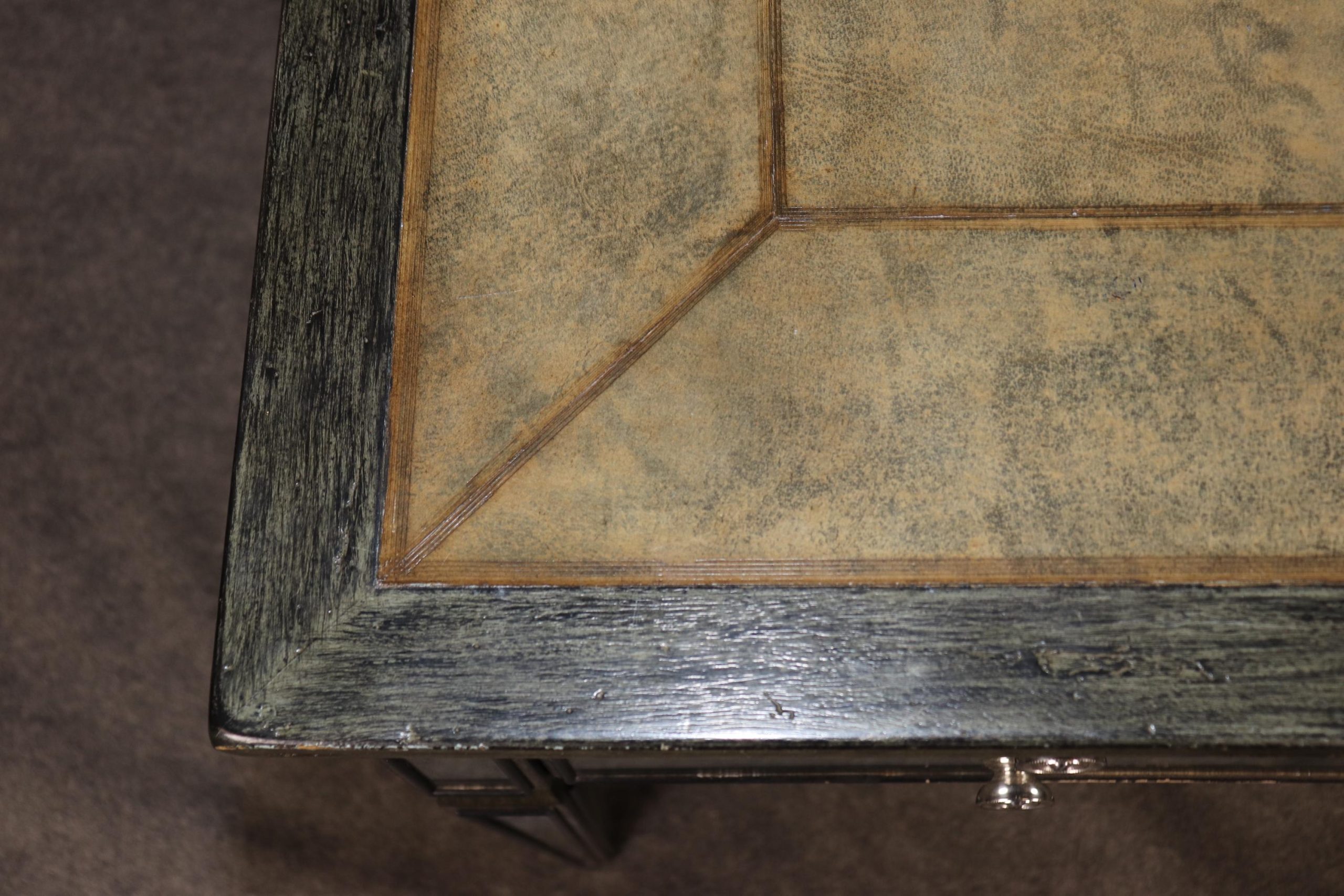 Whether you’re an aficionado of classical European furniture, a designer sourcing for a high-end traditional or transitional project, or a collector of fine furnishings from Theodore Alexander, this piece offers a perfect harmony of aesthetic beauty and functional elegance. The piece is in good vintage condition with the exception of some light surface scratches, Minor finish loss to the leather top and wood frame and normal age related wear. As to be expected with items of age and use. The églomisé panels are in great shape and have no cracks or chips