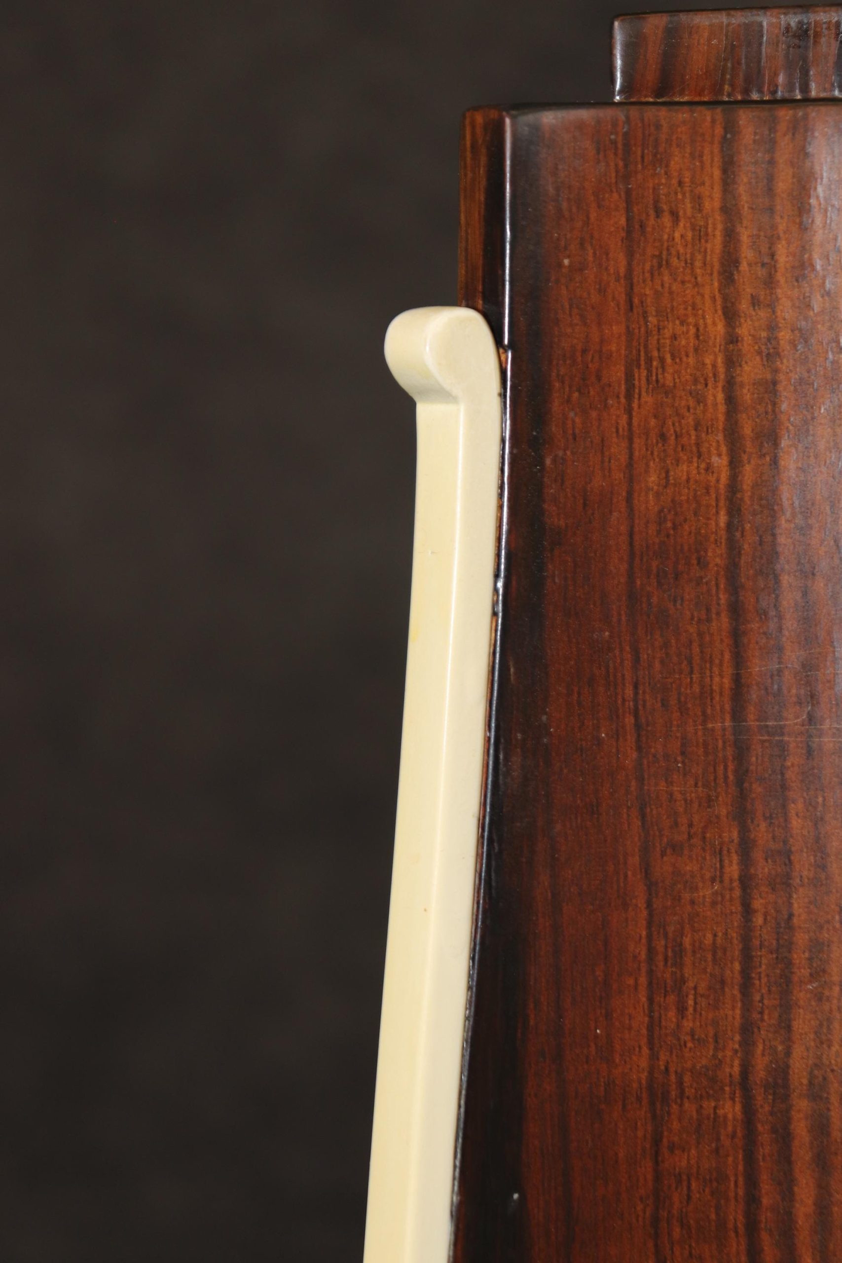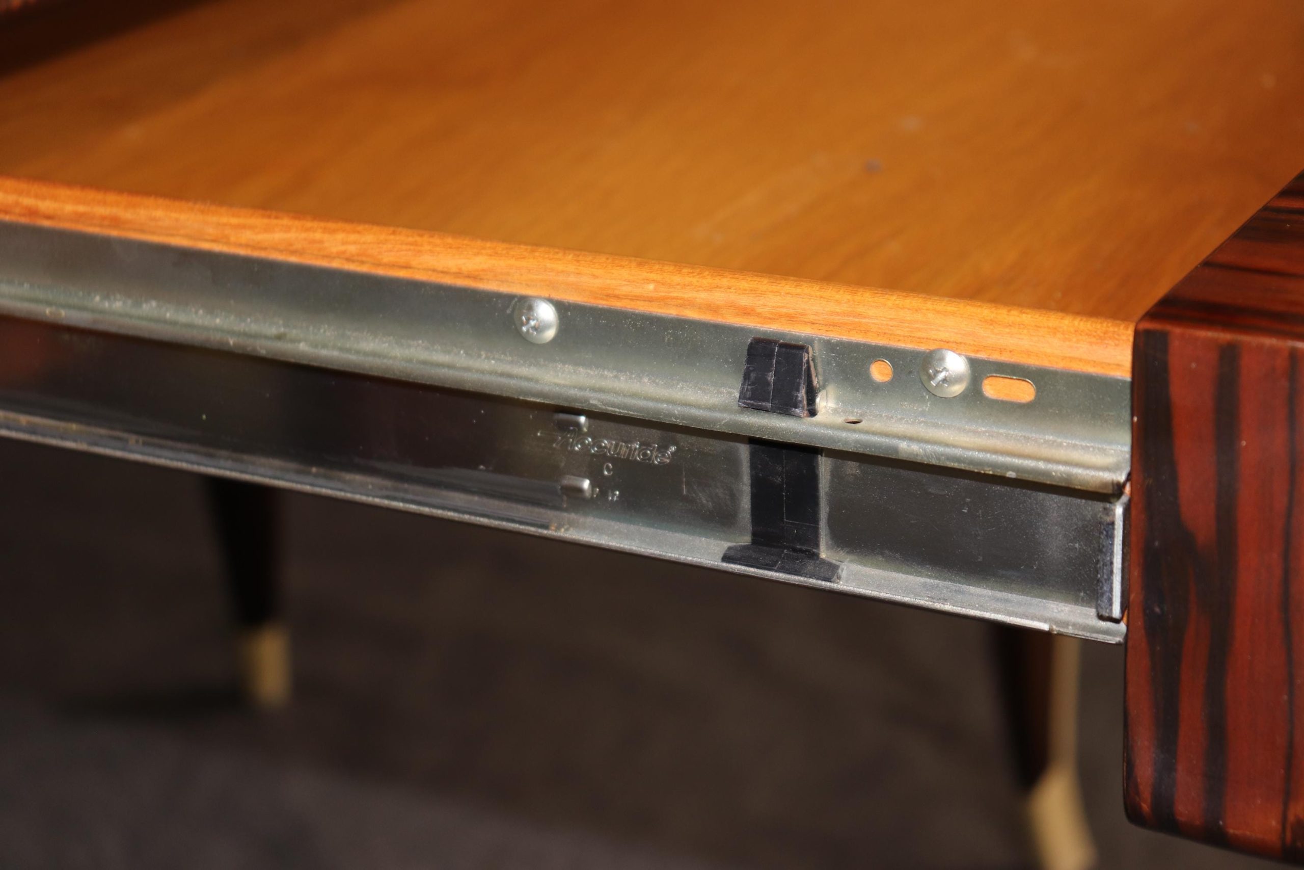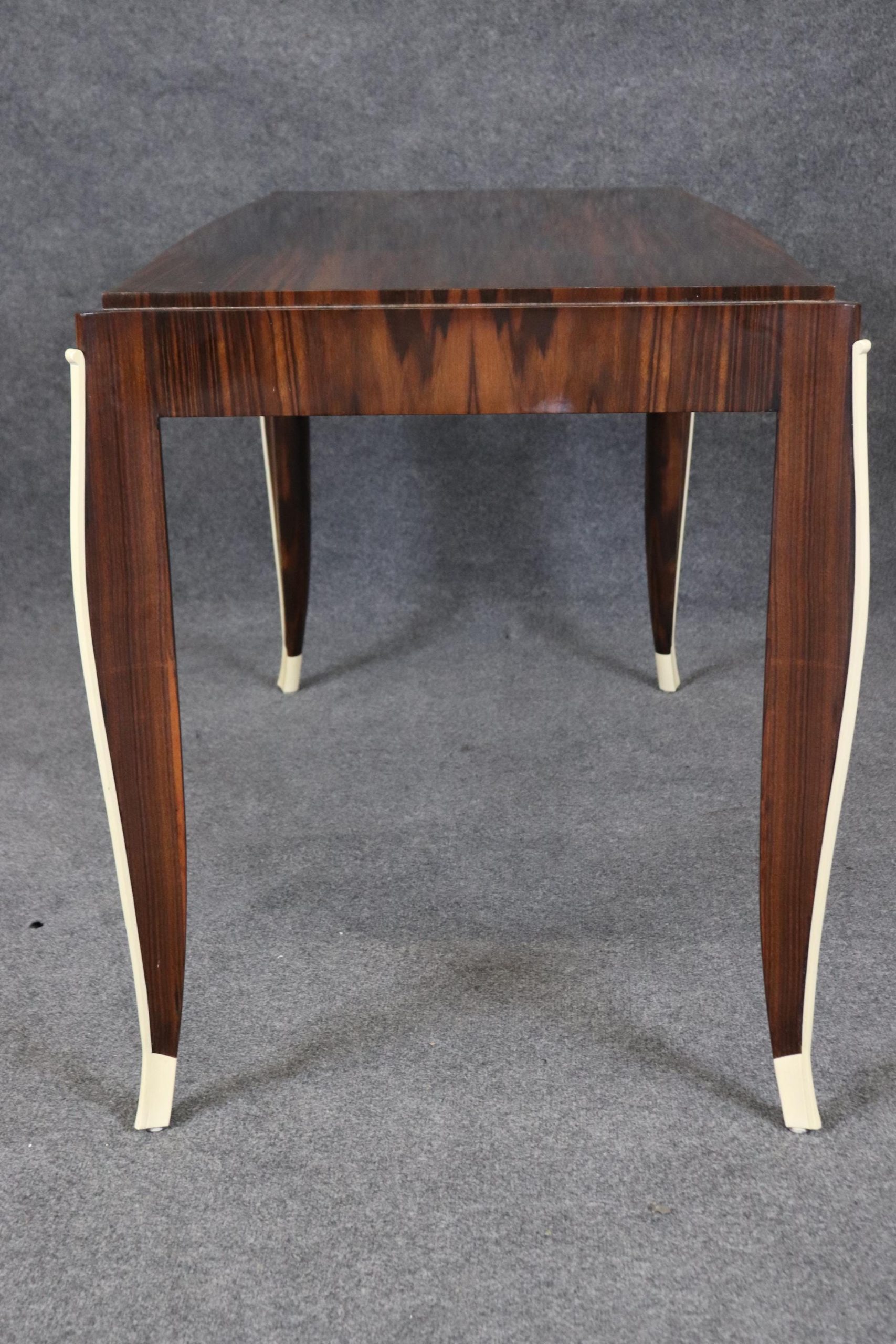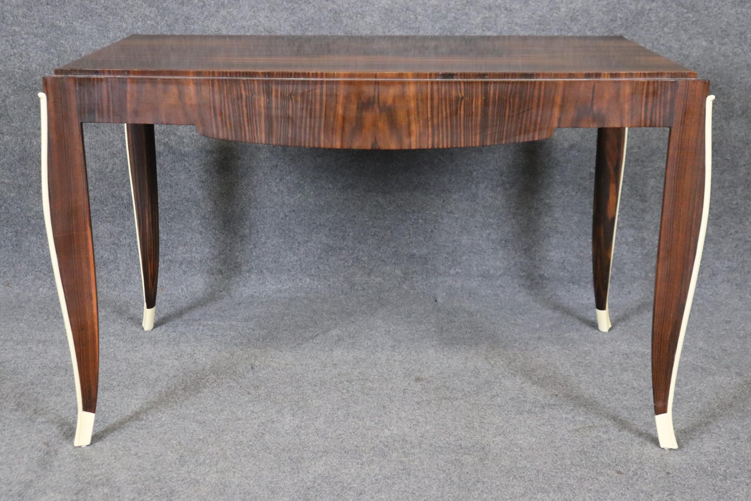 This vintage Art Deco style Rosewood writing desk, in the manner of Emile-Jacques Ruhlmann, is bound to bring a sense of sophistication and character into your home or place of choosing! This desk is equipped with 1 drawer – perfect for storing your personal belongings. Émile-Jacques Ruhlmann, was a French furniture designer and interior decorator, who was one of the most important figures in the Art Deco movement. His furniture featured sleek designs, expensive and exotic materials and extremely fine craftsmanship, and became a symbol of the luxury and modernity of Art Deco. This item is perfect for any living room, den, office, or bedroom and can be paired with a variety of other styles you may already have in your home due to its simplistic yet luxurious design! This is a piece that will have your guests mesmerized by its detail and will certainly be a conversation starter at your next gathering! The piece, overall, is in good vintage condition with light surface scratches, otherwise good condition. No significant imperfections to note.