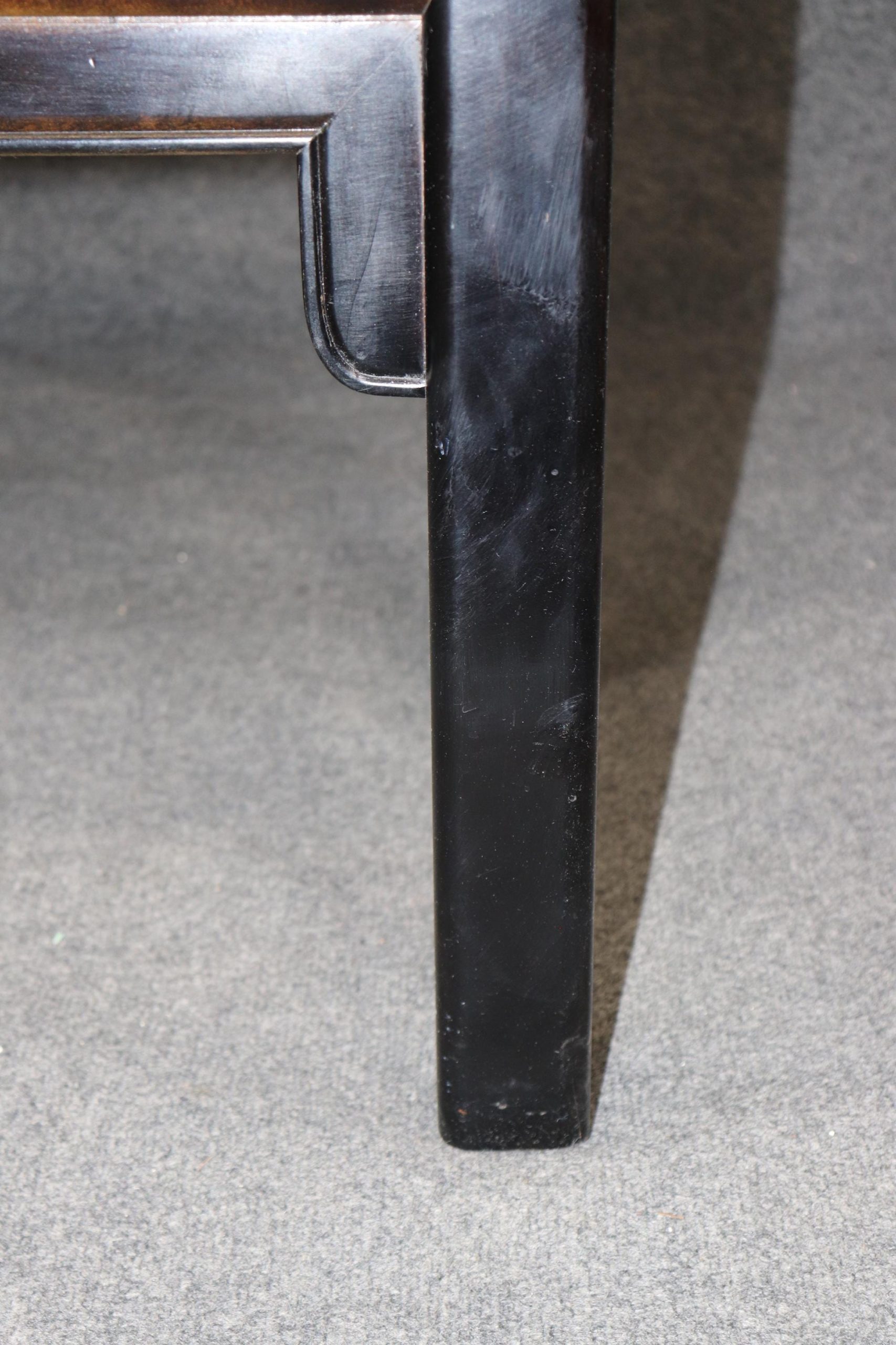 True to the Chin Hua Collection’s reputation, this table reflects a careful balance between form and function. It stands confidently on block legs with subtle Ming-style undertones and offers a long, narrow surface perfect for displaying decorative objects, books, or artwork. The piece is in good vintage condition with the exception of finish loss, some surface scratches and minor tarnishing to the brass. Otherwise good condition considering age and use.
