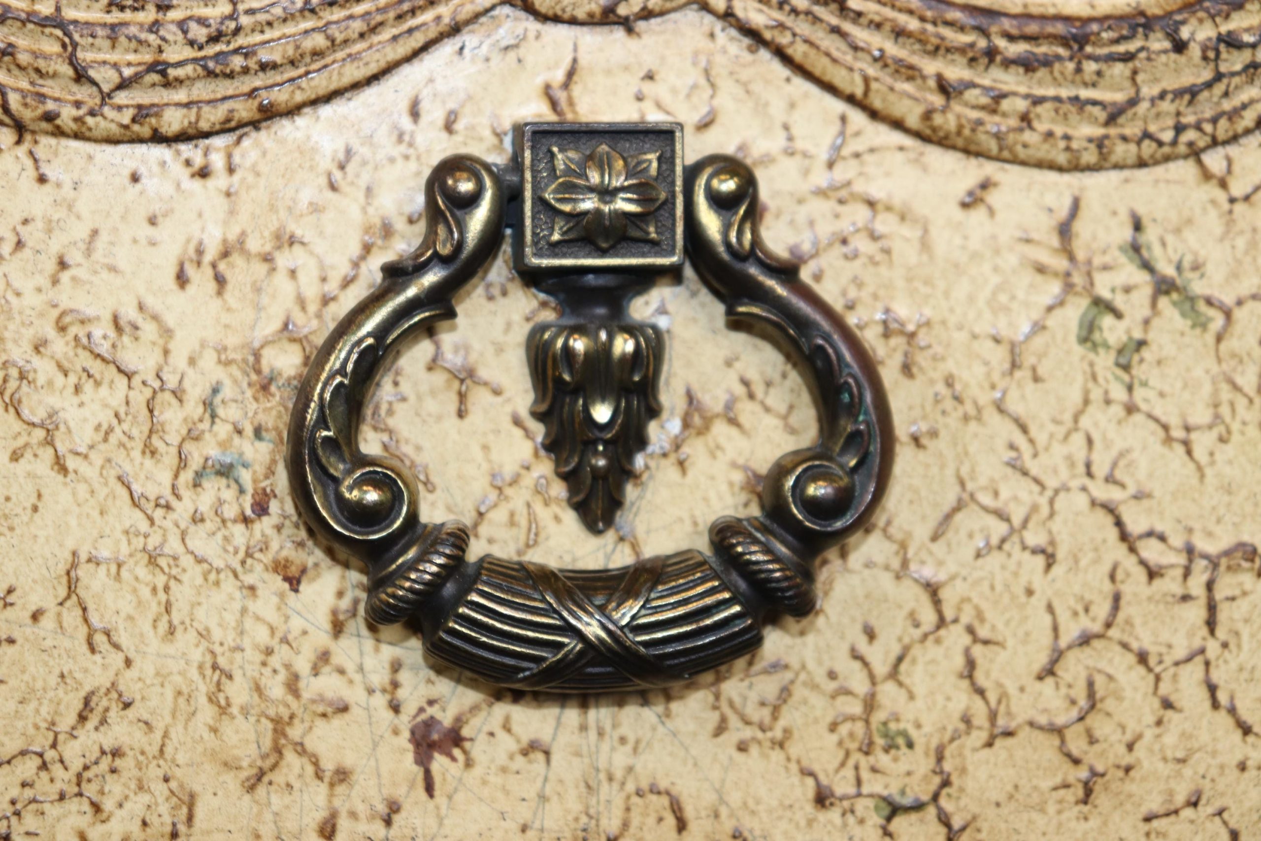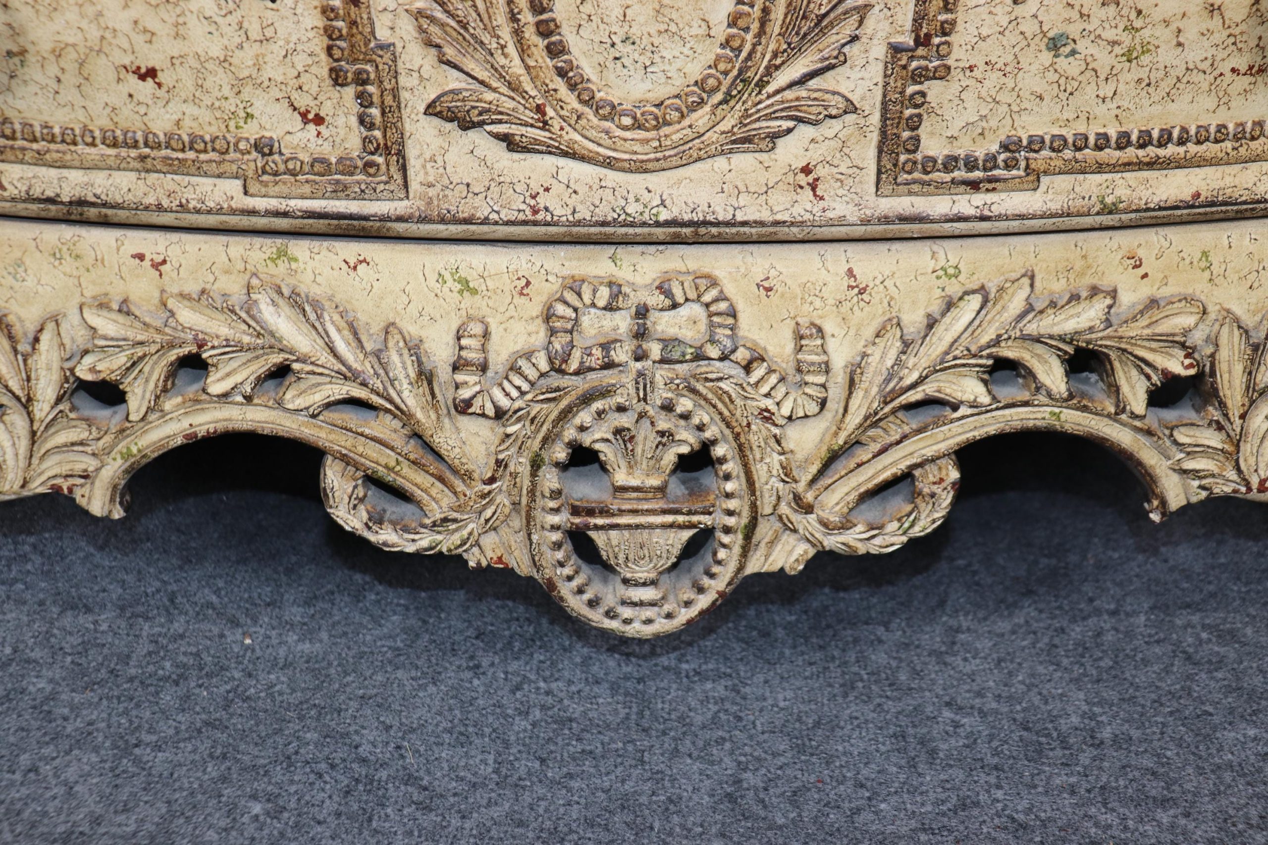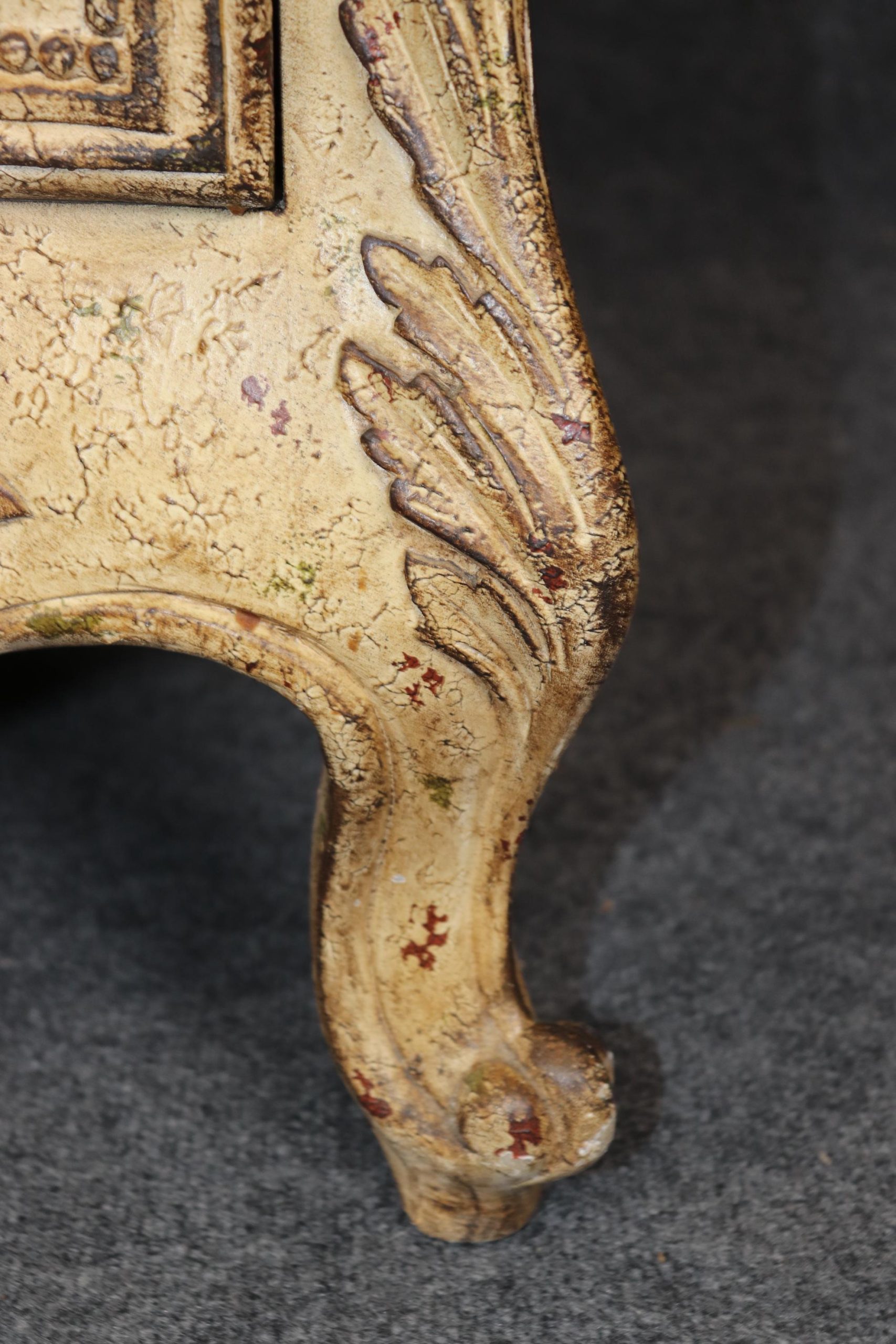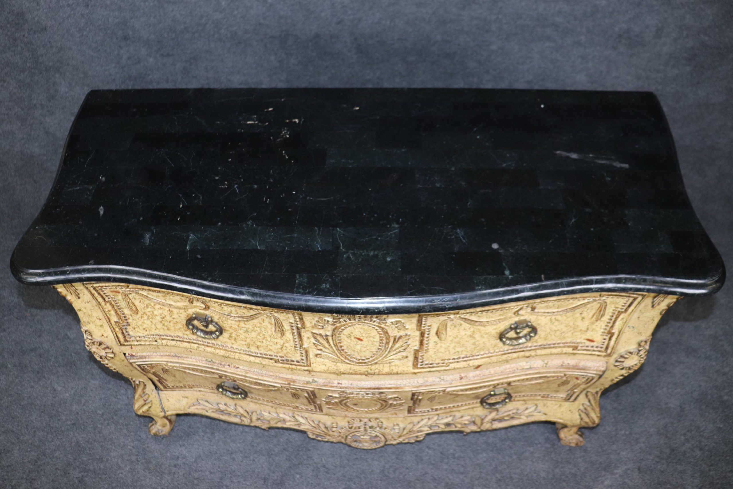 This vintage pair custom Continental style commodes with distressed tessellated tops is made of the highest quality and is perfect for your home! If you look at the photos provided, you can see the attention to detail in the carvings throughout the commodes. These pieces are perfect for any living room, bedroom, office, or place of your choosing! They each have 2 drawers, perfect for storing your personal belongings. Antiques are known to stand the test of time as new furniture from brands such as IKEA are meant to deteriorate over a couple of years in order to have you buy more of their products. I can assure you this pair will last your family for many generations! The commodes are in good vintage condition with normal finish losses and wear. Although the tops are distressed, one top does need repair.