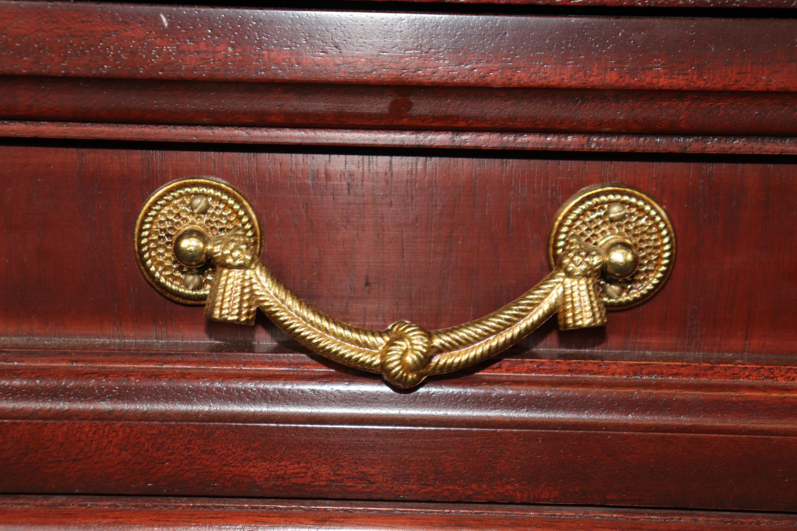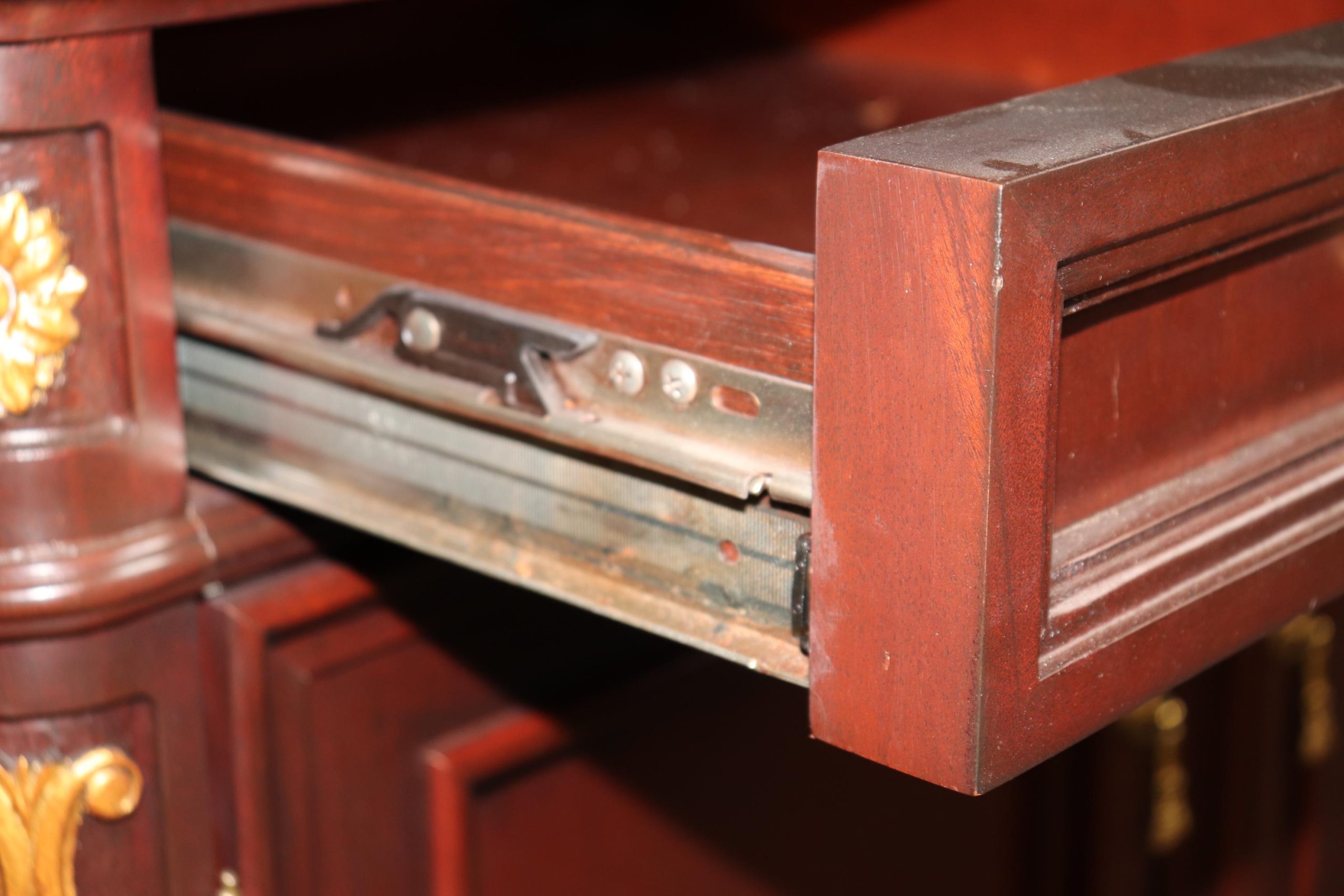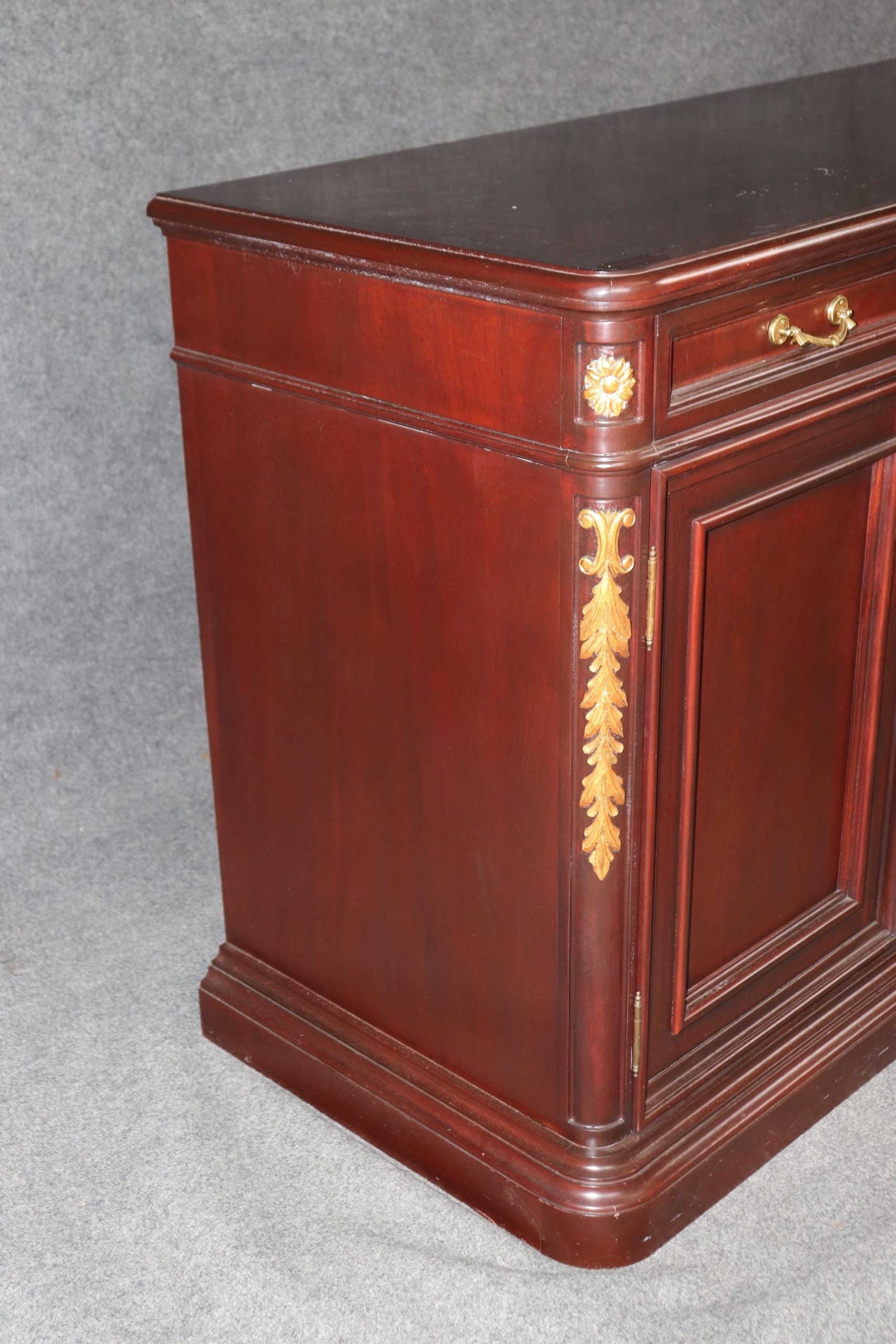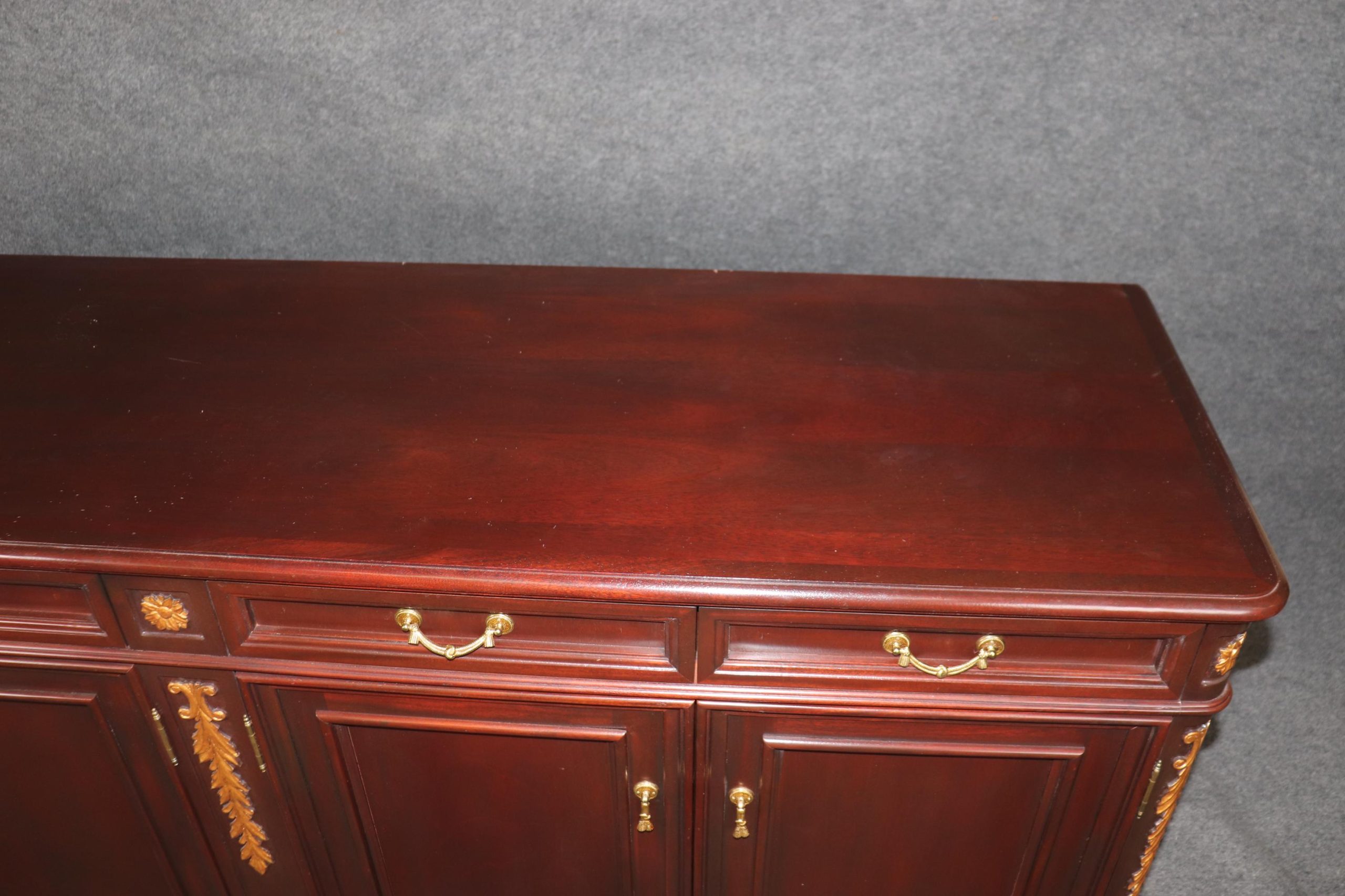This vintage custom made Louis XVI Directoire Style Sideboard Buffett is made of the highest quality and is bound to bring a sense of class and luxury into your home or place of choosing! This piece has 4 large doors in the front that open up into a spacious area as well as 4 drawers, perfect for storing away your personal belongings! This piece is in good vintage condition with the exception or some light surface scratches as well as a few deeper scratches in the finish and some minor finish loss as to be expected with an item of this age but otherwise good condition.