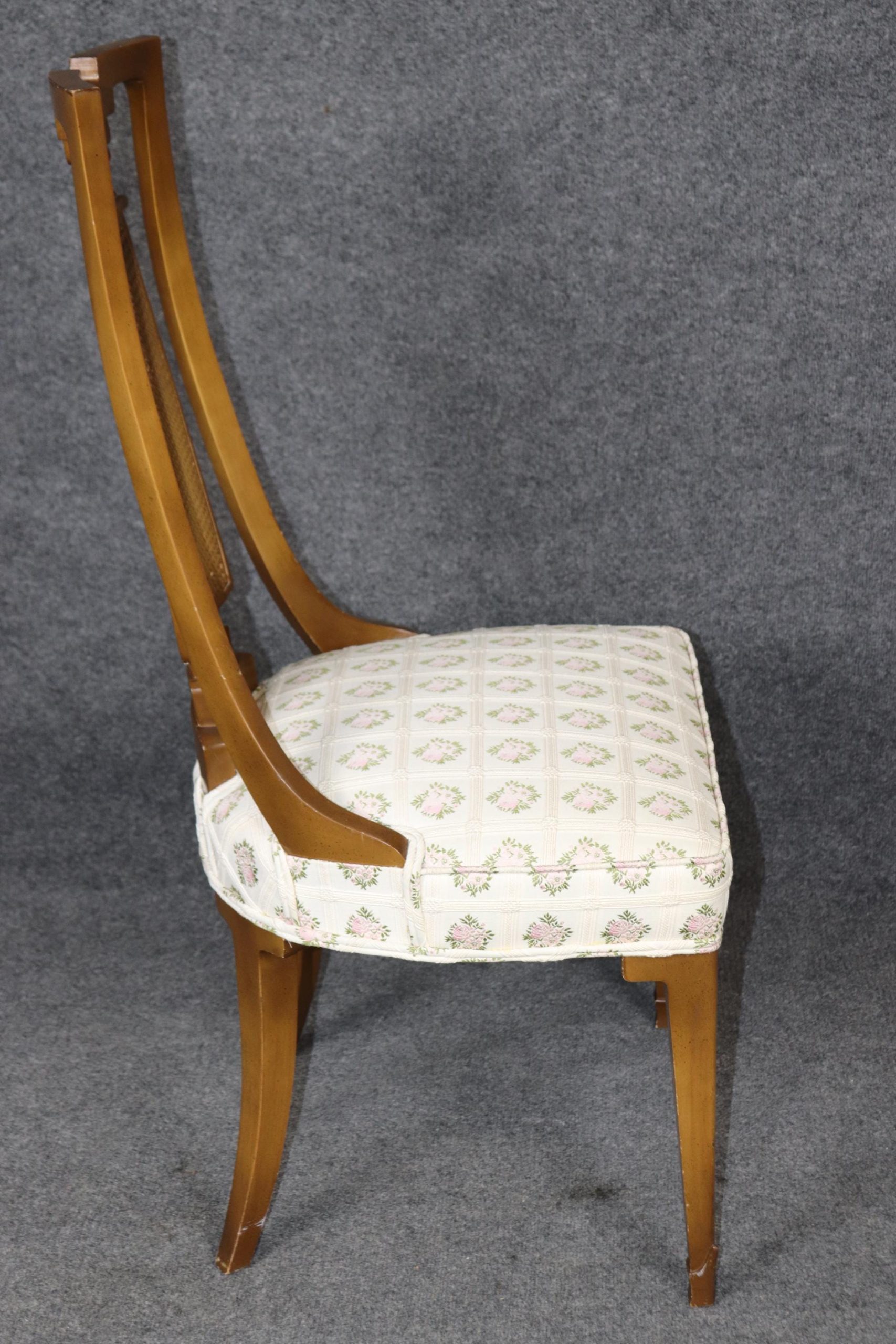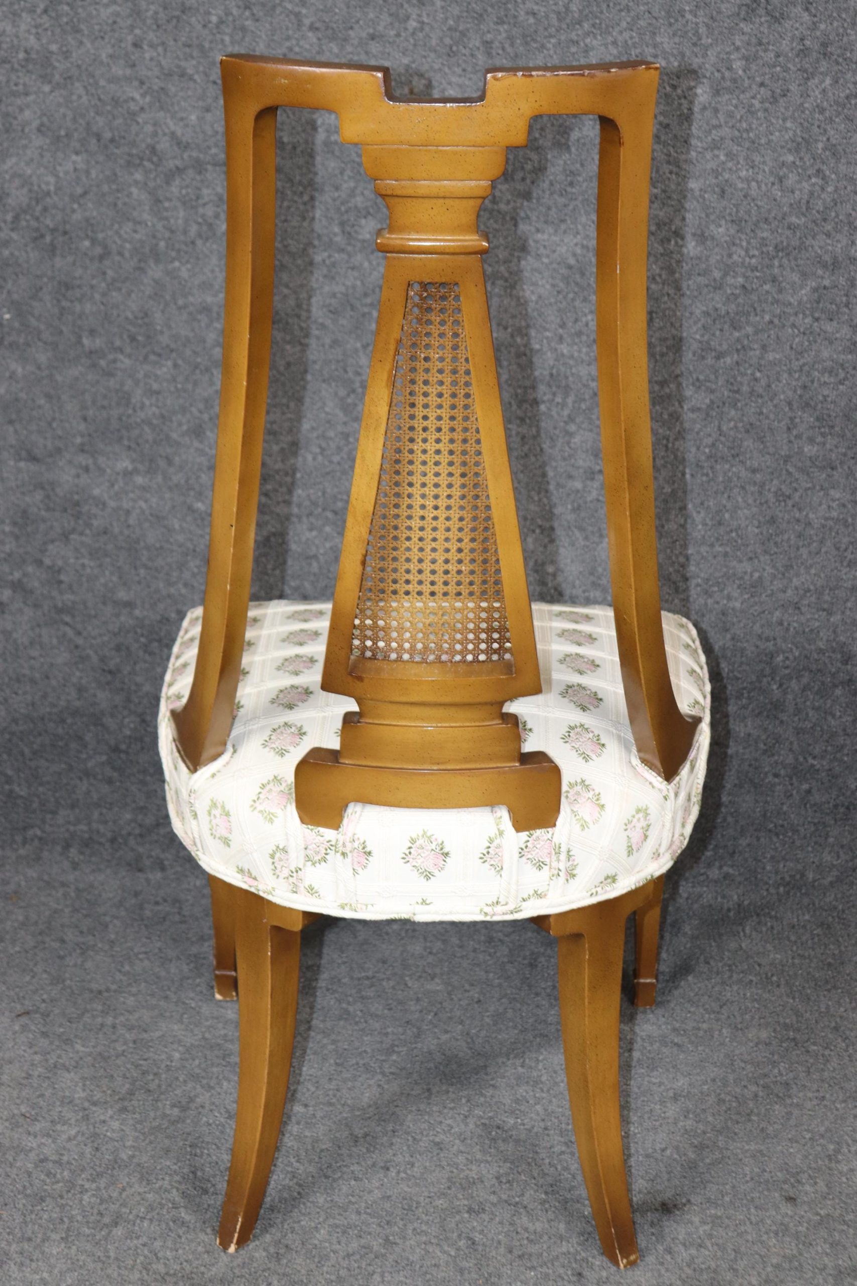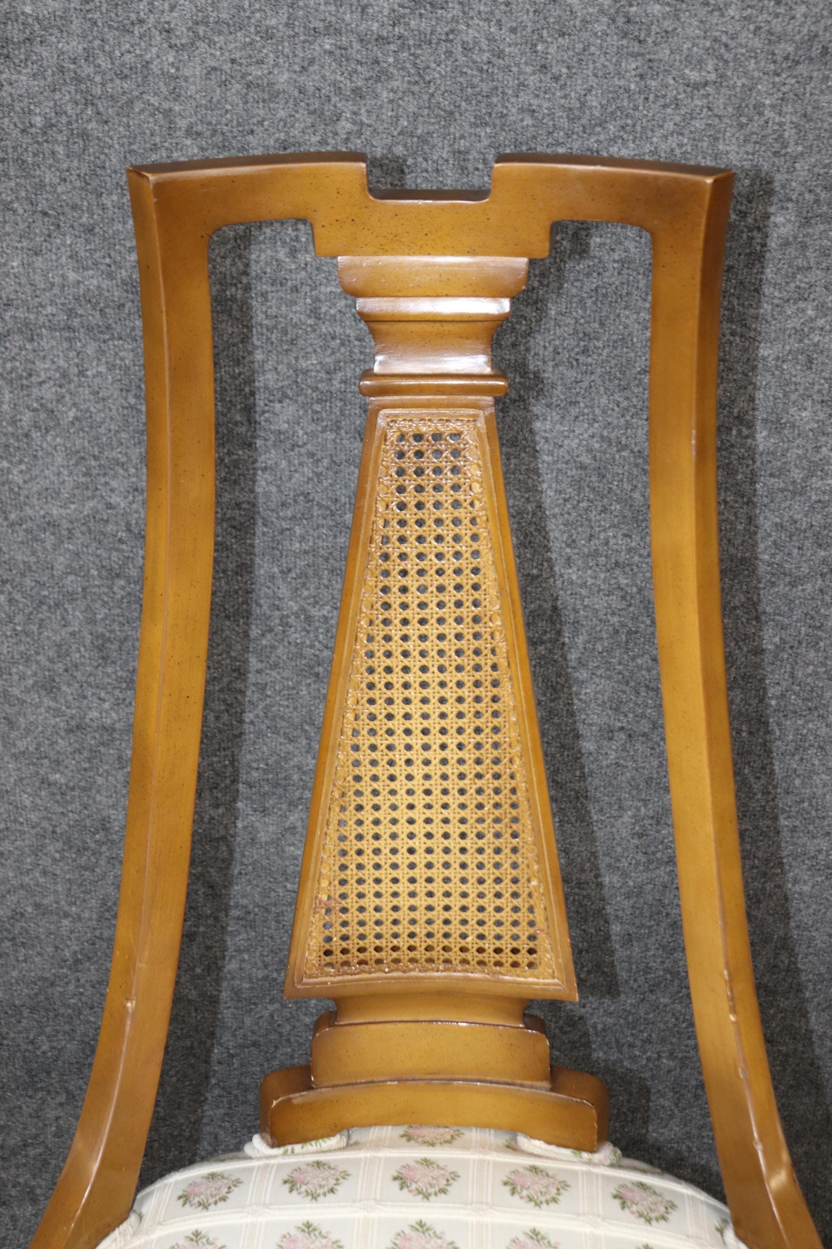 Elevate your space with this stunning vintage mid-century Directoire style cane back chair, perfect as a side chair, occasional chair, or desk chair. Crafted with exceptional quality and classic French-inspired design, this piece features a refined silhouette, intricate cane backing, and sophisticated upholstery that adds a touch of timeless elegance.