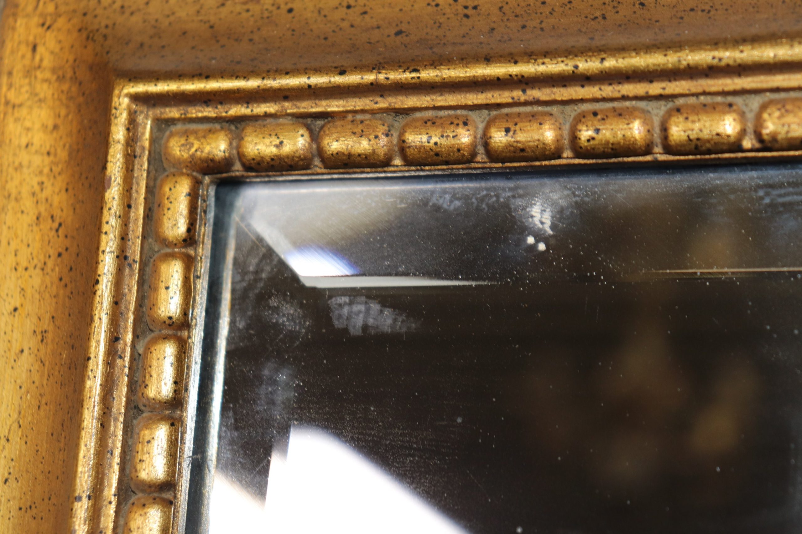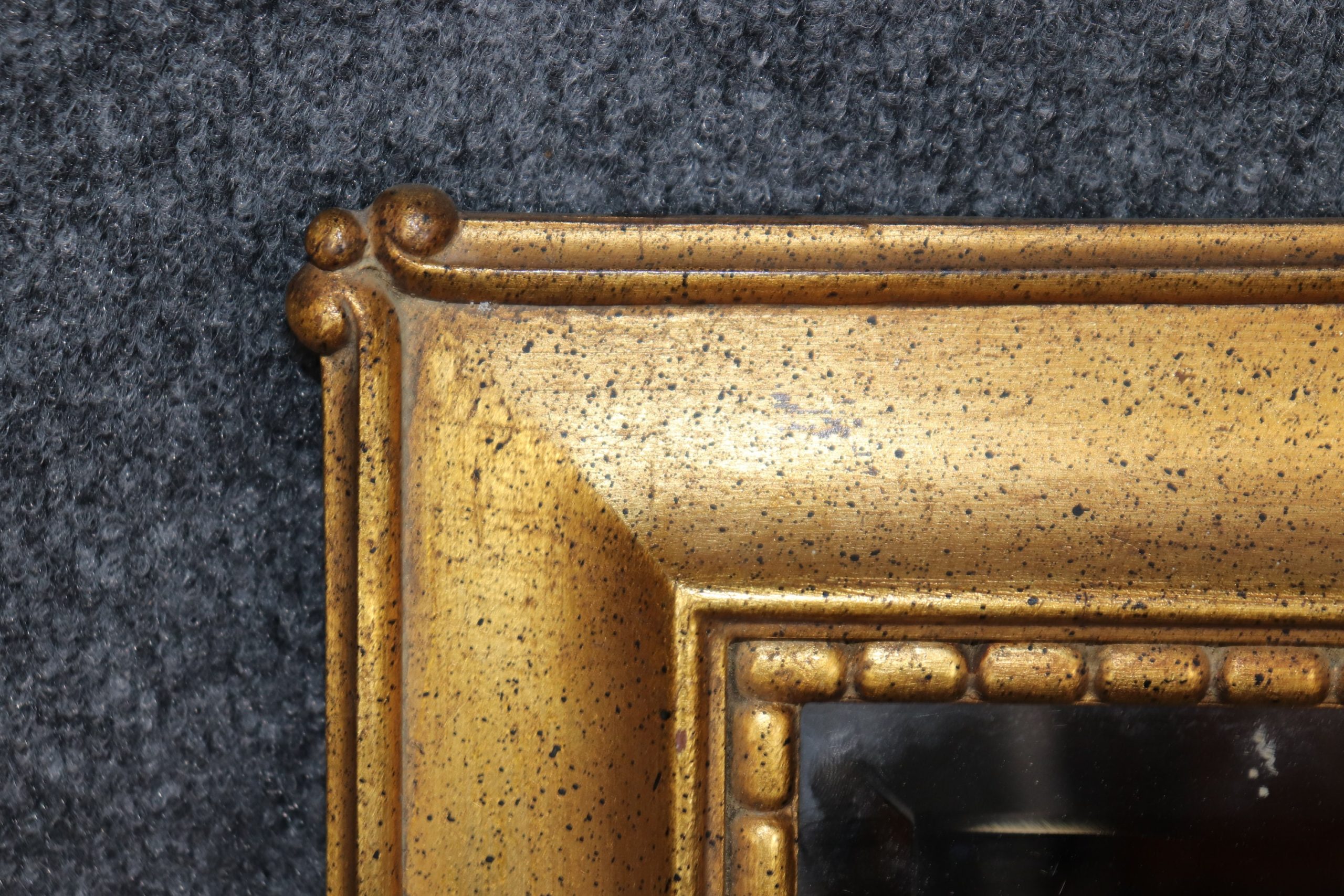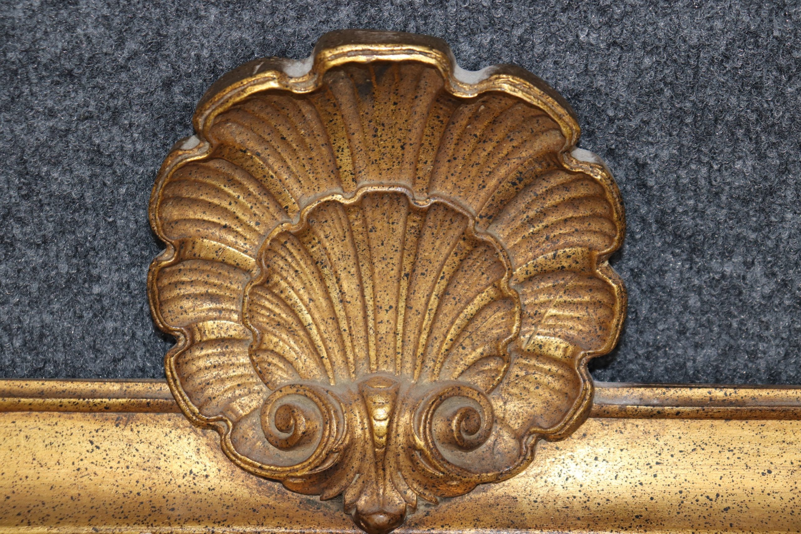 This vintage Regency style shell form motif distressed gold wall hanging mirro by Friedman Brothers is truly a show stopper! If you look at the photos provided, you will see the beveled mirror panel which is an indicator that this mirror was made with quality in mind! This piece is perfect for any bedroom, living room, entryway, hallway or bathroom and is bound to bring a sense of luxury and elegance into your home and will certainly be a topic of conversation at your next gathering or event! Friedman Brothers have been around since 1903 and specialize in making some of the highest quality mirrors of the 20th and 21st century! Antique furniture and vintage pieces have stood the test of time and this mirror is no exception! With its quality materials and great craftsmanship this piece is bound to last you and your family for many years to come. This mirror is in good vintage condition with the exception of some light surface scratches and minor finish loss as to be expected with items of age and use. Otherwise good condition