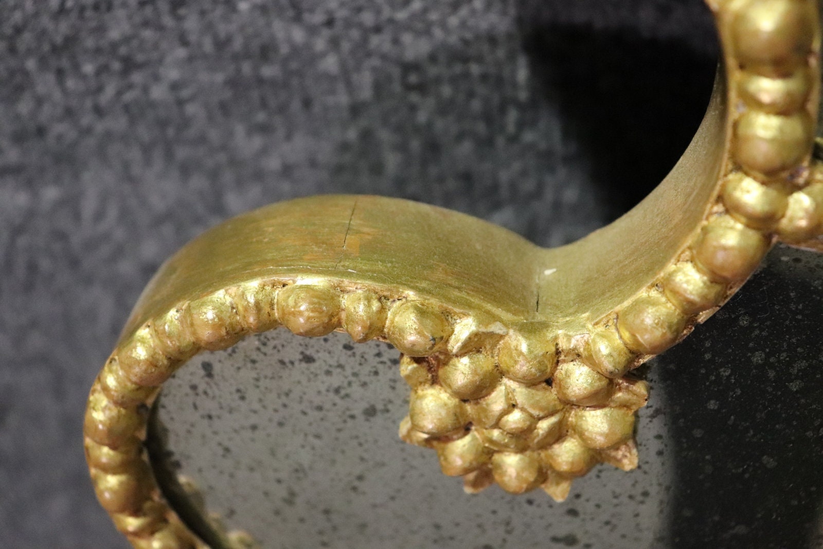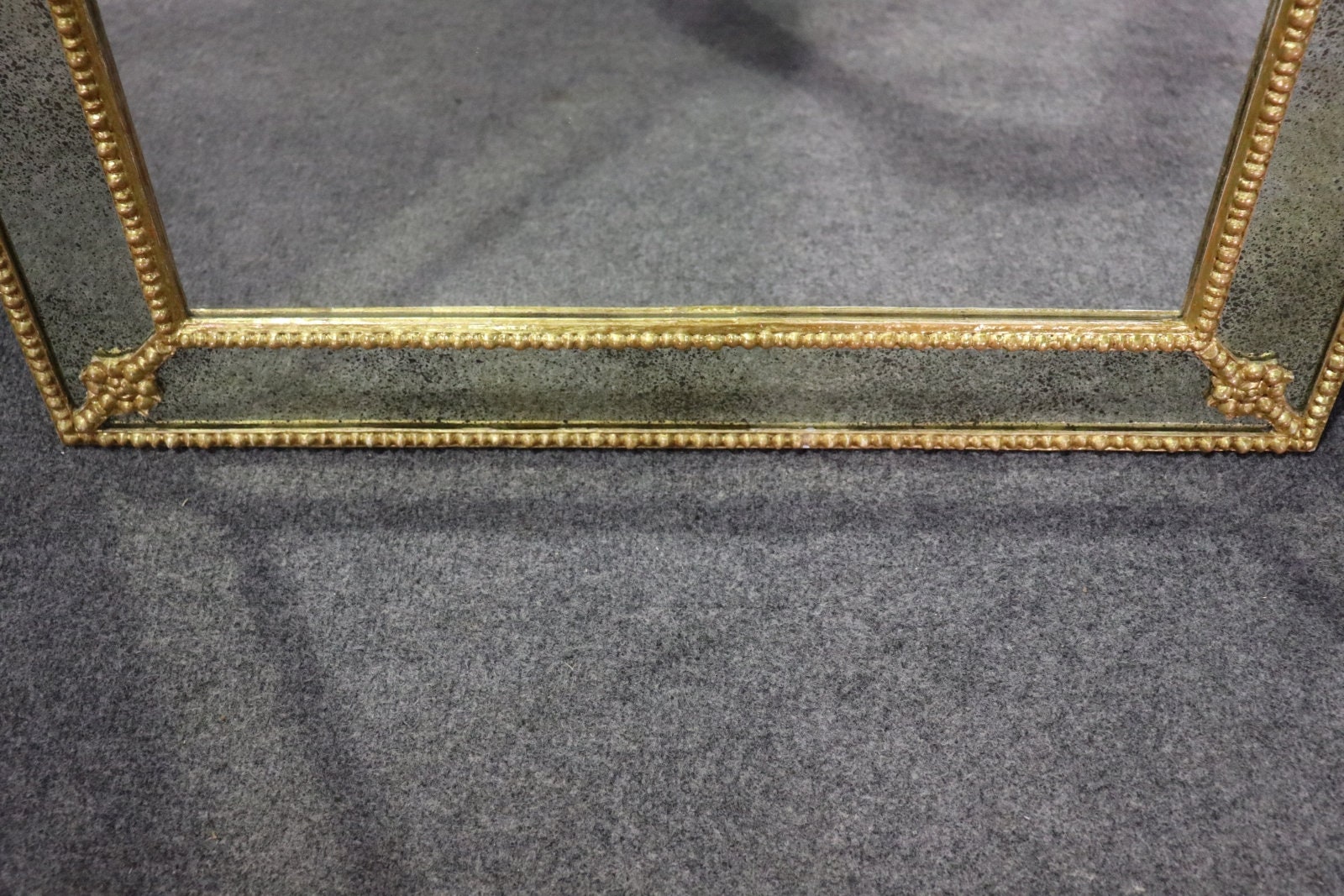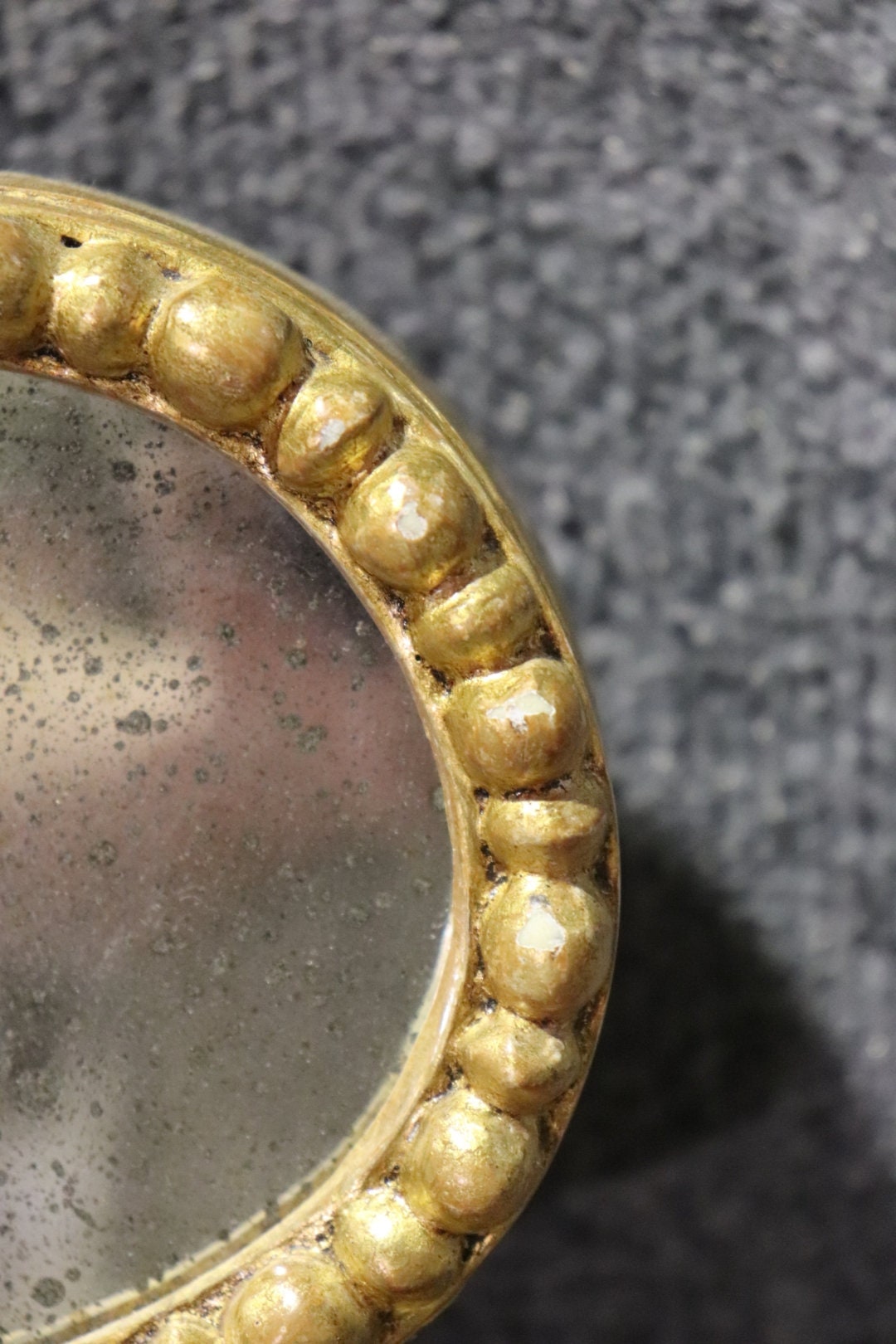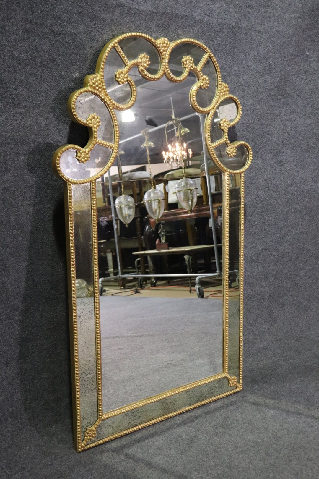 This vintage Hollywood Regency style gilt hanging wall mirror is made of the highest quality and is perfect if you are looking for a mirror with class and elegance! If you look at the photos provided, you can see the eglomise trim adorning the mirror. This piece will certainly be a conversation starter at your next gathering or event and will have your guests mesmerized by its attention to detail and elegance! This will be perfect in your entryway, living room, dining room, office, bedroom, bathroom or place of your choosing! The mirror is in good vintage condition with some minor finish loss, but otherwise good condition.
