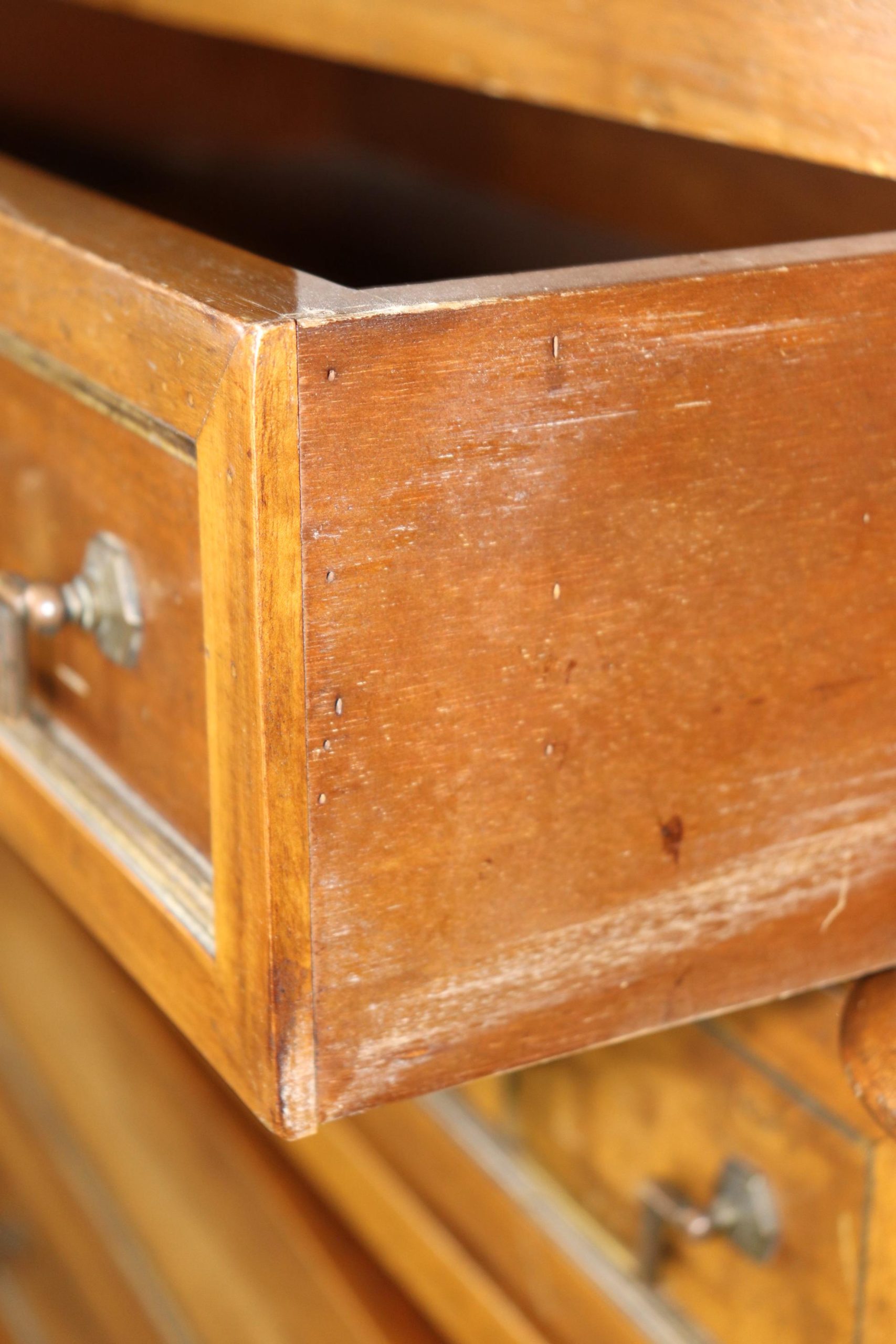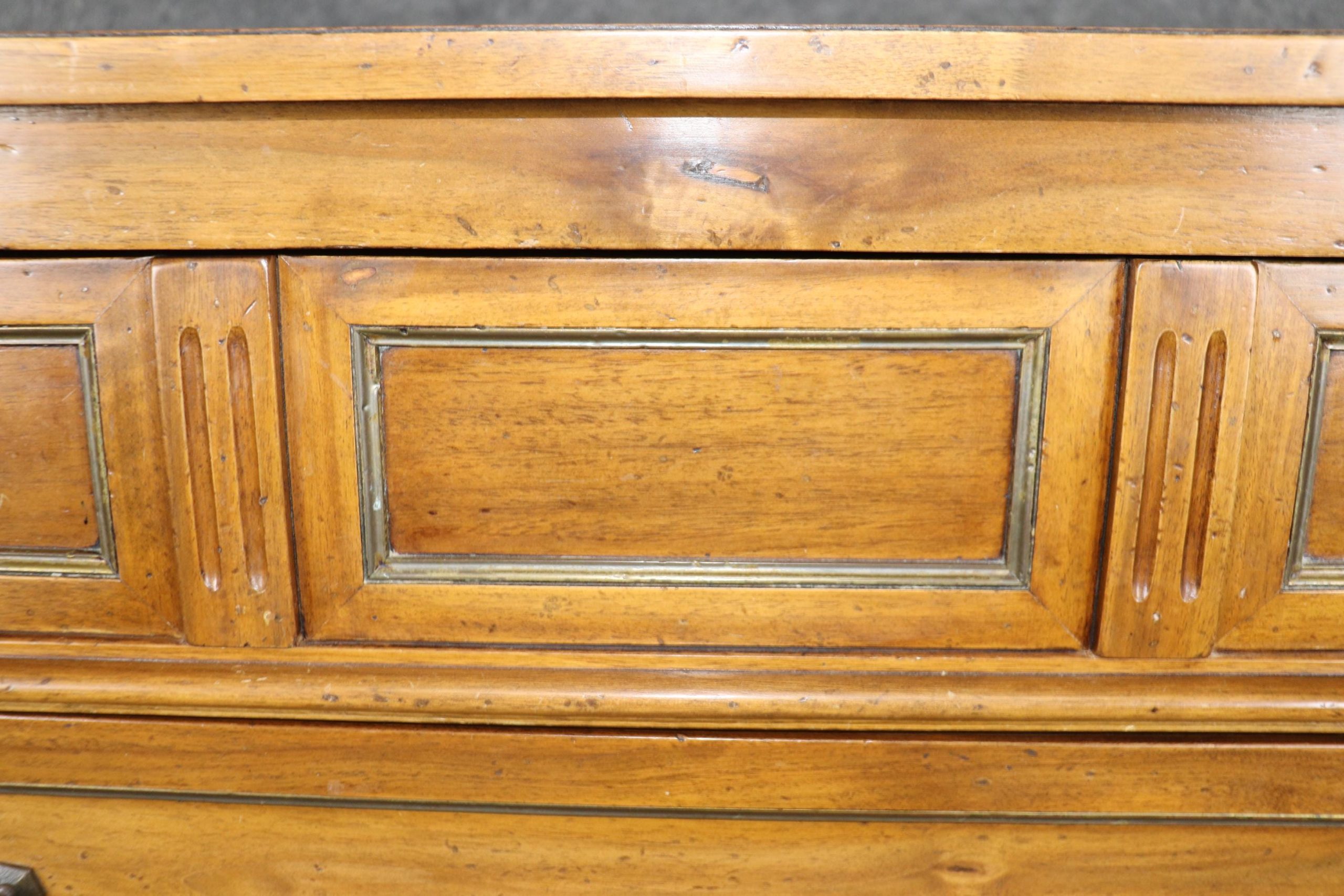 This vintage Italian Louis XVI style high chest dresser by B. Altman & Co. is made of the highest quality! This piece is perfect for any living room, bedroom, office, or large bathroom. The 7 spacious drawers are perfect for storing your personal belongings all while bringing a sense of luxury and class into your home! We can tell the piece is of high quality due to the hand crafted dovetailed drawers as well as the fine cast brass hardware. This piece is bound to bring a sense of character into your home or place of choosing, and will surely have your guests mesmerized by its attention to detail. Antique furniture and vintage pieces have stood the test of time and this high chest is no exception! With its quality materials and great craftsmanship this piece is bound to last you and your family for many years to come. The high chest is in vintage condition with normal age related chips, finish losses and wear as to be expected with an antique/vintage item.