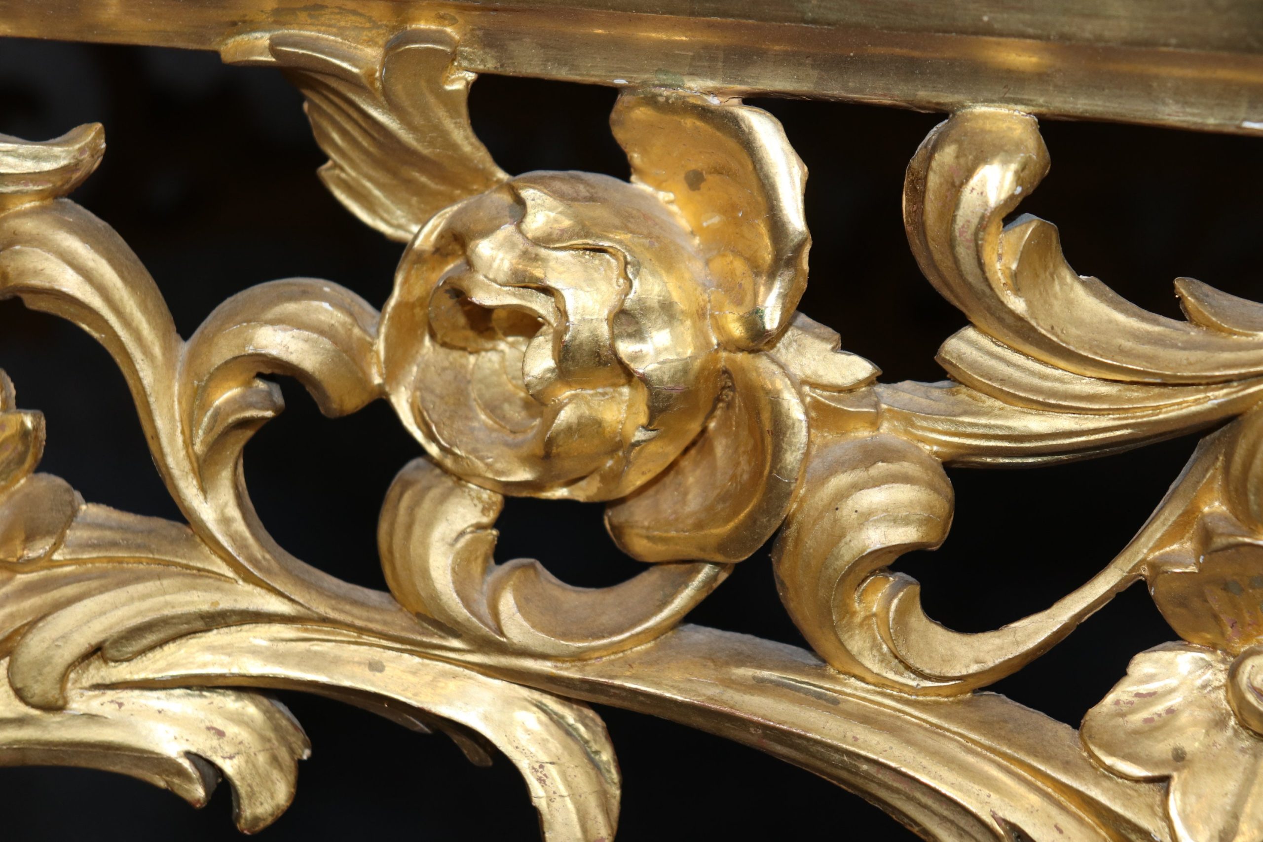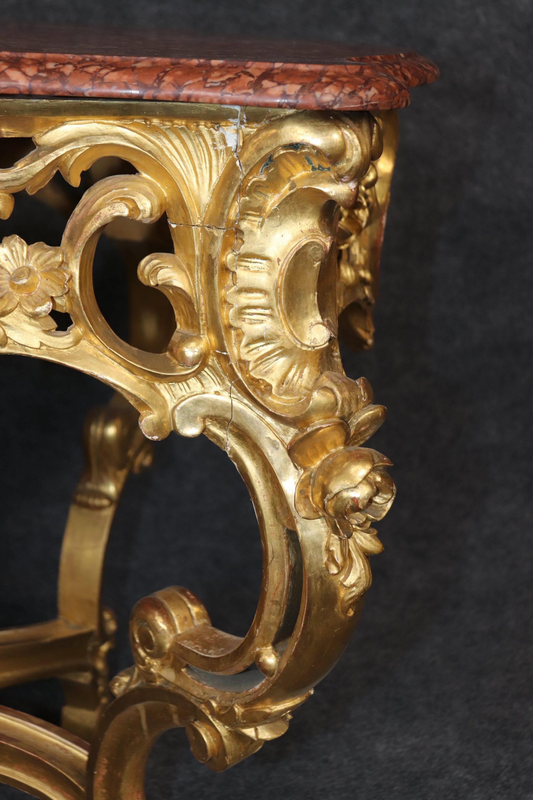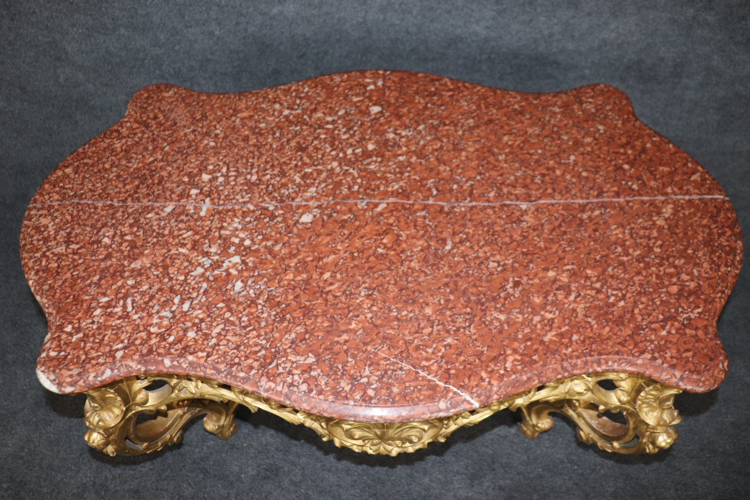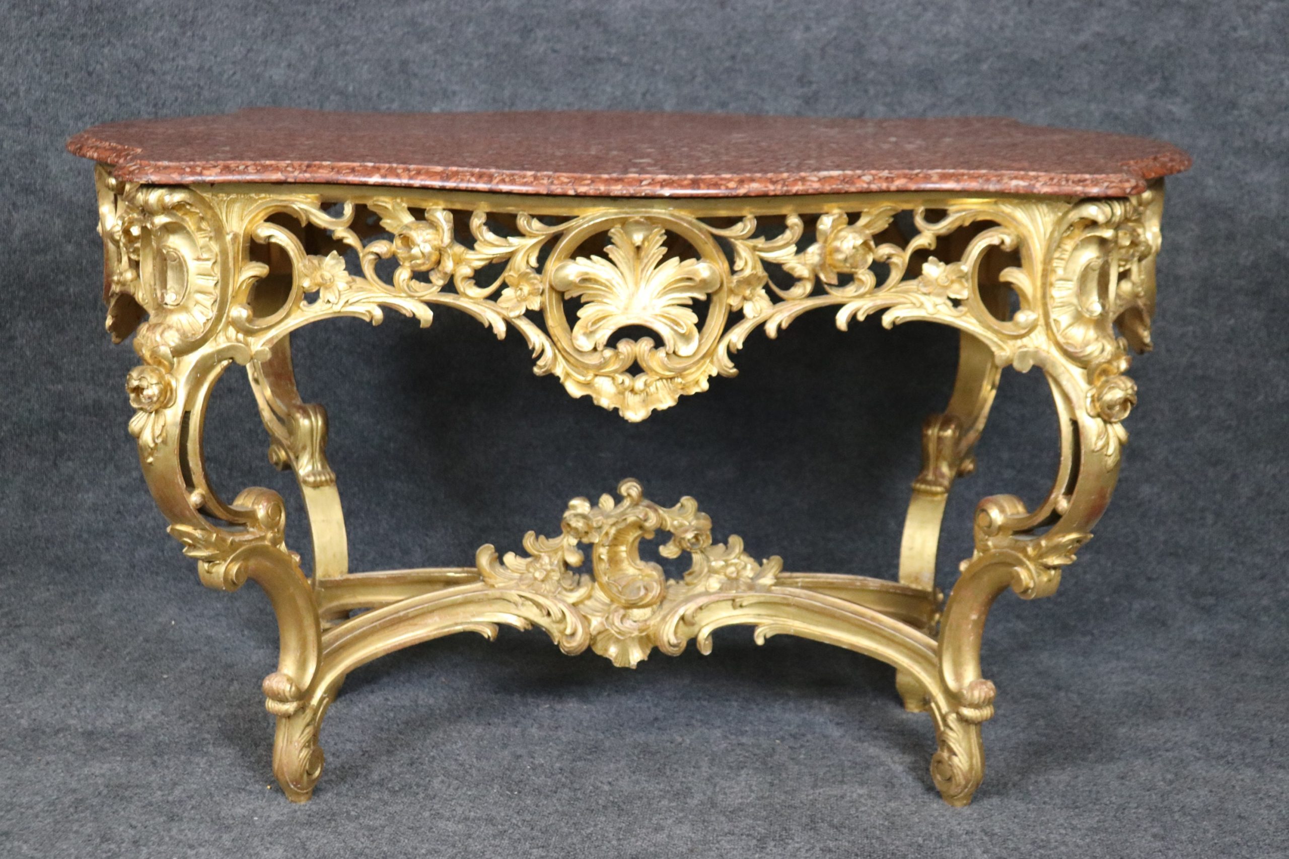 This carved Italian Rococo center table is truly incredible and is made of the highest quality! If you look at the photos provided, you will see the beautiful marble on the carved gold gilt frame. This piece screams elegance and luxury and detail was the only thing on the makers mind! The center table is a piece that will without a doubt be a conversation starter and will have your guests wondering how you acquired such a beautiful item! This piece is perfect for any kitchen, dining room, office, or entryway and can be paired with a variety of other styles! This is not a table you want this is the kind of table that you need. The table is in good vintage condition with minor surface scratches to the marble and base as well as some very minor finish loss as to be expected with an item with this age.