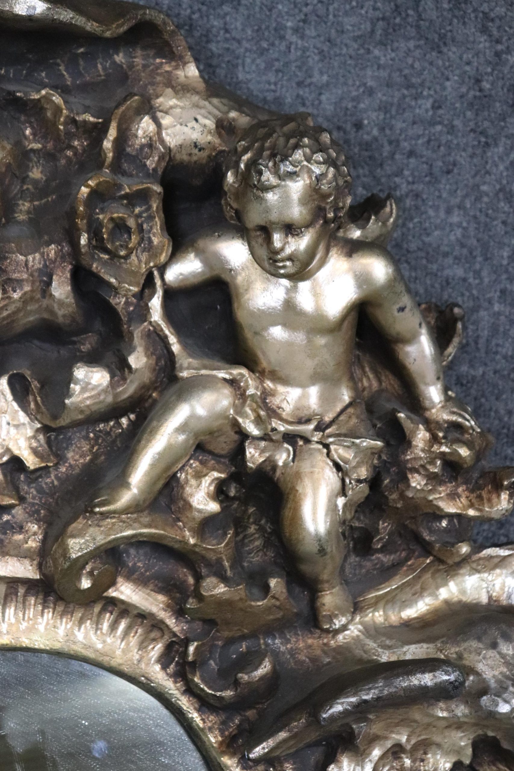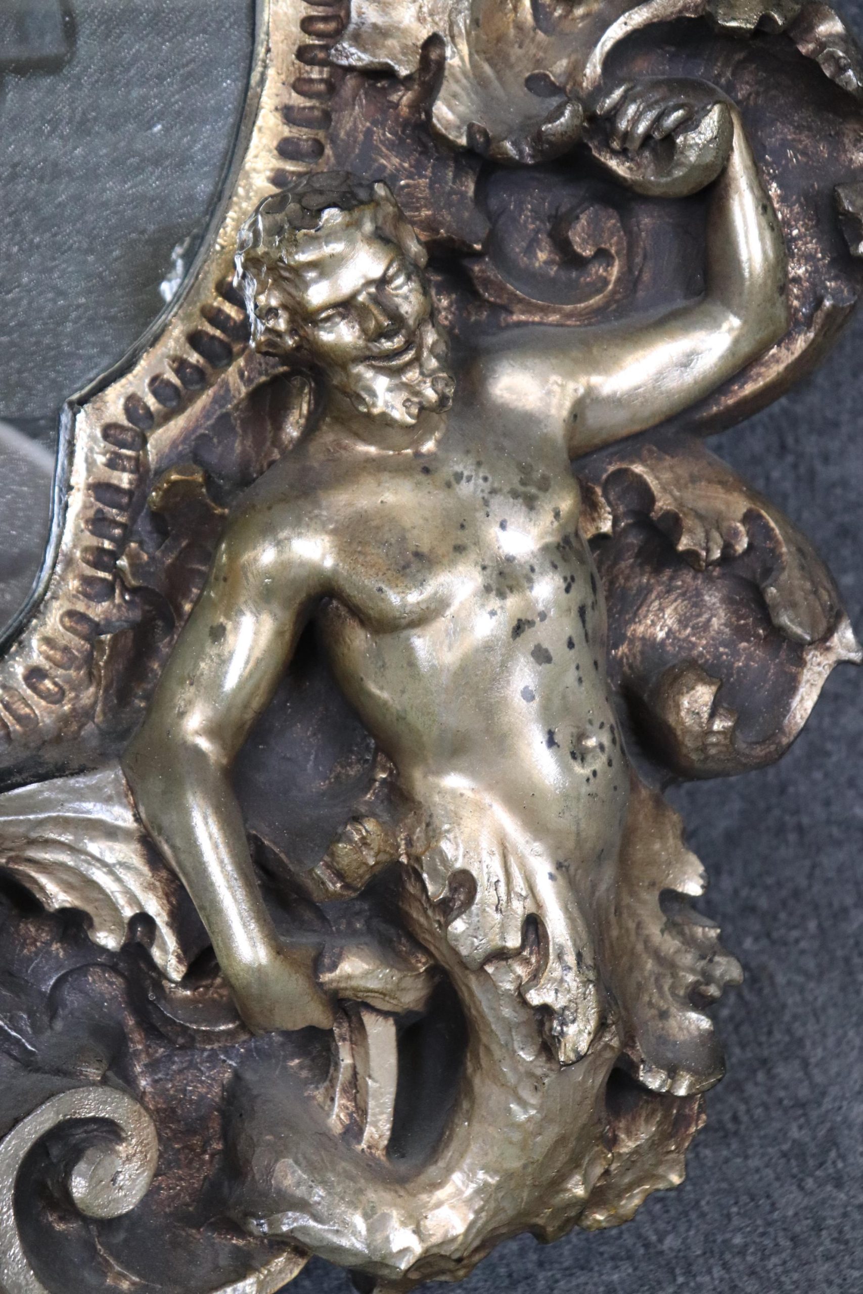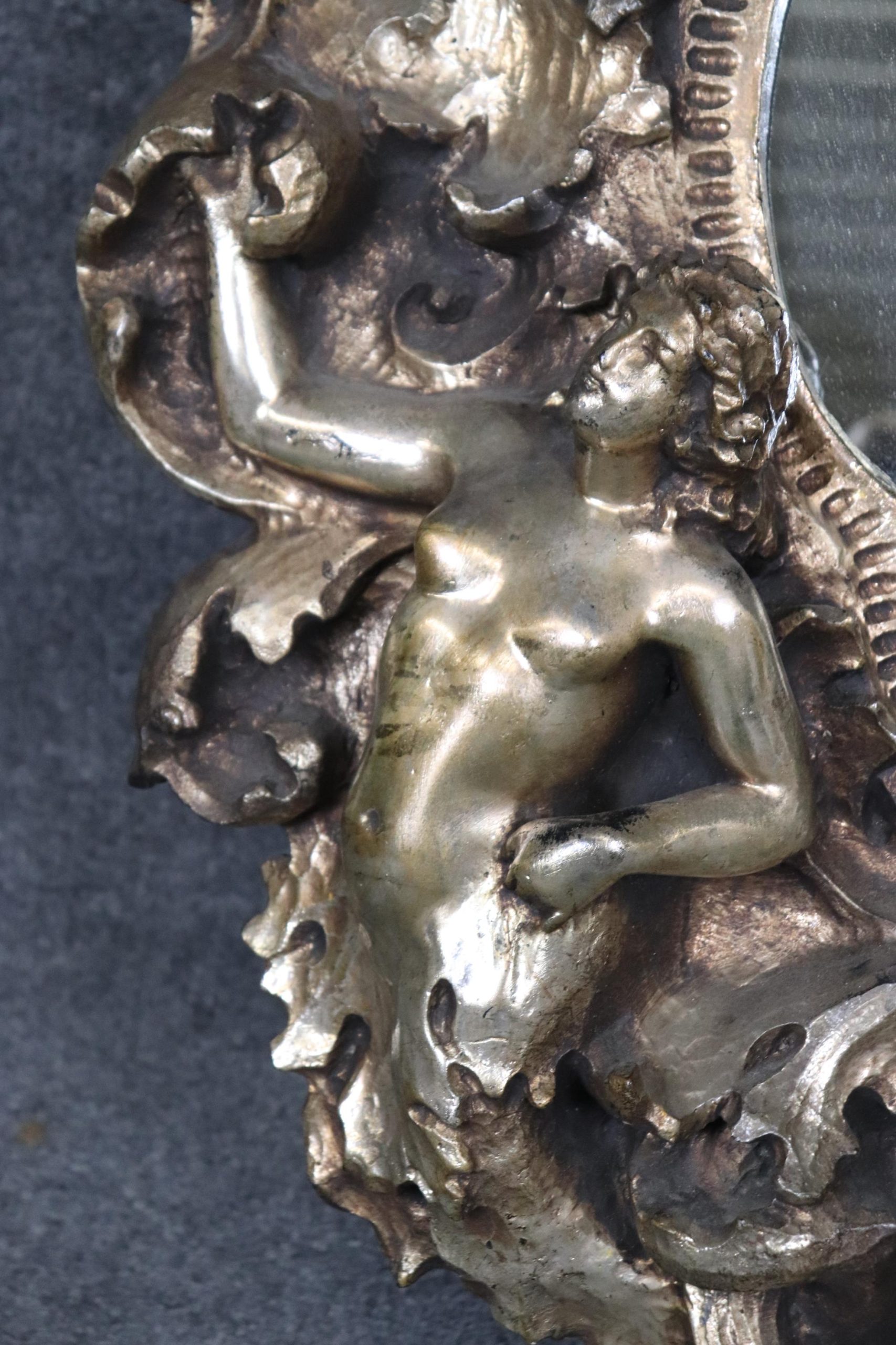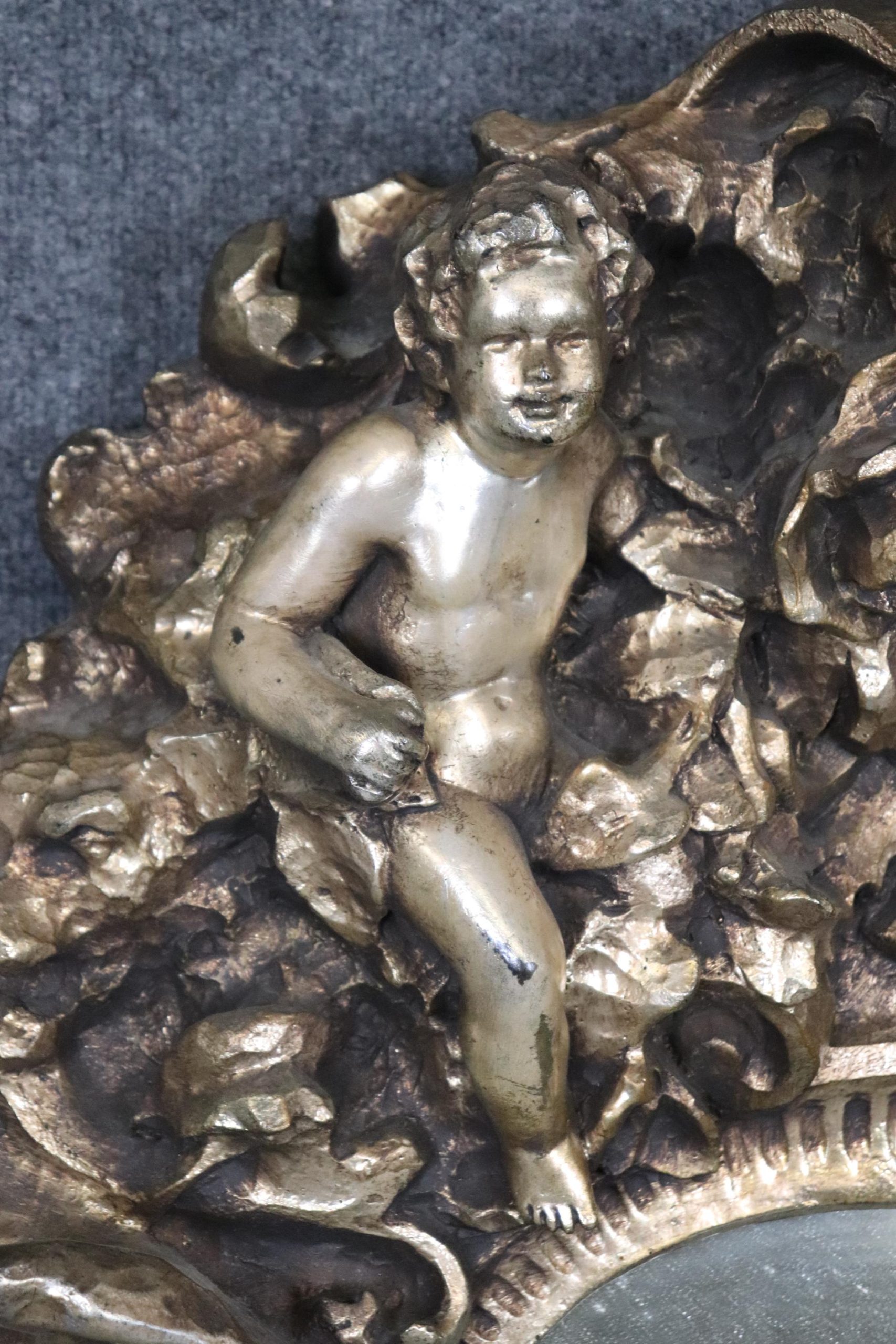 This vintage Italian Rococo style silver gilt carved figural accent wall hanging mirror is truly a luxurious piece that will bring a sense of luxury and character into your home or place of choosing! If you look at the photos provided, you will see the beautifully carved silver gilt frame. This mirror is perfect for any living room, entryway, bathroom, or bedroom and can be paired with a variety of other styles you may already have in your home! The mirror is in good vintage condition with light surface scratches and minor chips. The mirror is in great condition considering age and has no significant imperfections to note.