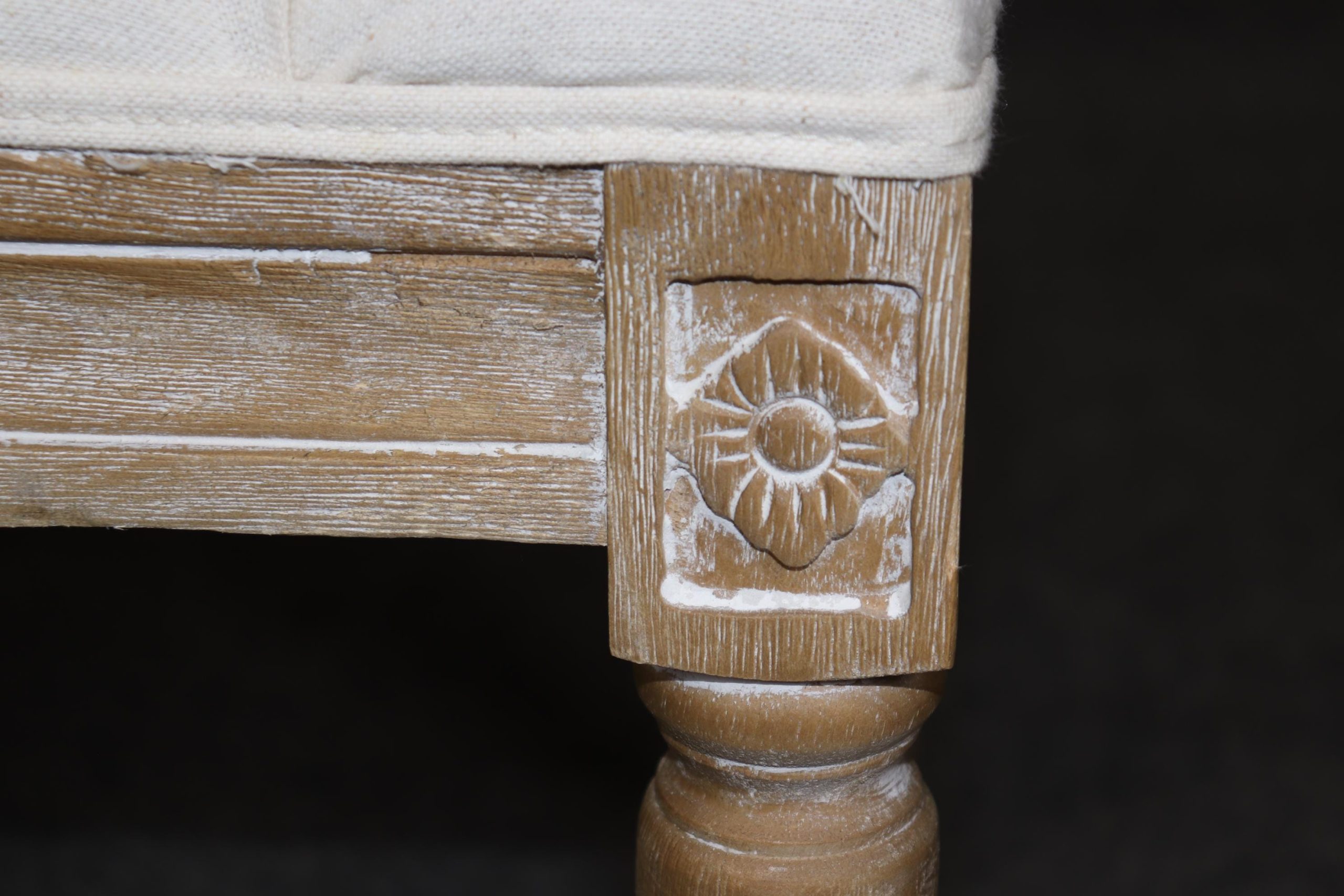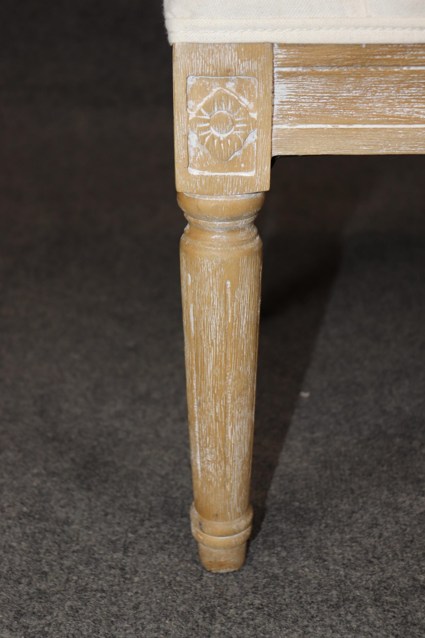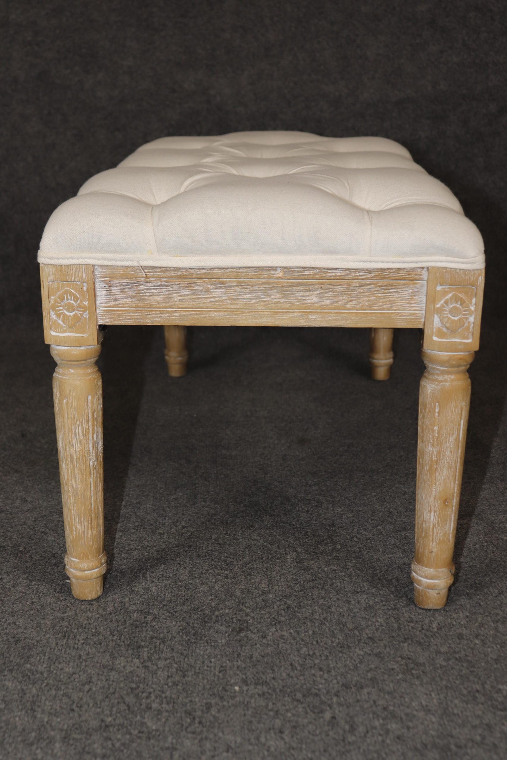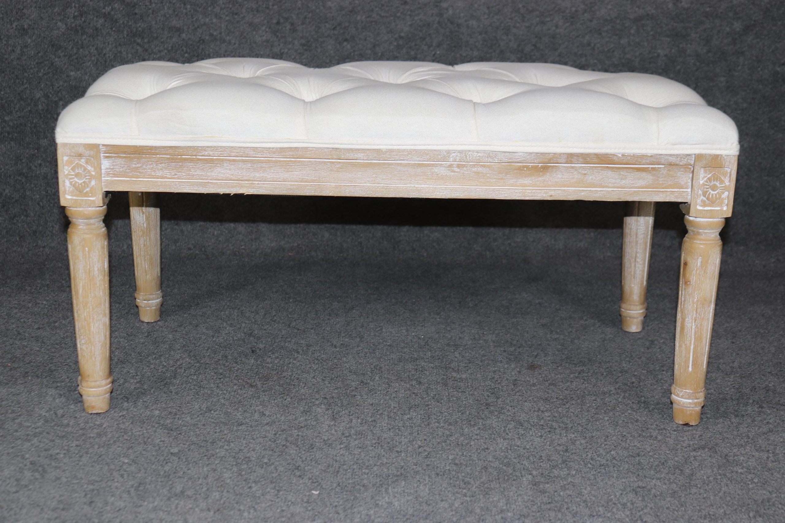 This Louis XVI style upholstered bench is made of the highest quality! If you look at the photos provided, you will see the luxurious tufted upholstery. This piece is perfect for any living room, bedroom, hallway, entryway or office and is bound to bring a refreshing sense of minimalistic luxury and character into your home! Antique furniture and vintage pieces have stood the test of time and this bench is no exception! With its quality materials and great craftsmanship this piece is bound to last you and your family for many years to come. This piece is in good vintage condition with the exception of light surface scratches and some finish loss as to be expected with items of age and use. The upholstery appears to be in good condition but may have some minor wear.