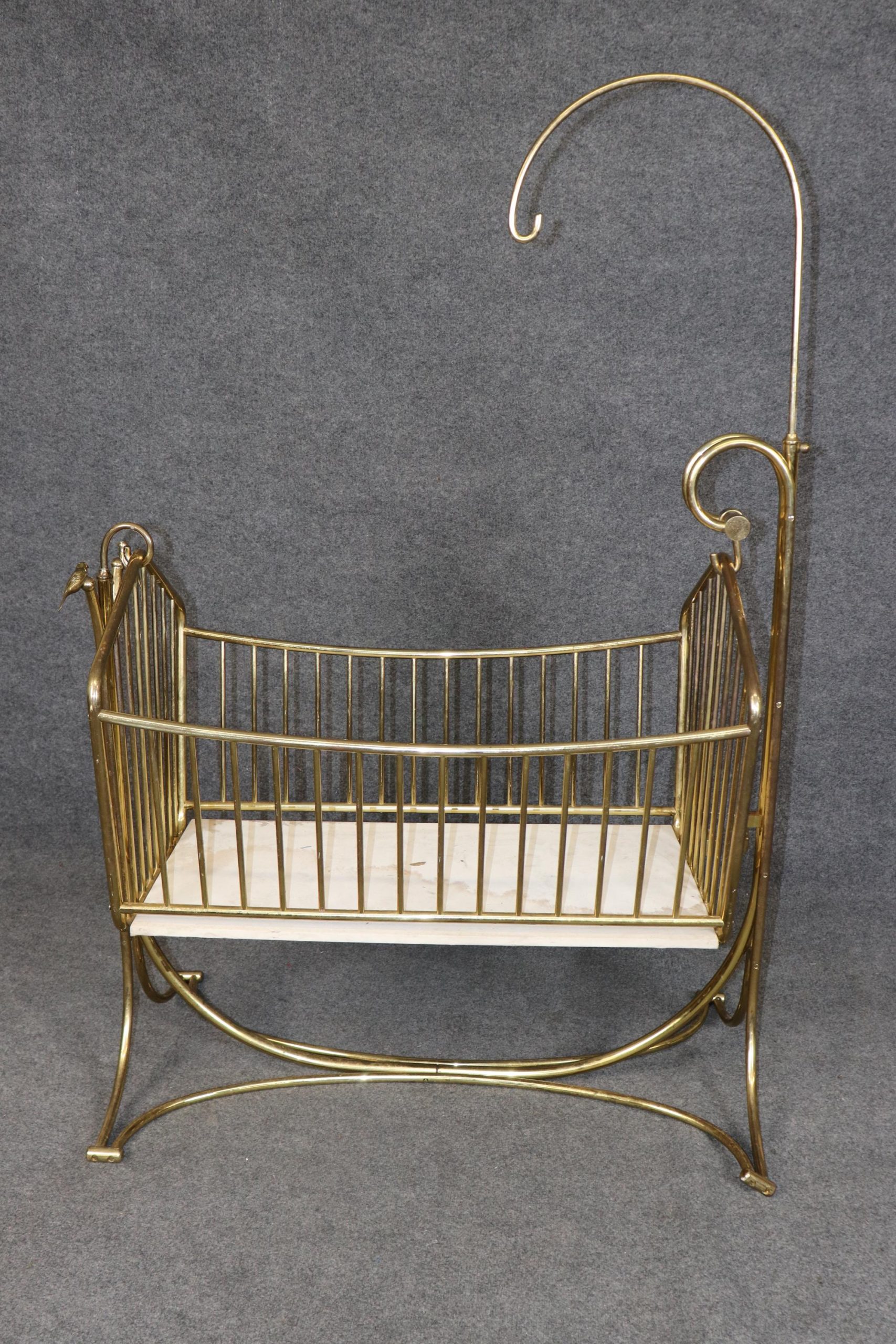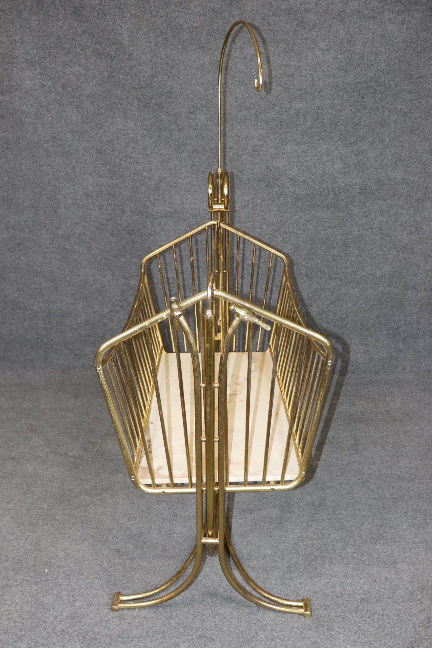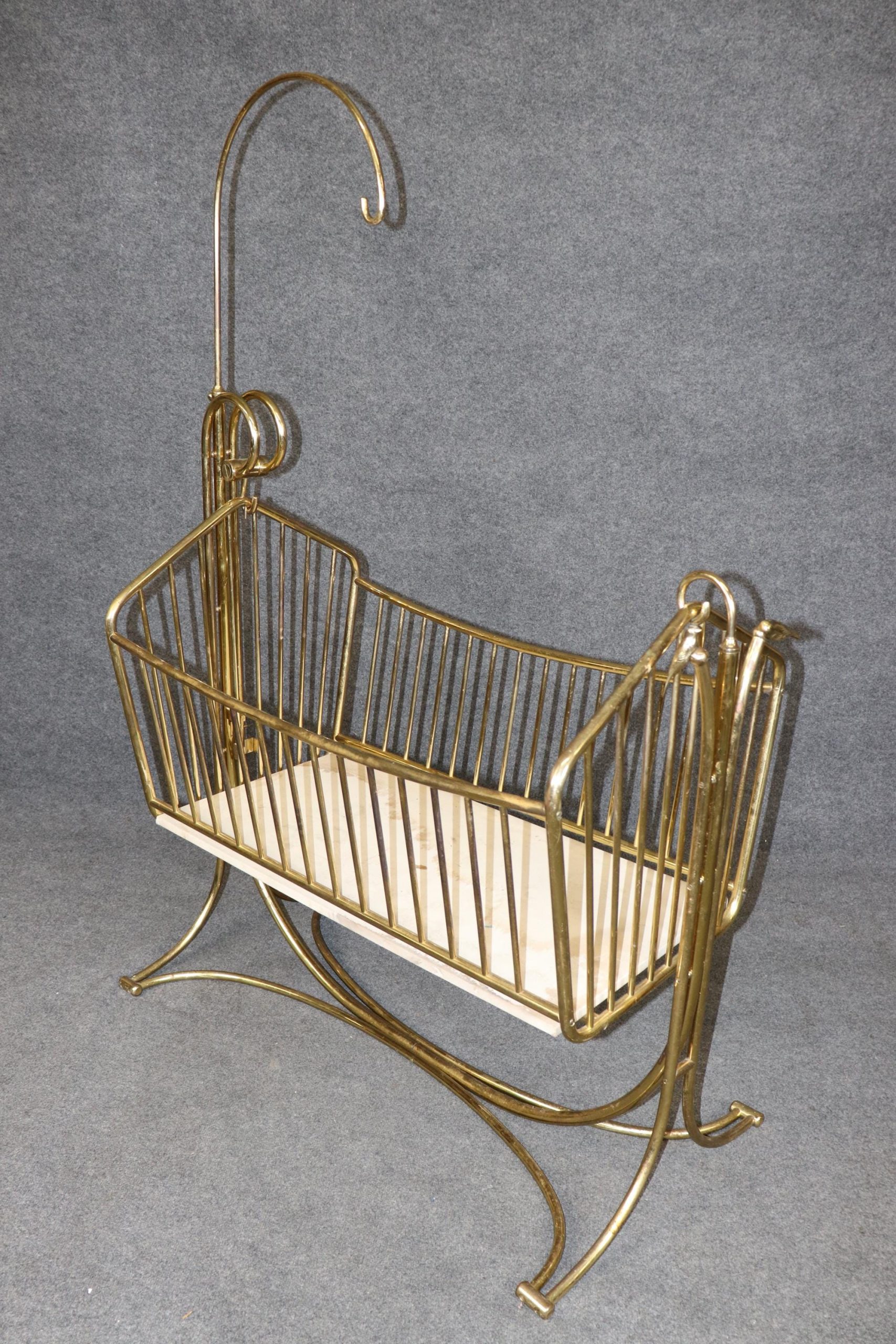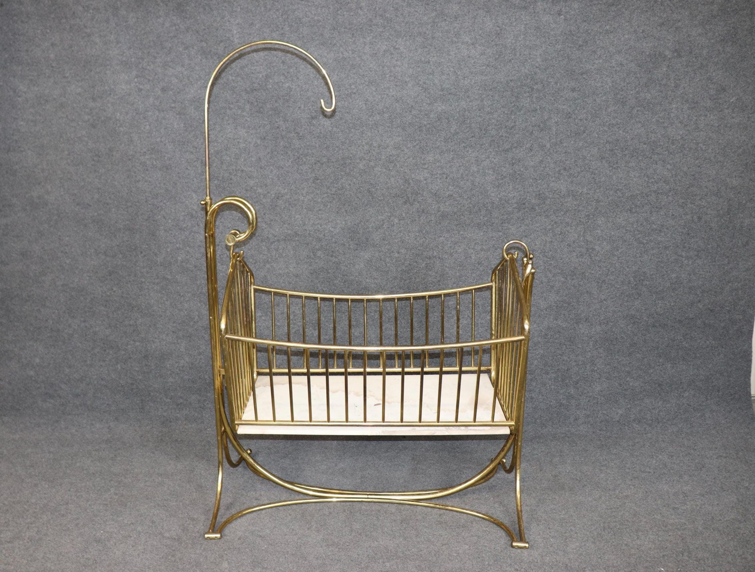Vintage Mid Century Hollywood Regency Style Brass Baby Carriage, Crib