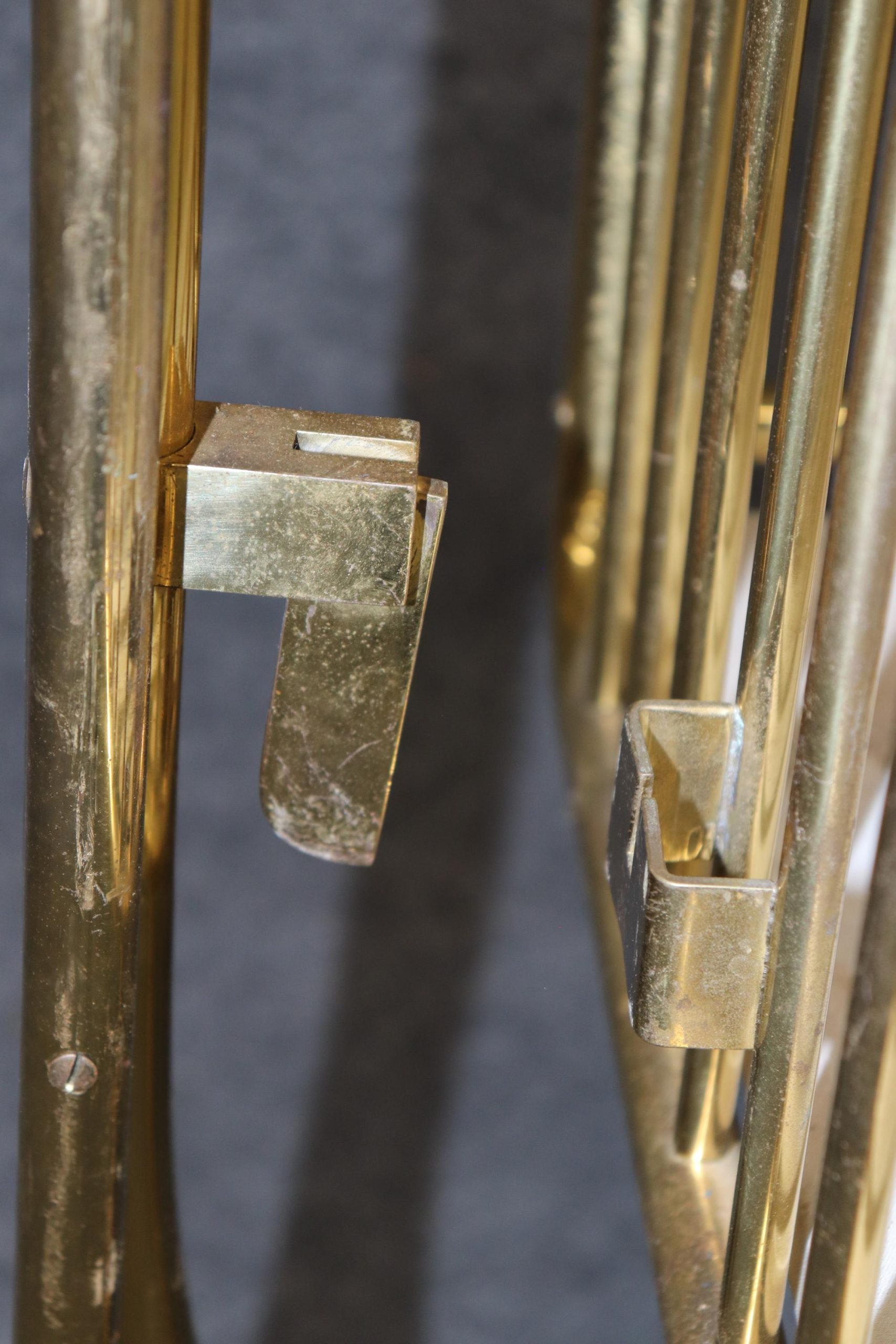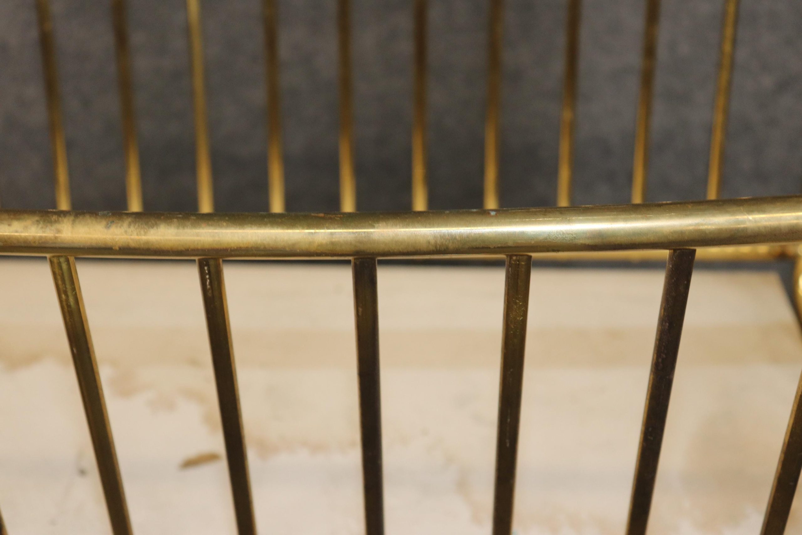 This vintage Mid Century Hollywood Regency style brass baby carriage is made of the highest quality! If you look at the photos provided, you can see the attention to detail throughout the piece. This would be perfect to be used as a display for your antique doll collection! Antique furniture and vintage pieces have stood the test of time and this carriage is no exception! With its quality materials and great craftsmanship, this is bound to last you and your family for many years to come! The carriage is in good condition with surface scratches and some oxidation as should be expected with items of this age. Otherwise good condition.