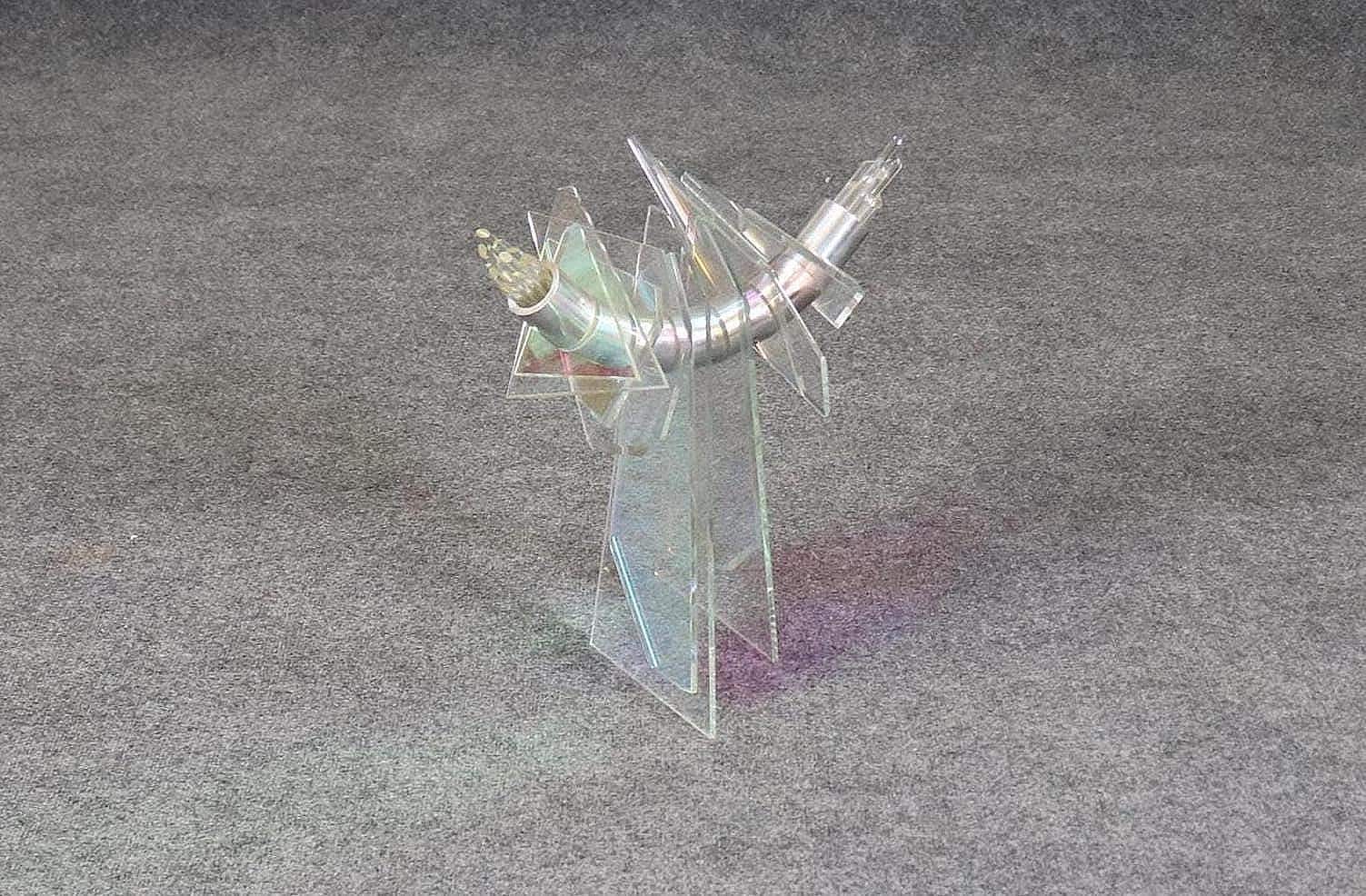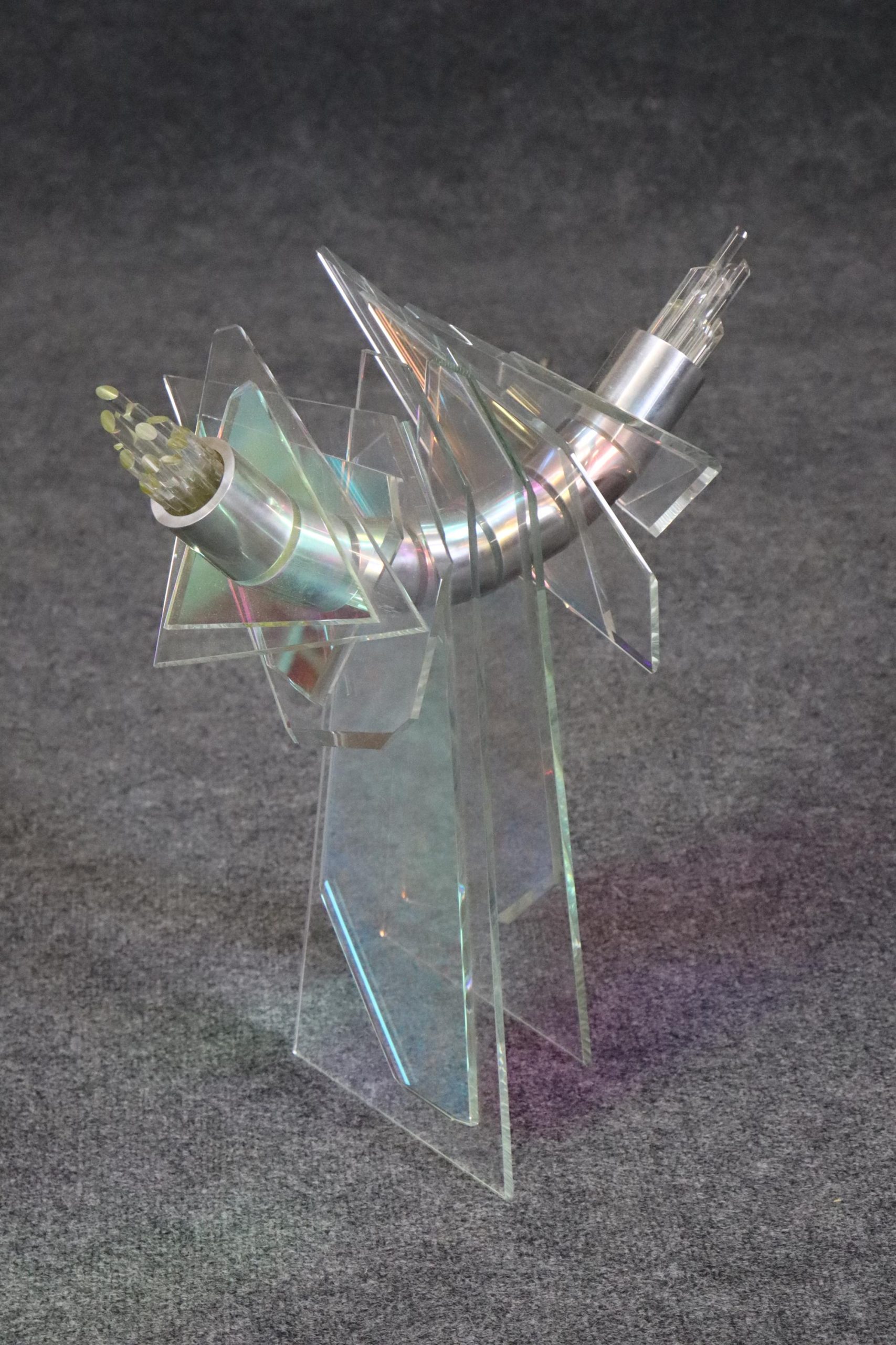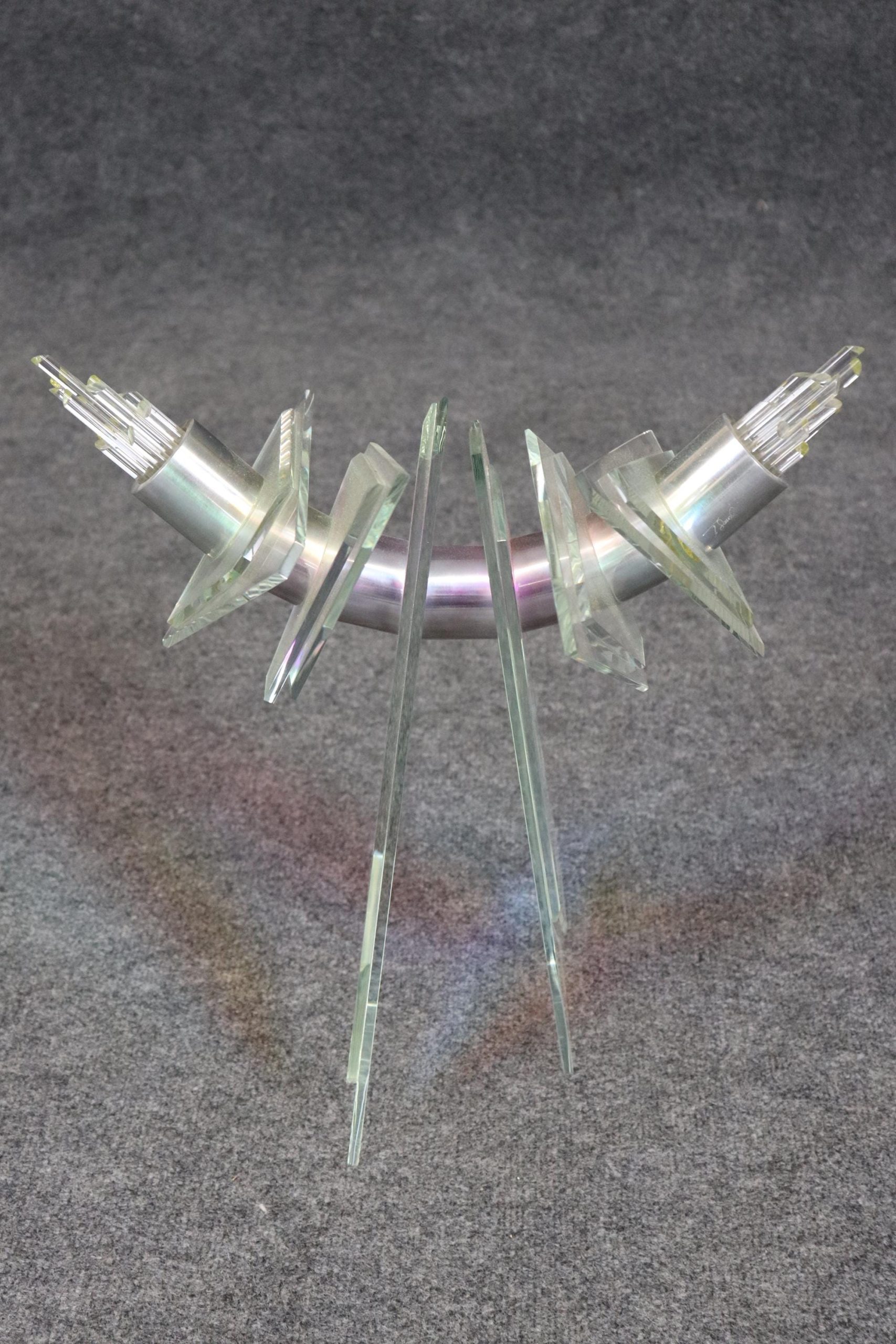 This vintage unique Mid Century Modern free form sculpture made of art glass, lucite and metal is perfect for you and your home! If you look at the photos provided, you can see the piece puts out a pearlescent effect. This will be a conversation starter in any MCM home or office and is bound to bring a sense of character and luxury into your place of choosing! This piece is perfect for your living room, office, entryway or any place of your choosing! The sculpture is in good condition with minor scuffs as to be expected with a vintage item.