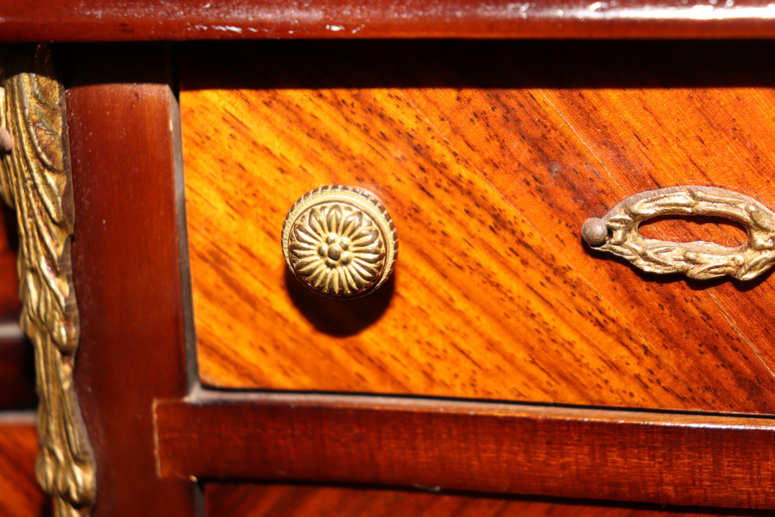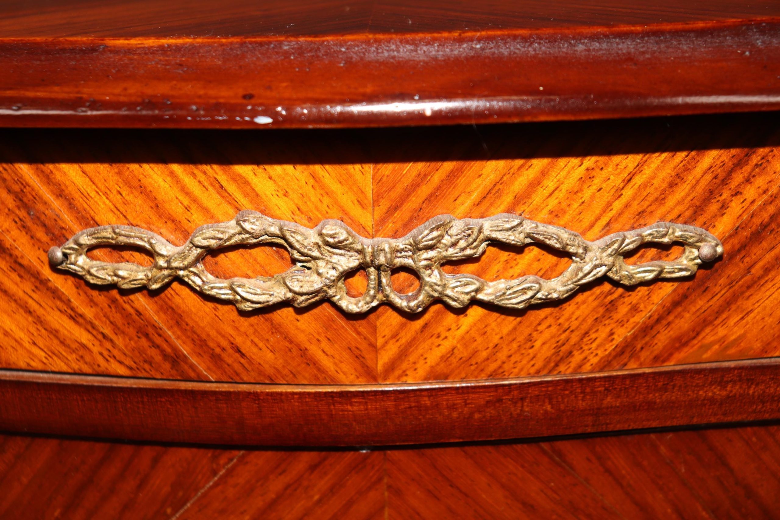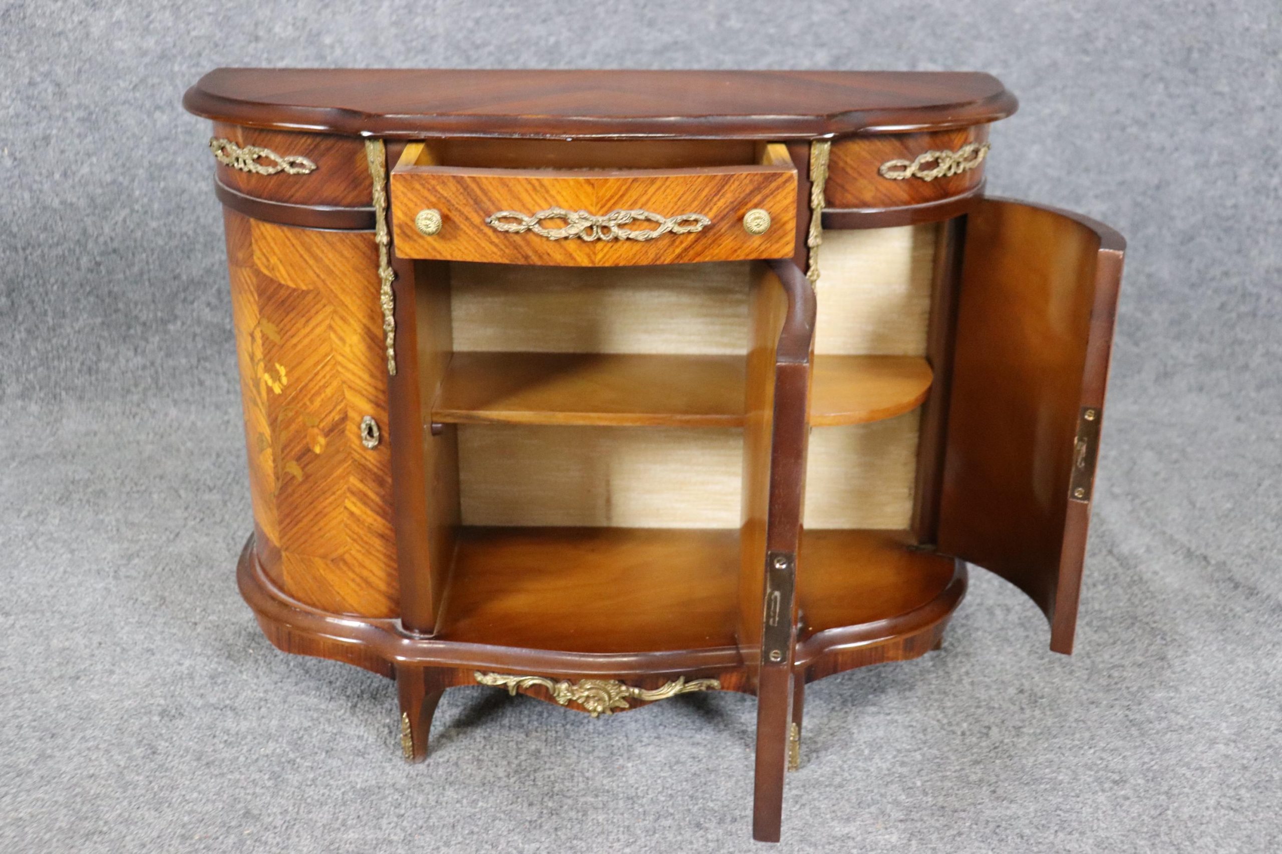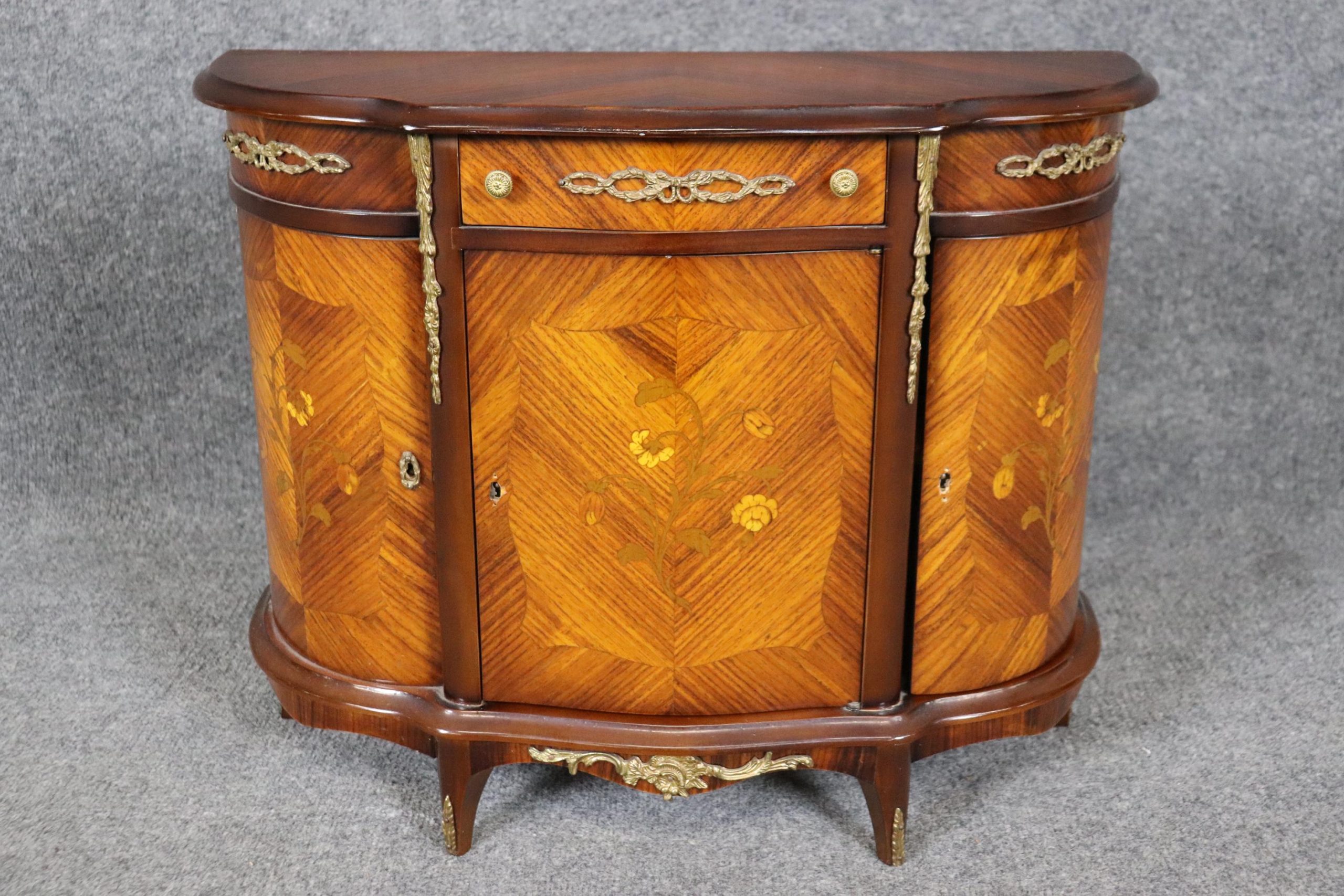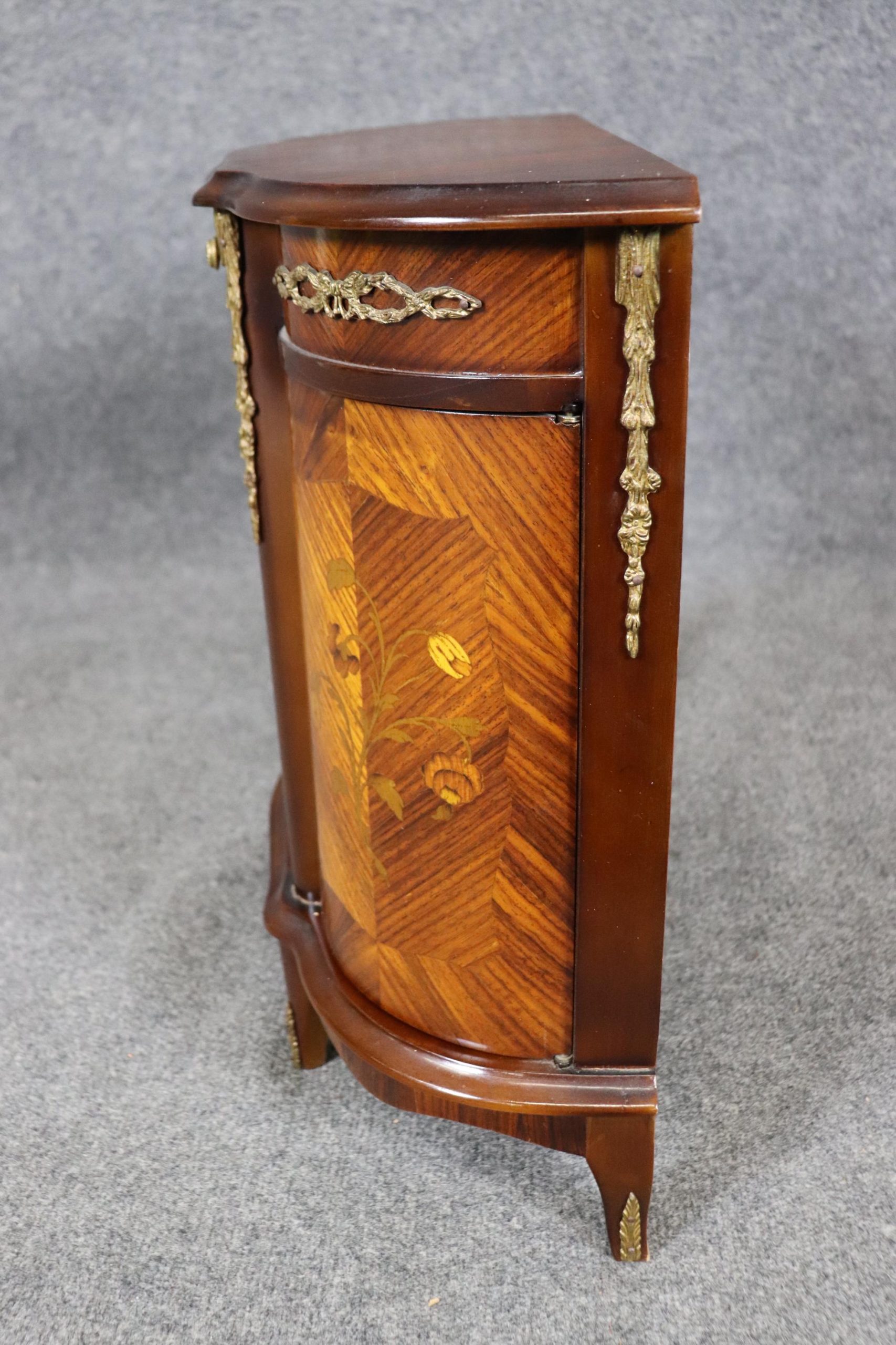 This beautiful vintage miniature Louis XV style brass mounted commode is made of the highest quality and is super rare! Made in the 1950s, this was most likely a salesman’s sample. This has a drawer as well as 3 doors that open to a spacious storage area that is perfect for storing your small items and keeping them out of reach. If you look at the pictures provided, you can see the detail in the inlay and bronze mounts. This would make a wonderful addition to your bedroom, office, or any other room of your choosing and is bound to bring a sense of character and creativity!