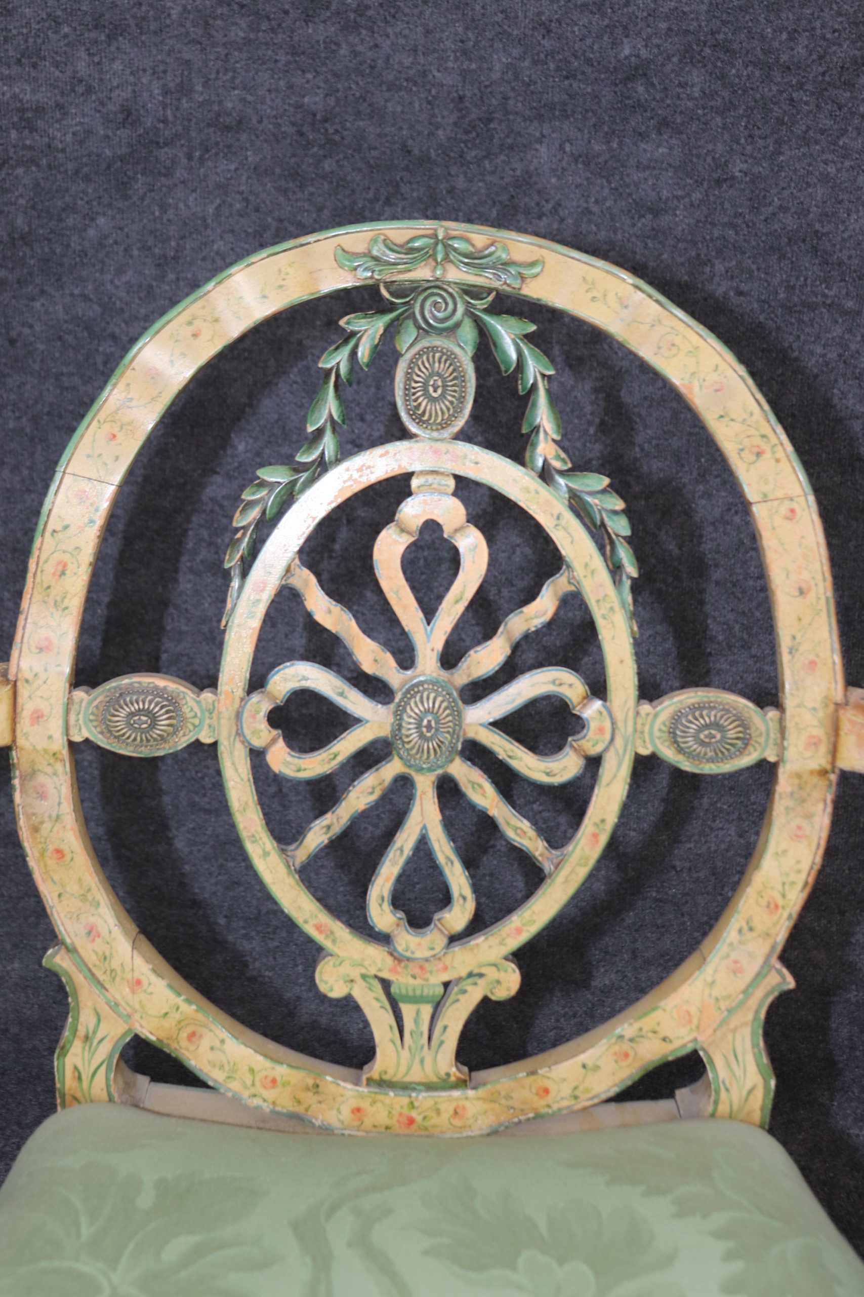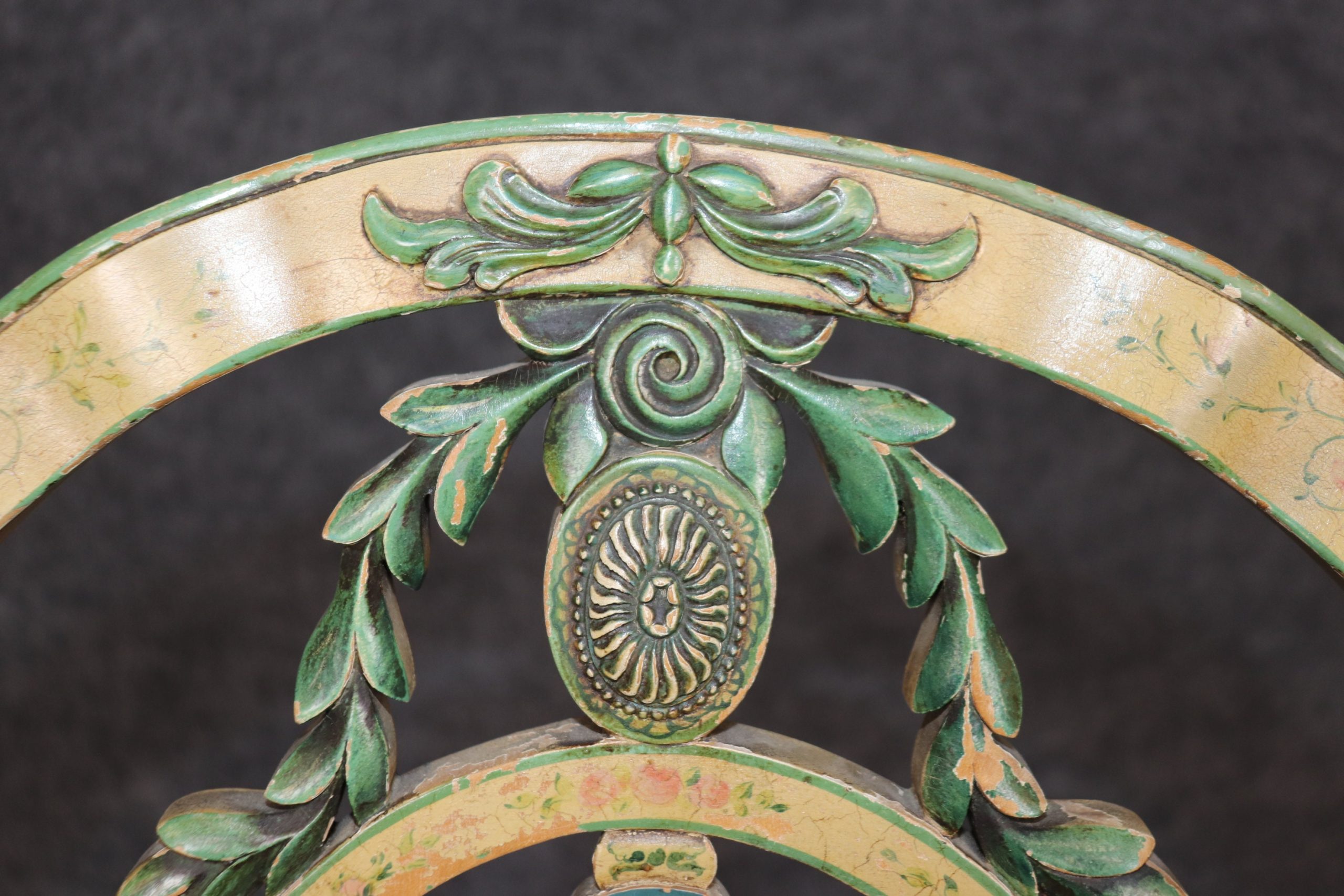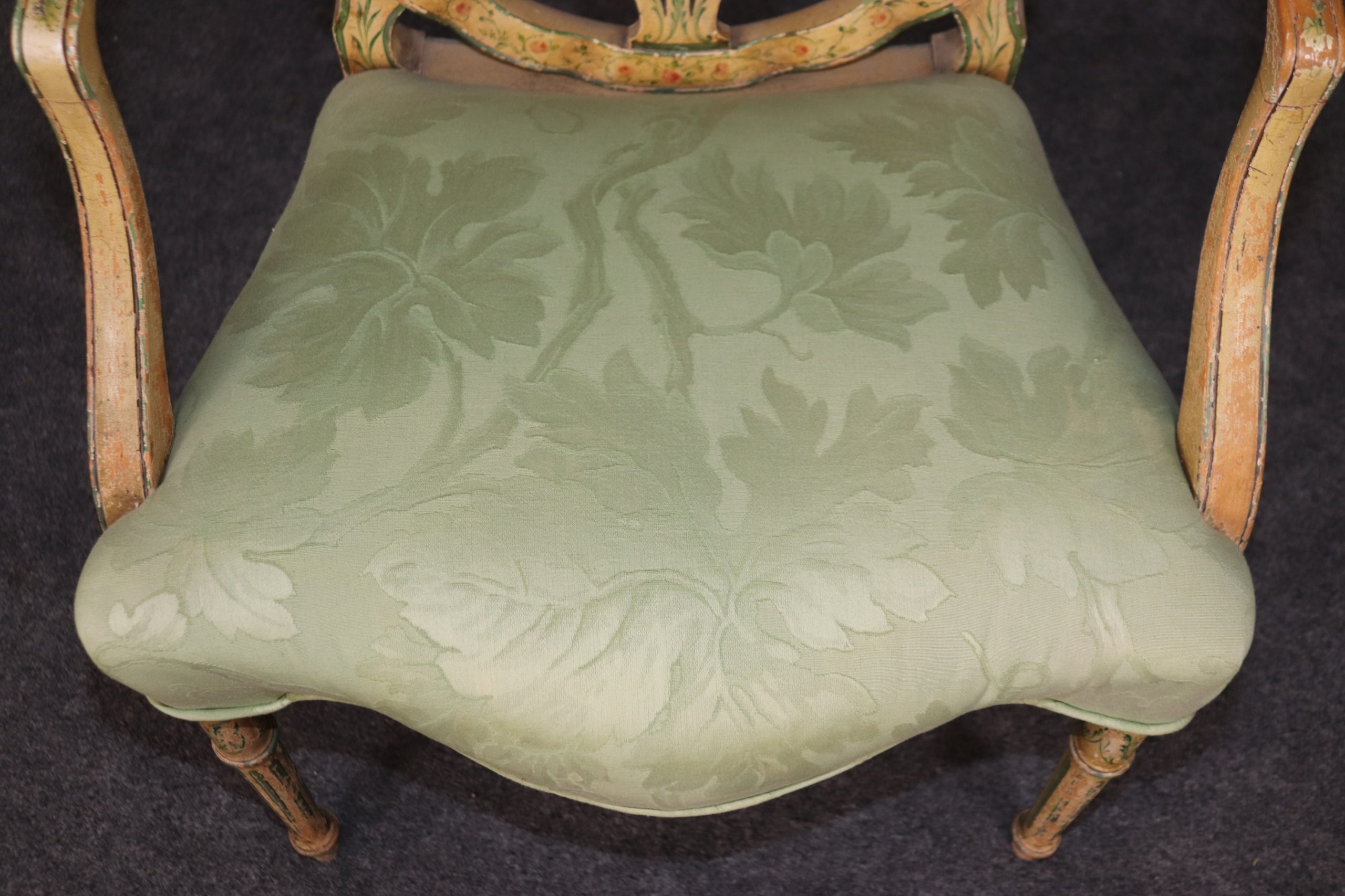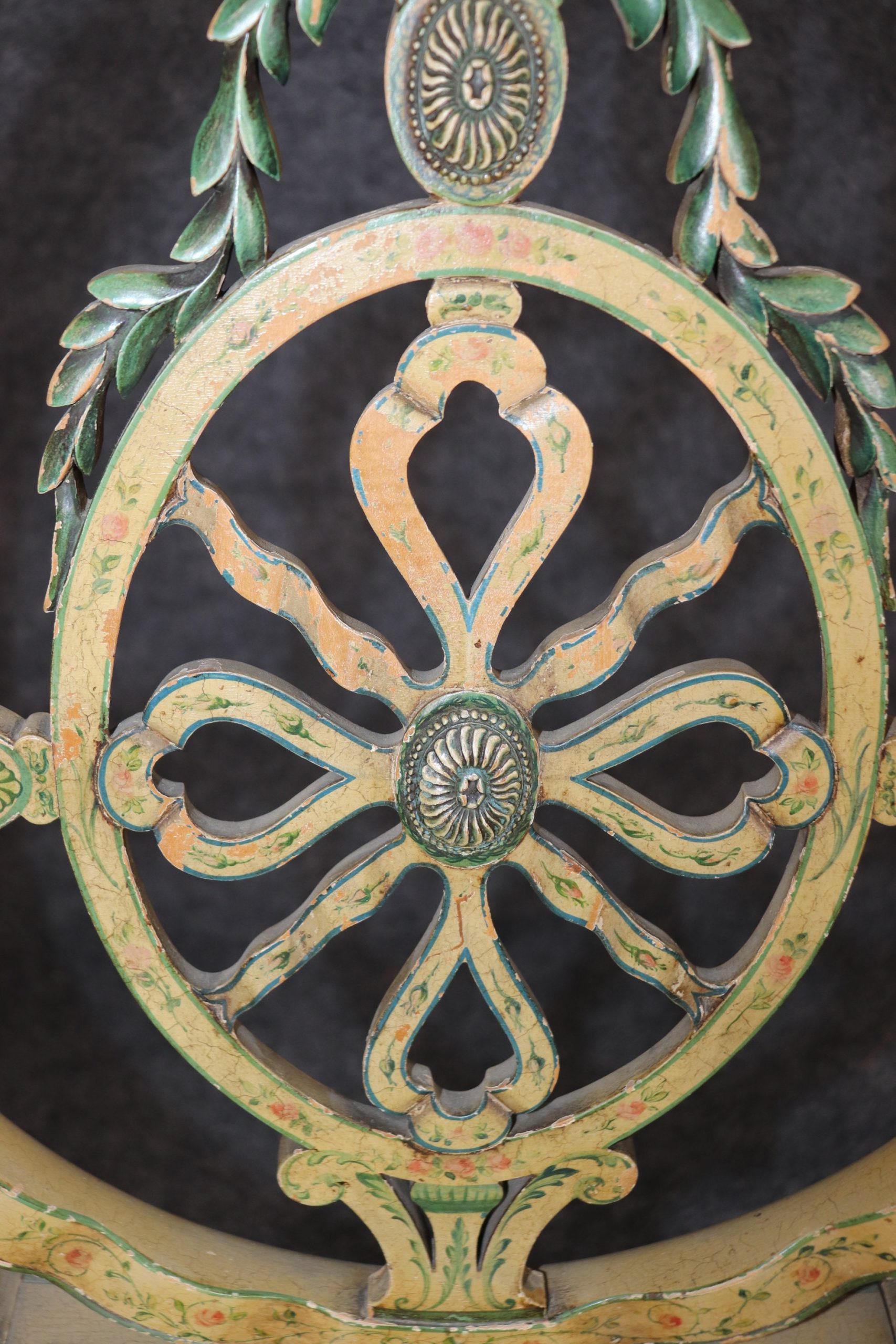 This vintage pair of Adams style armchairs, accent chairs is made of the highest quality and is perfect for you and your home! If you look at the photos provided, you will see the beautiful intentionally distressed paint decoration as well as the hand carved fluted legs. This pair is perfect for any living room, bedroom, entryway or office and is bound to bring a sense of luxury and class into your place of choosing! This is a pair that will separate your home from others and bring that classy look we all want! This pair is in good vintage condition with some light surface scratches and minor finish loss to frames. Otherwise, good condition.