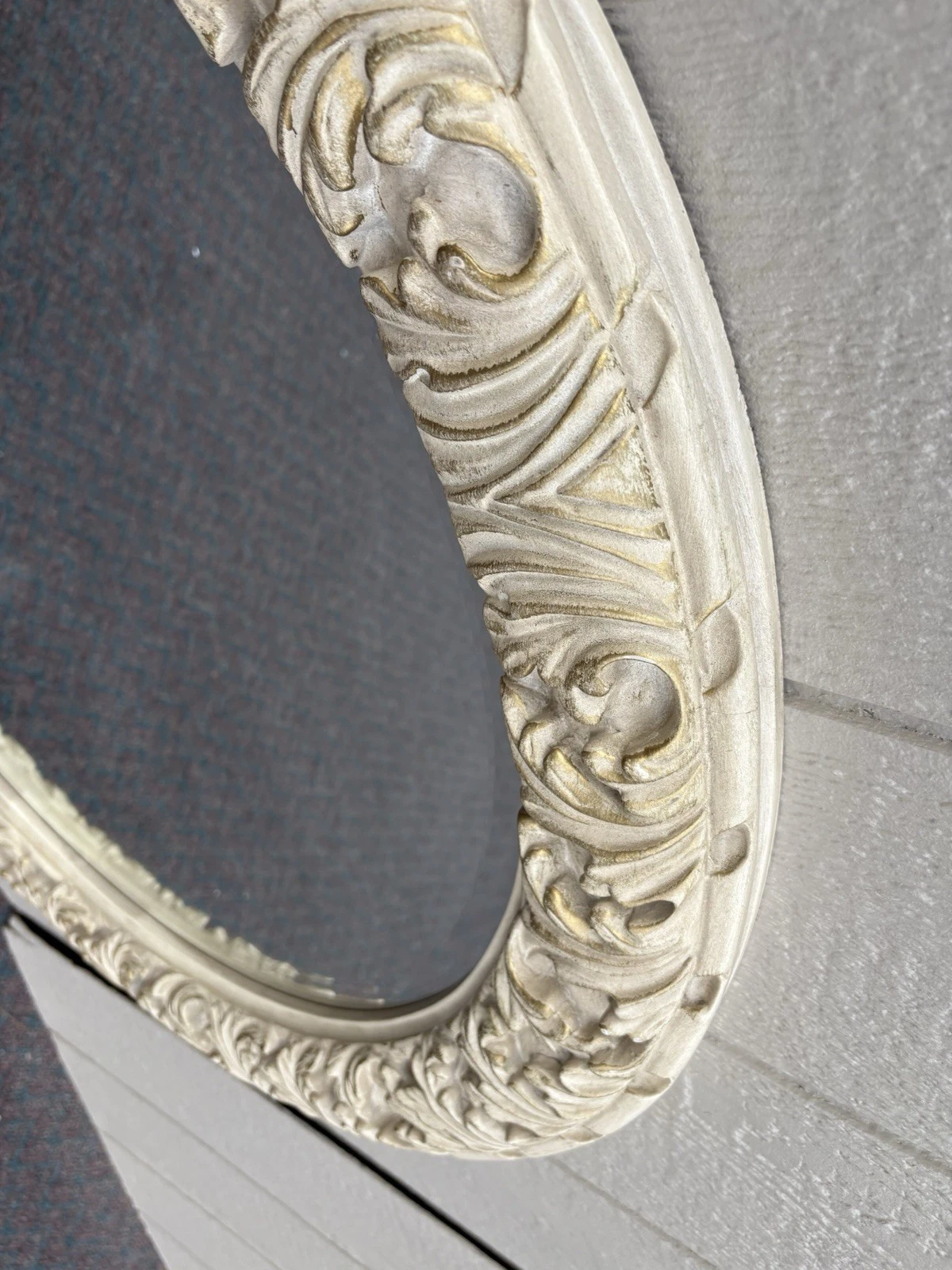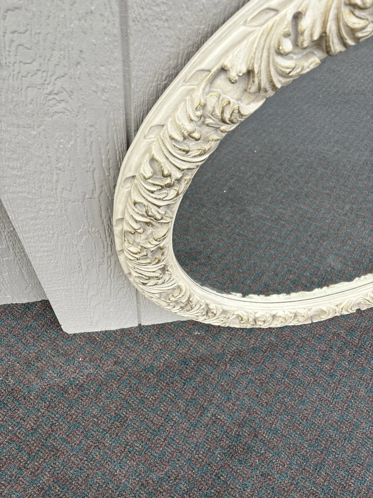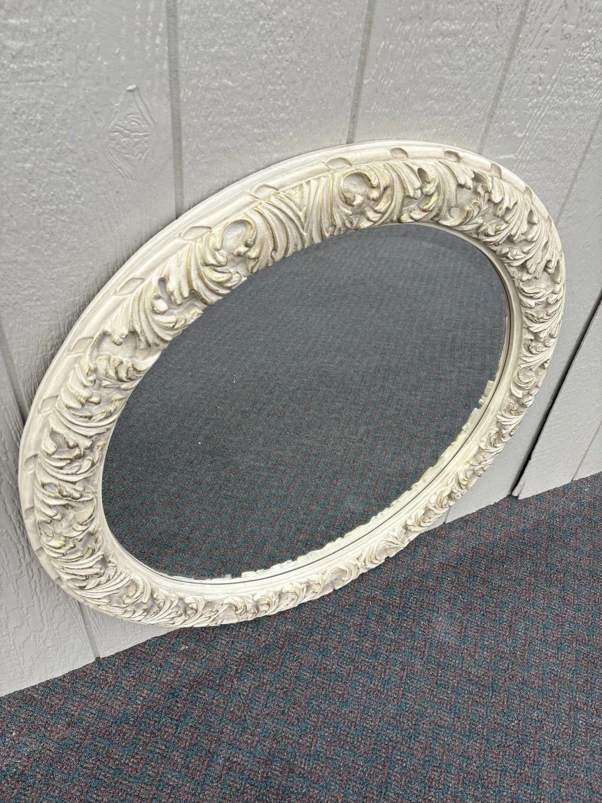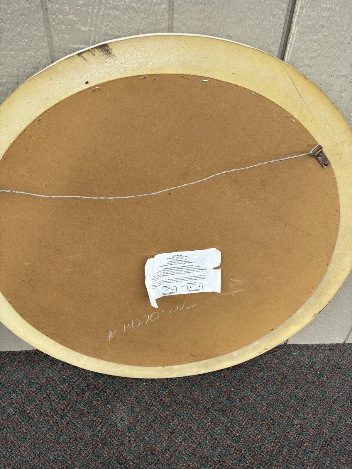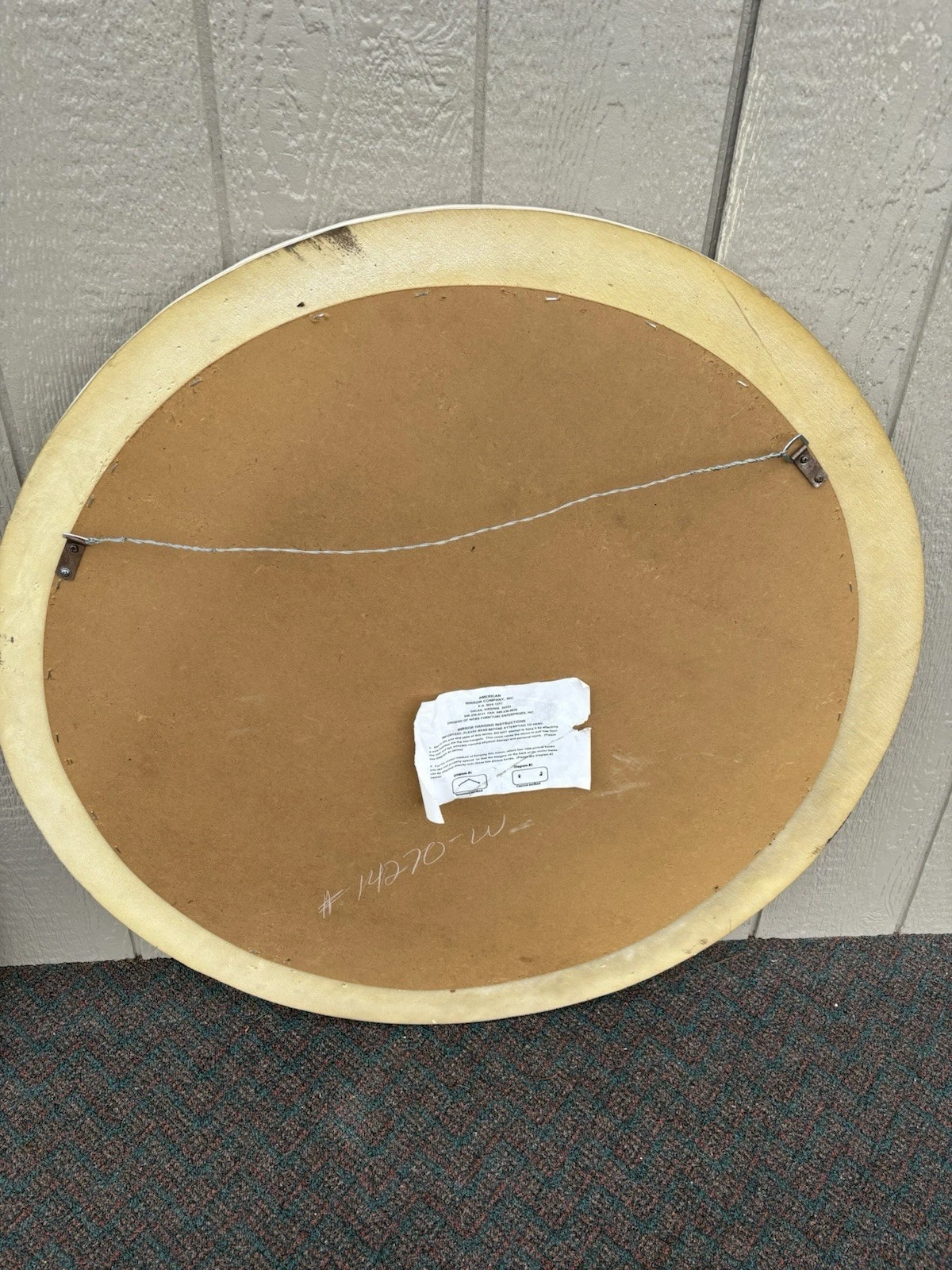 Transform your space with this charming round wall mirror from the American Mirror Company, crafted in the early 2000s. Its elegant white resin frame, adorned with a polished mirrored finish, adds a touch of sophistication while enhancing natural light in any room. This decorator piece not only reflects your style but also serves as a timeless accent that complements both contemporary and traditional decor. Perfect for creating a warm, inviting atmosphere in your home, this mirror is a delightful blend of functionality and artistry.